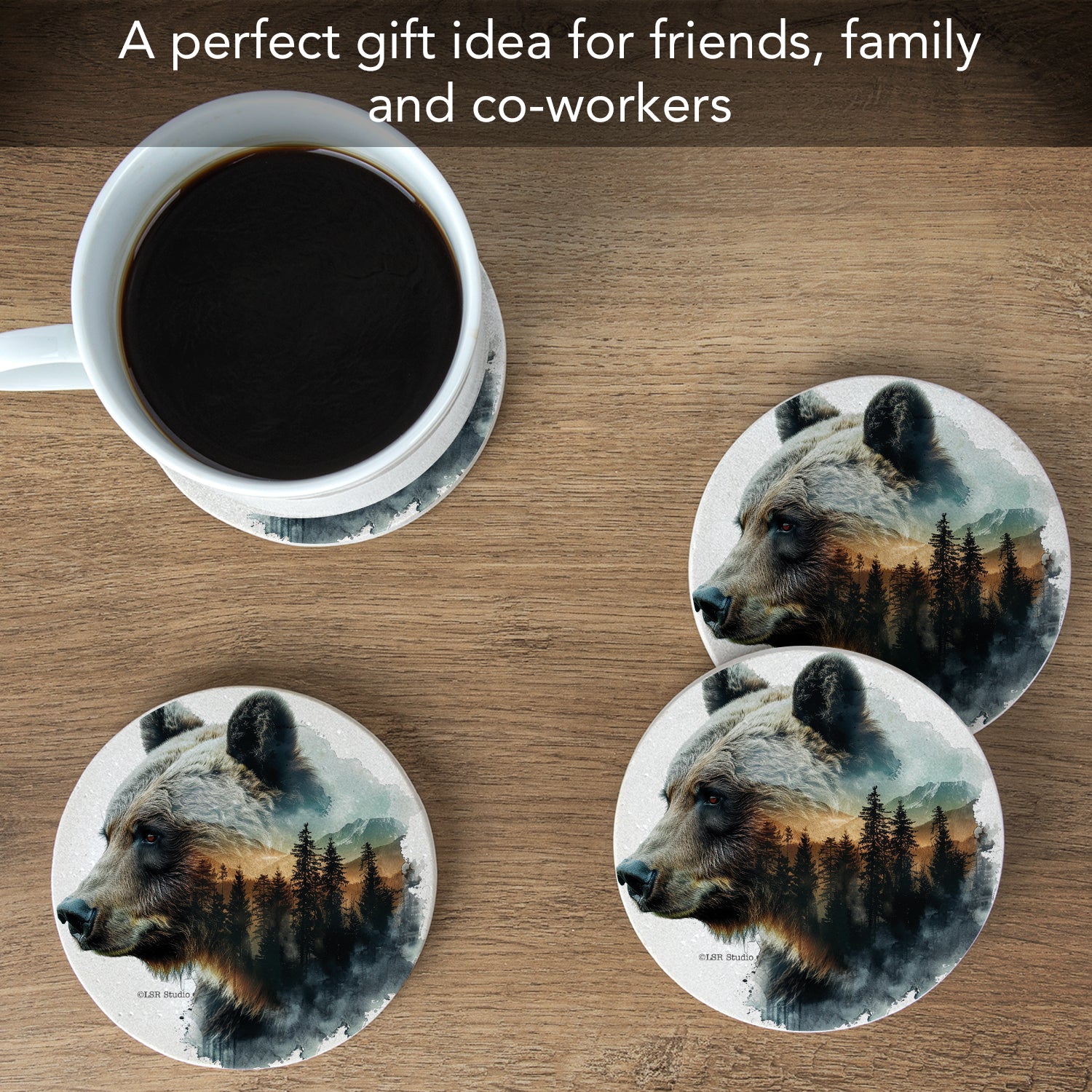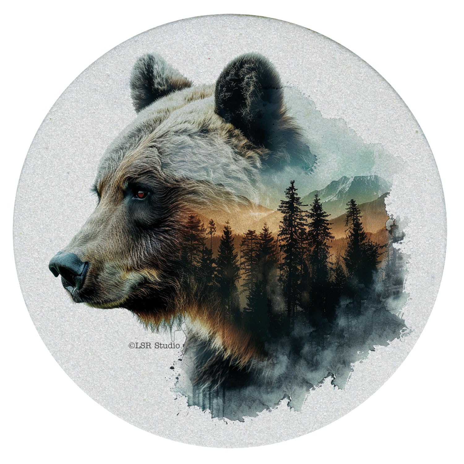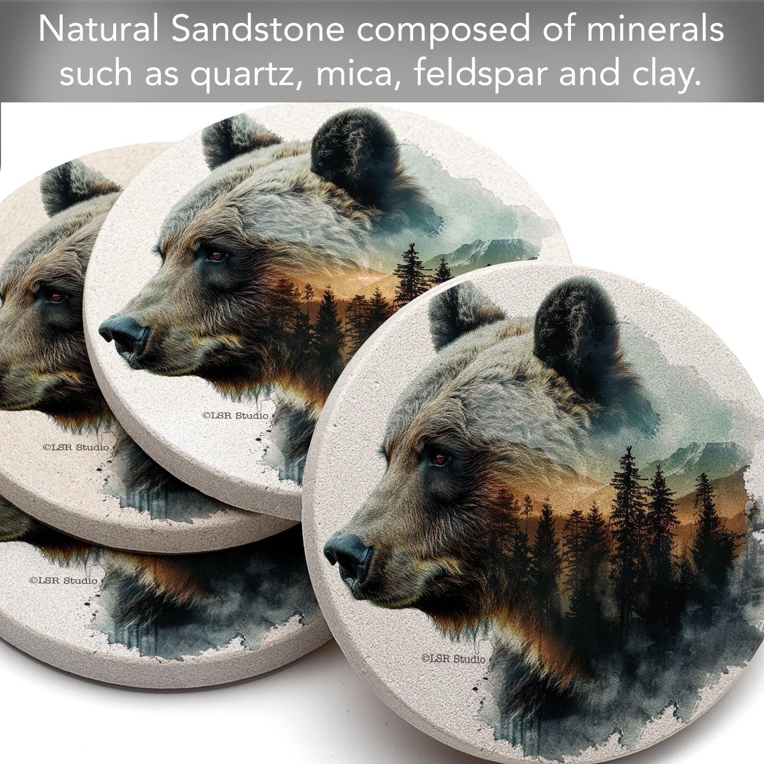 Thirstystone Bear Silhouette 4 Pack Natural Sandstone Coasters 4" Round