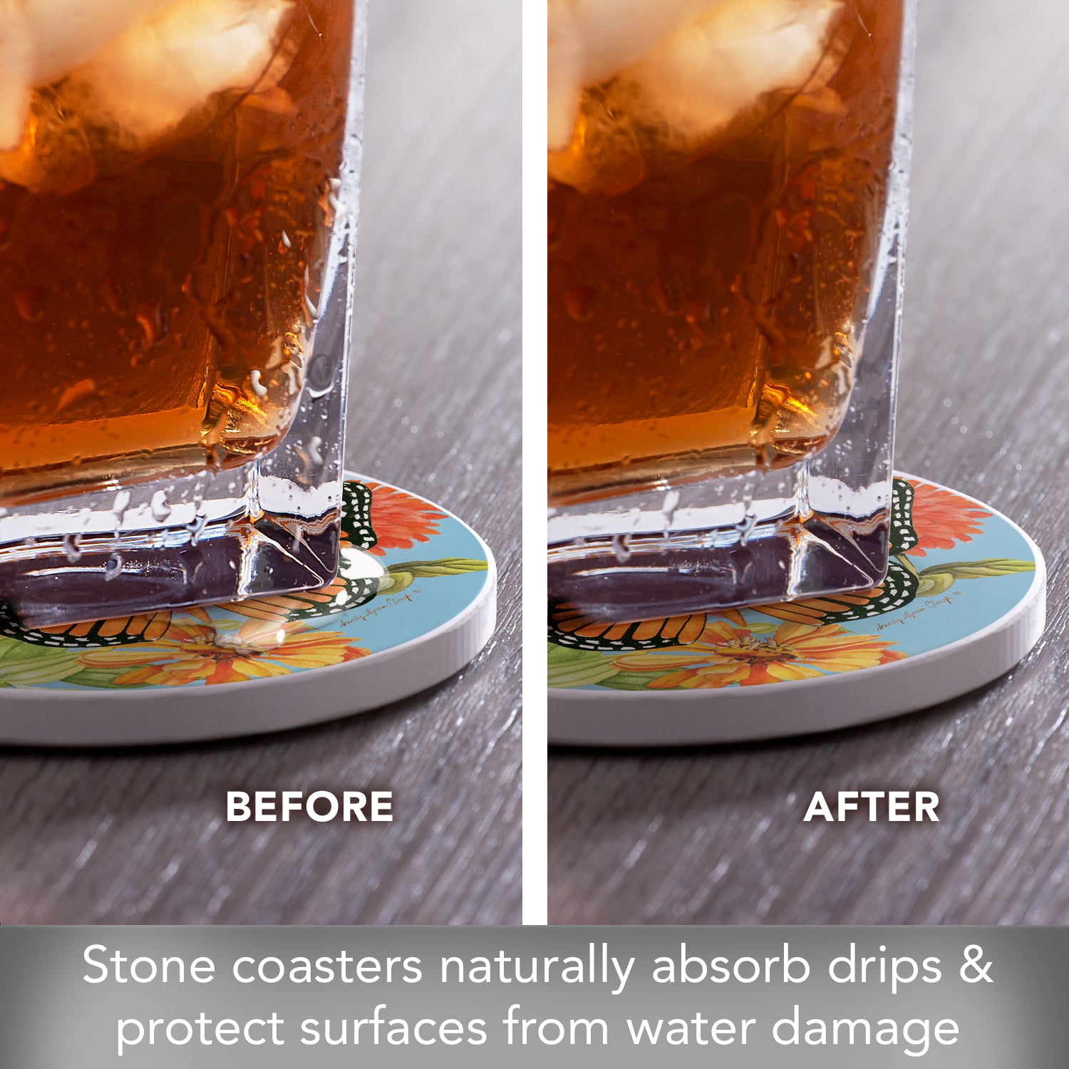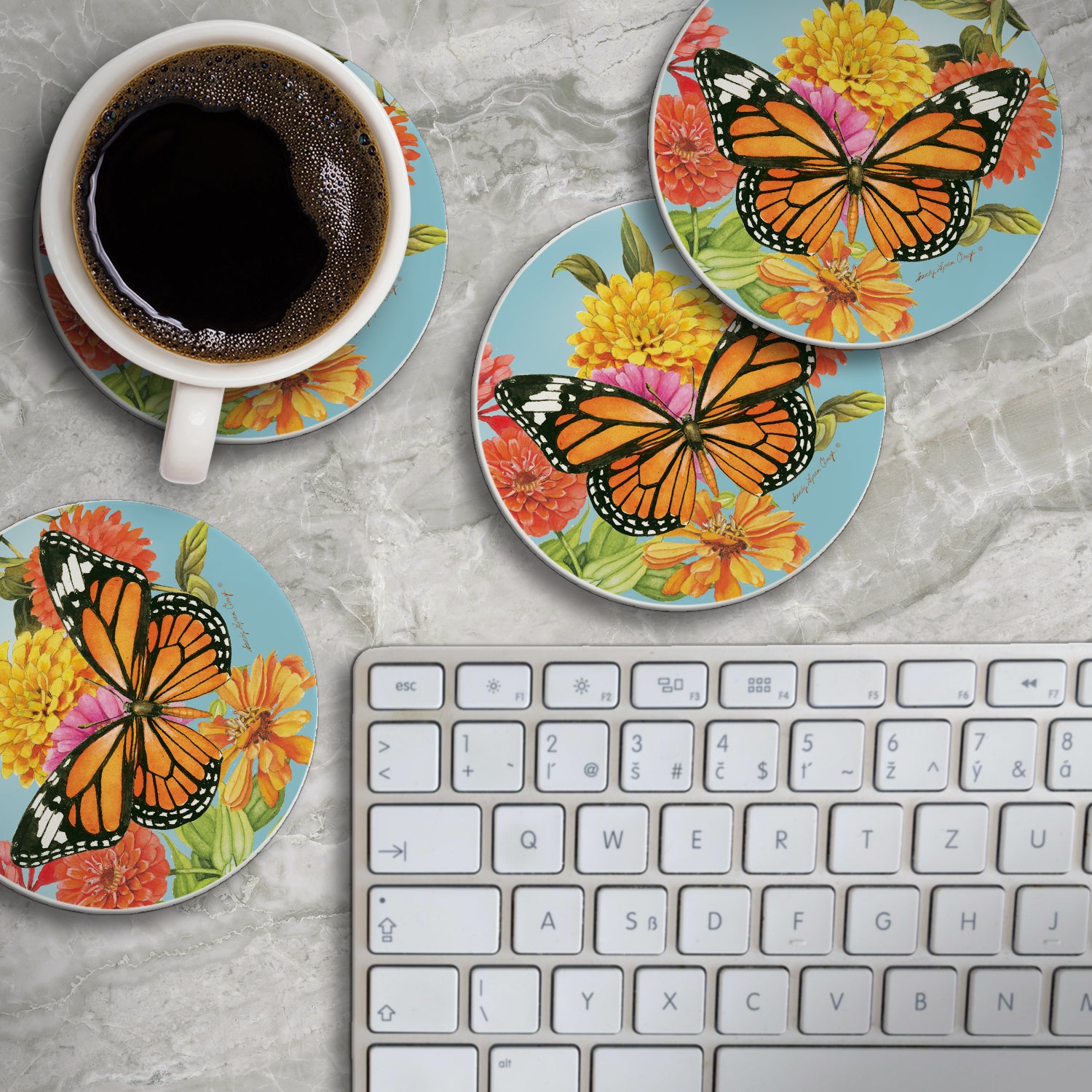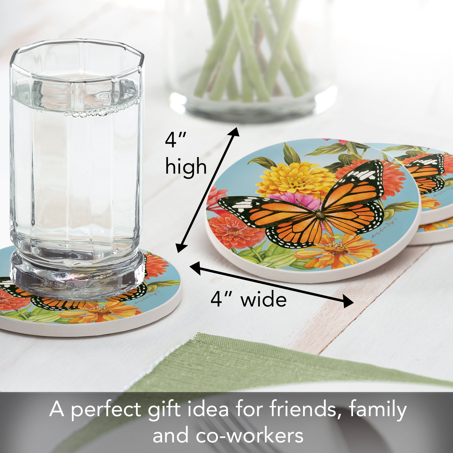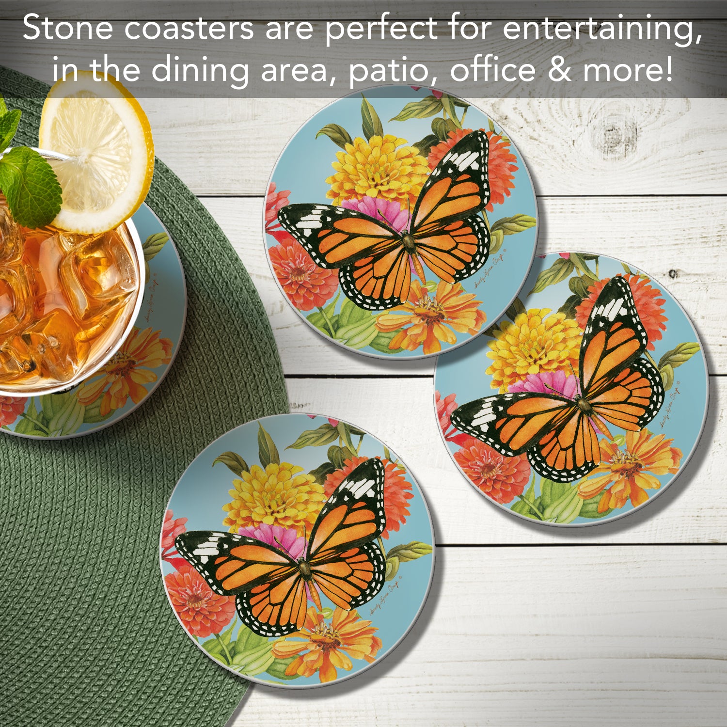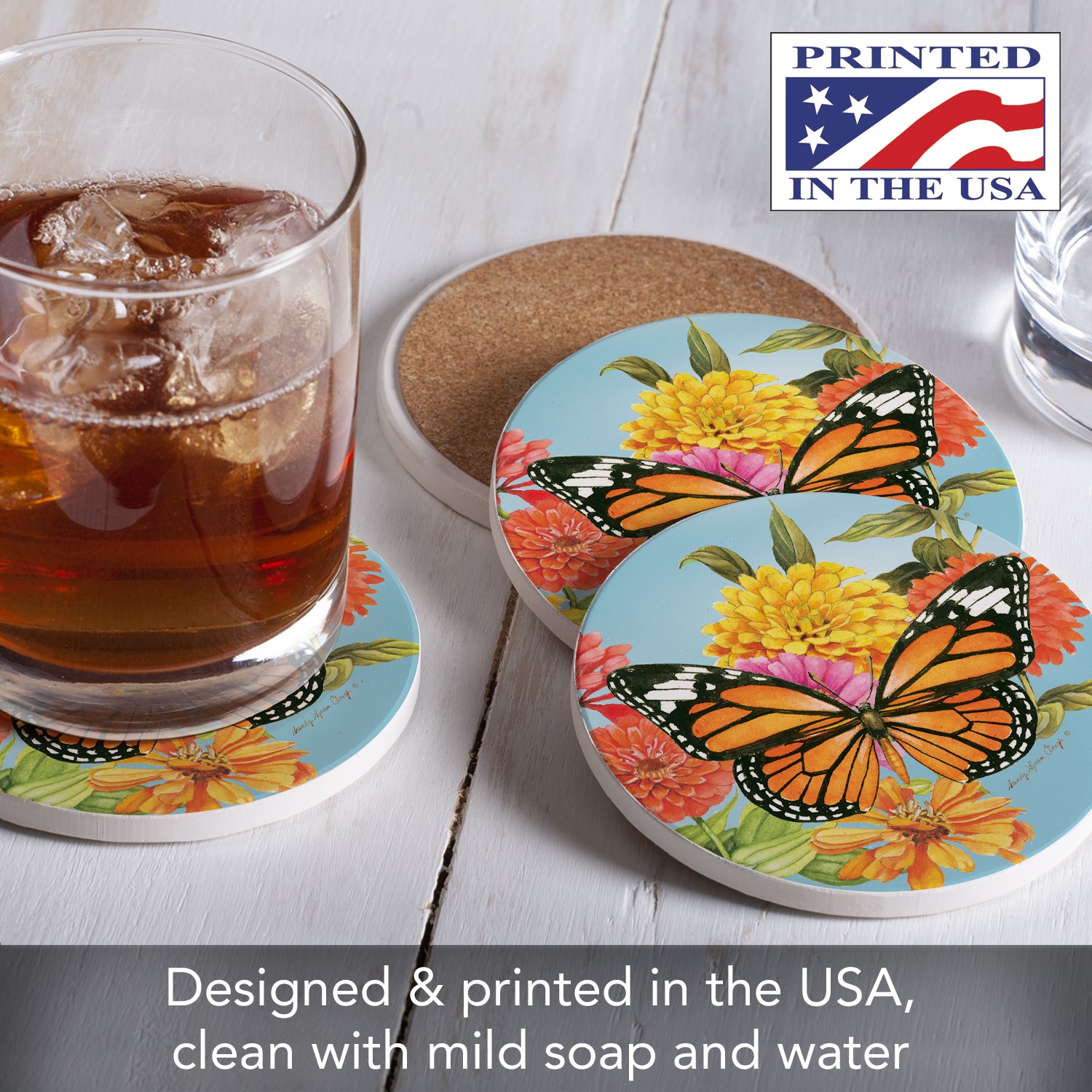 Thirstystone Monarch Butterfly 4 Pack Round Absorbent Stone Coasters 4" Diameter Manufactured in the USA