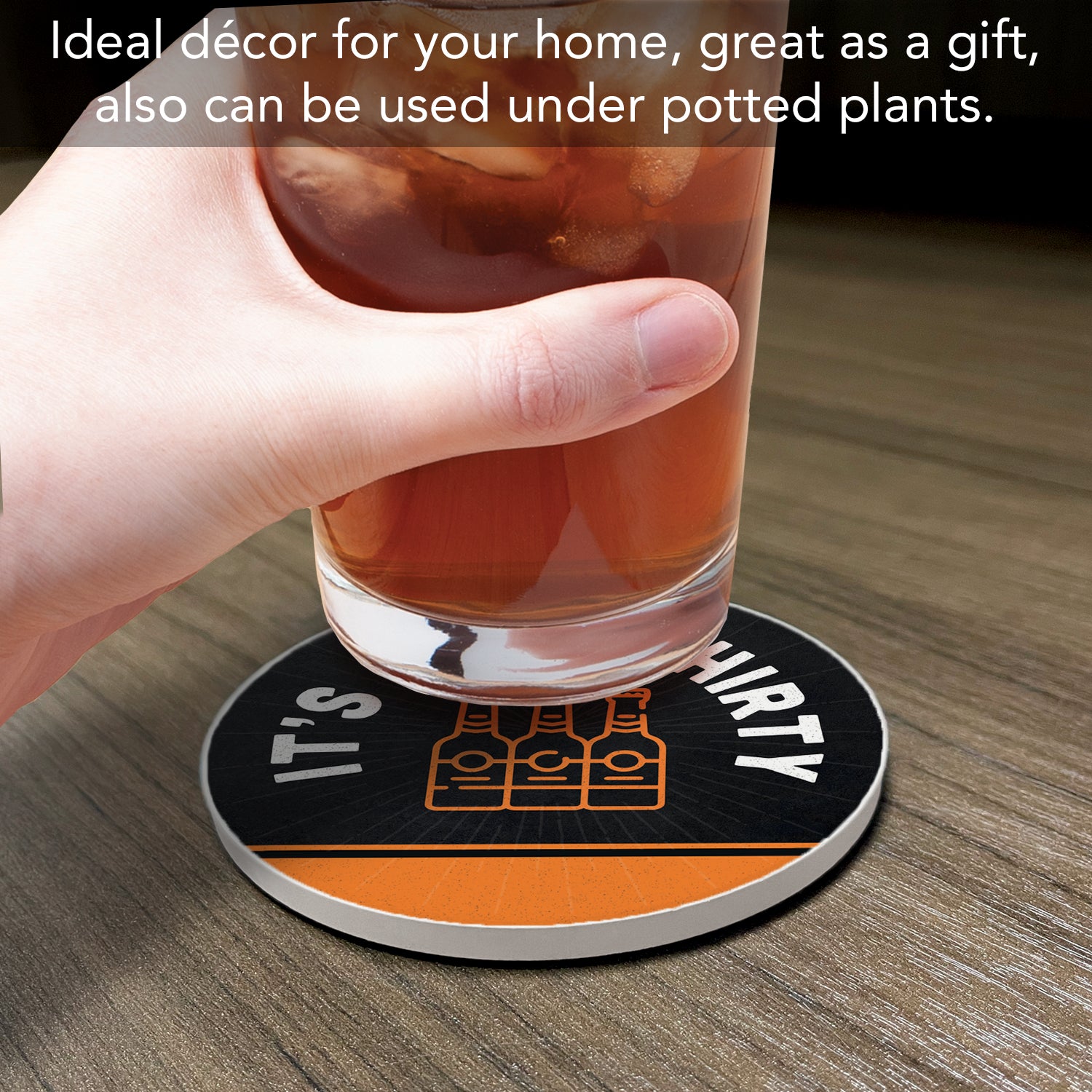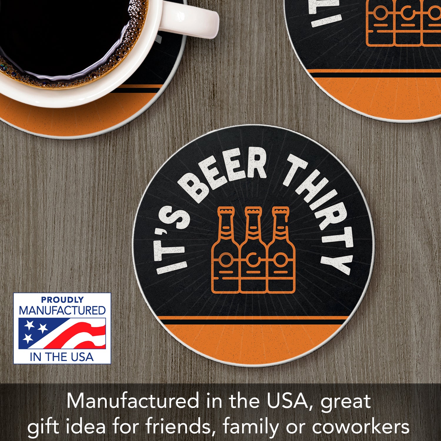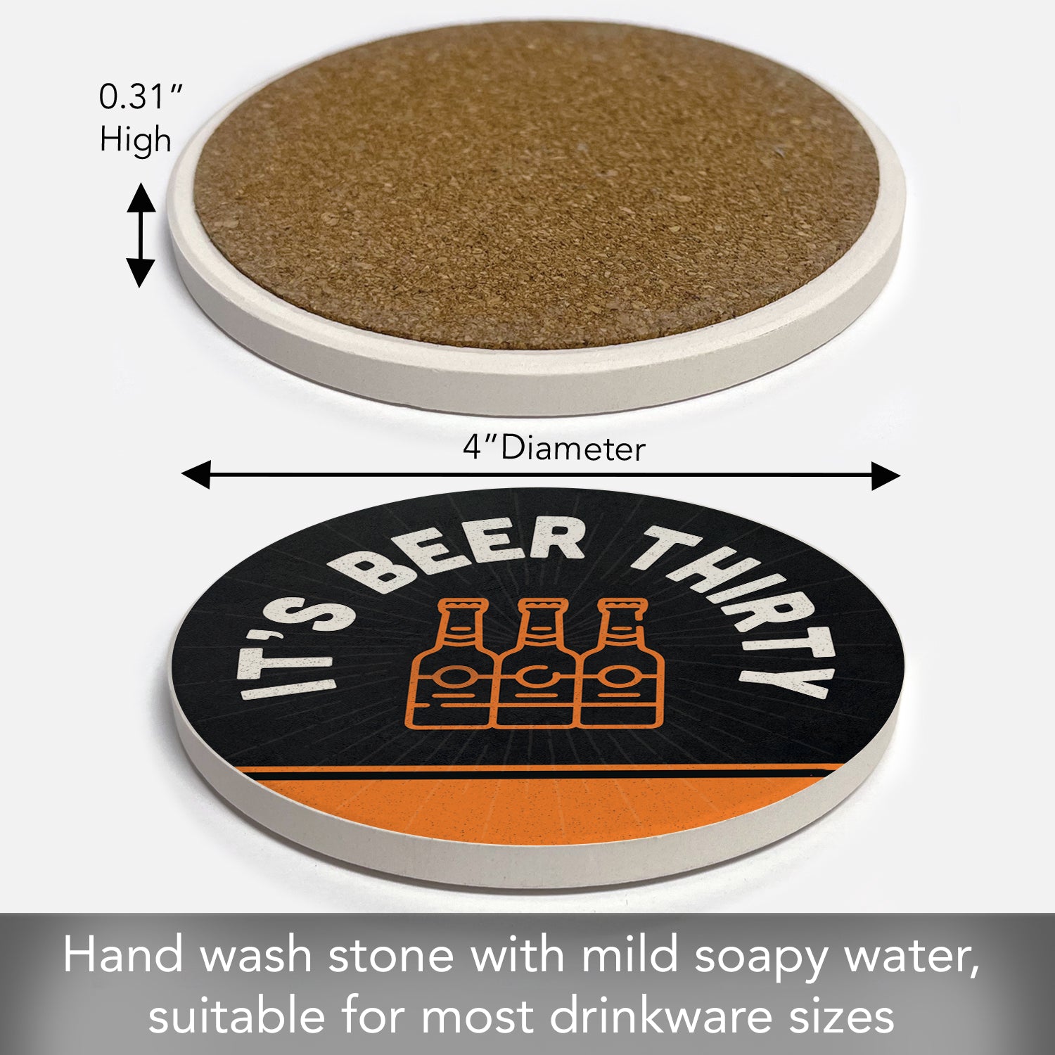 Thirstystone Beer Thirty Single Round Absorbent Stone Coaster with Protective Cork Backing Manufactured in The USA 4" Diameter