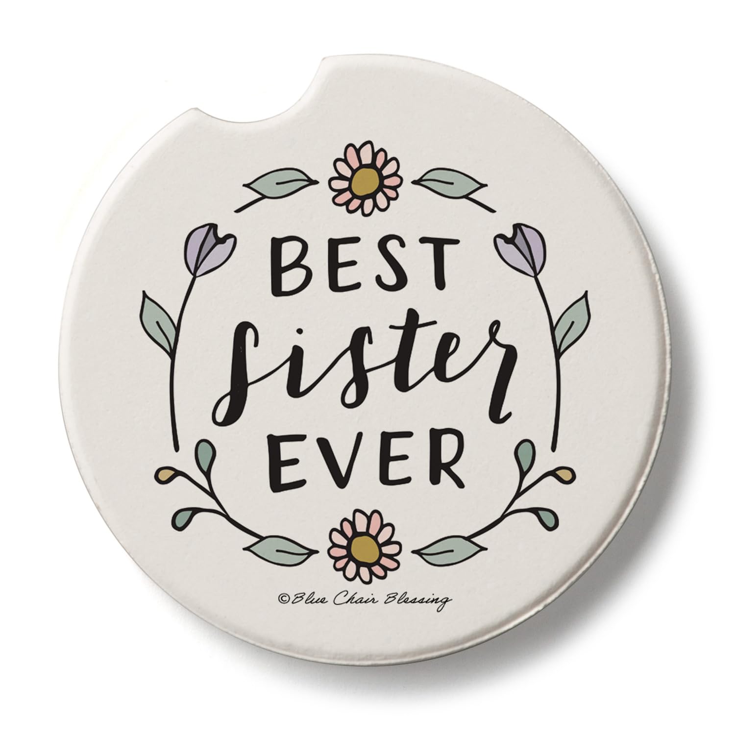 Thirstystone Best Sister Ever Single Absorbent Stone Car Coaster 2.6” Diameter Manufactured in the USA