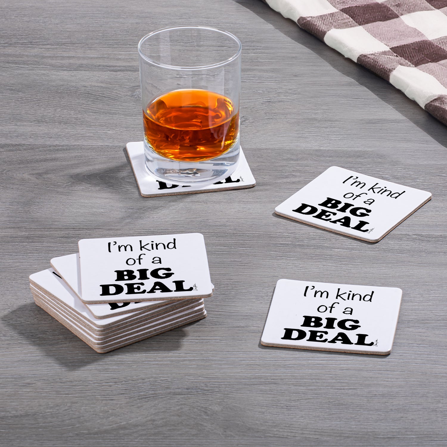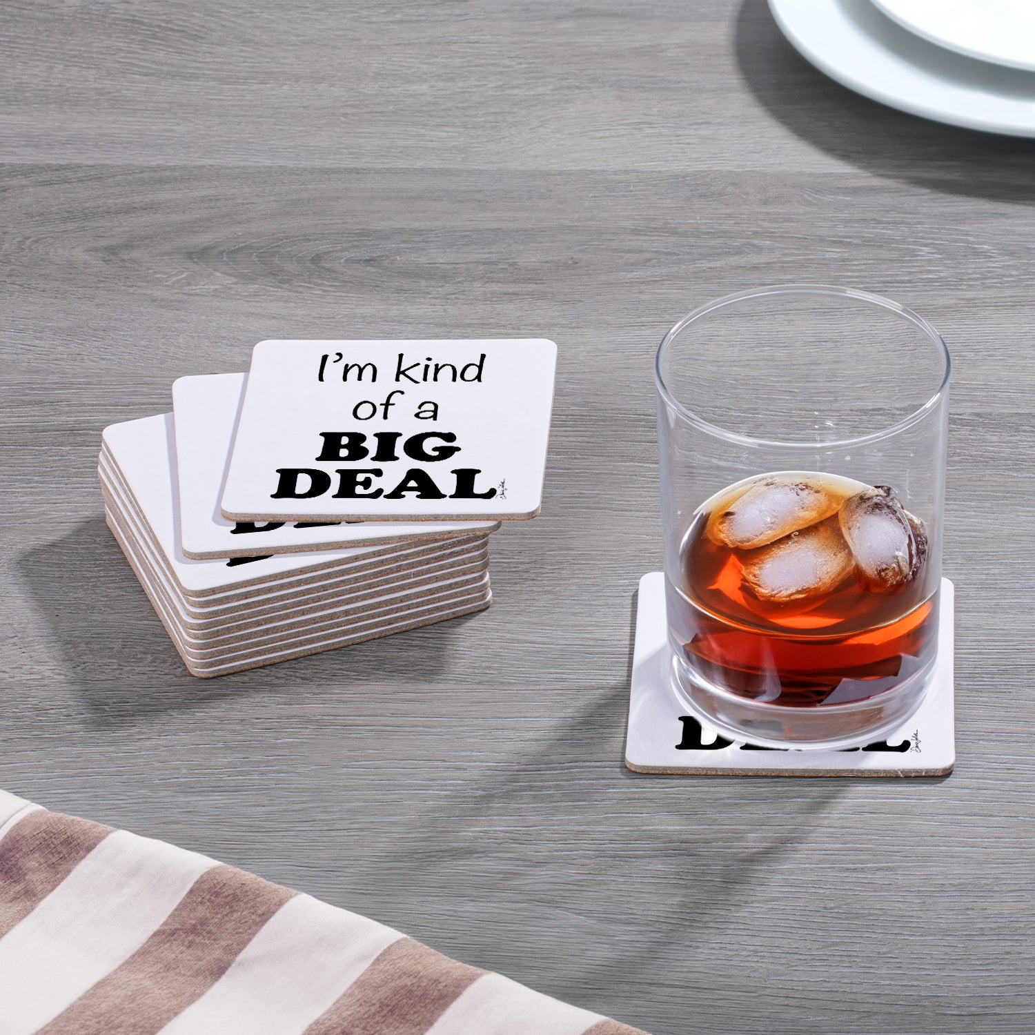Thirstystone Big Deal 12-Pack Cork Back Paper Bar Coasters Made in The USA Humourous Quotes Attractive Designs