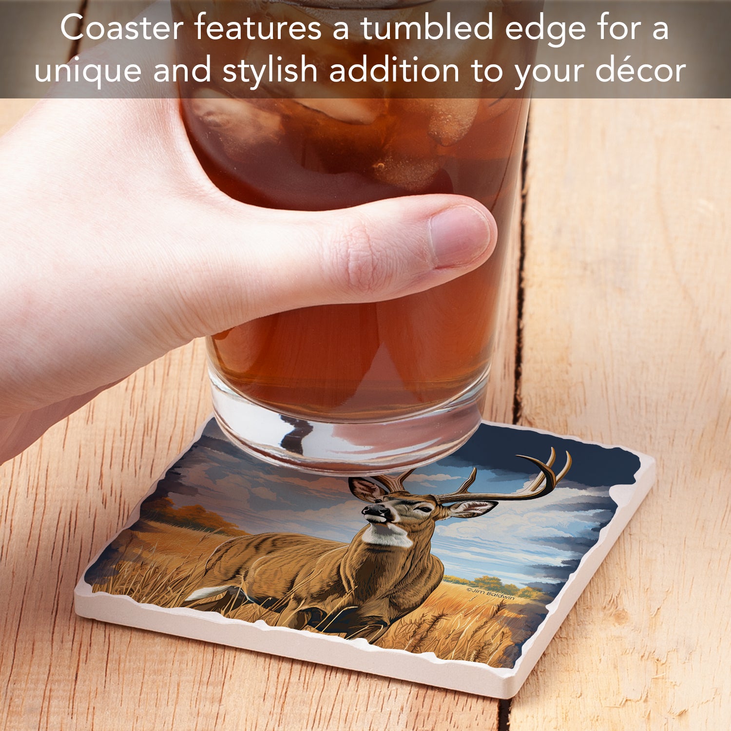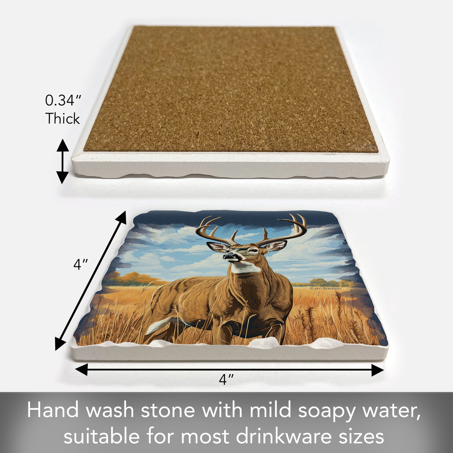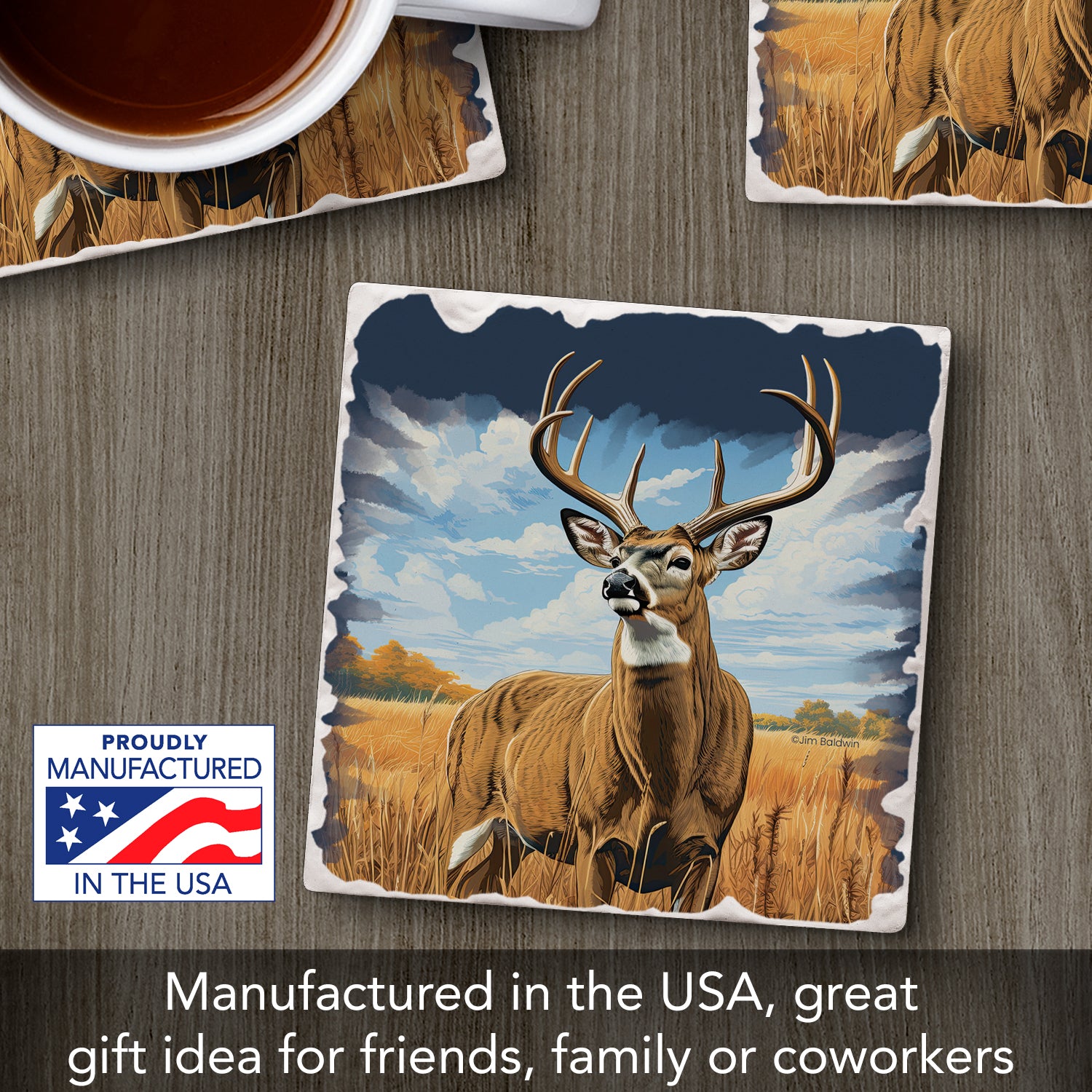 Thirstystone Big Deer Buck Single Tumbled Tile Stone Coaster with Protective Cork Backing Manufactured in The USA 4" Square