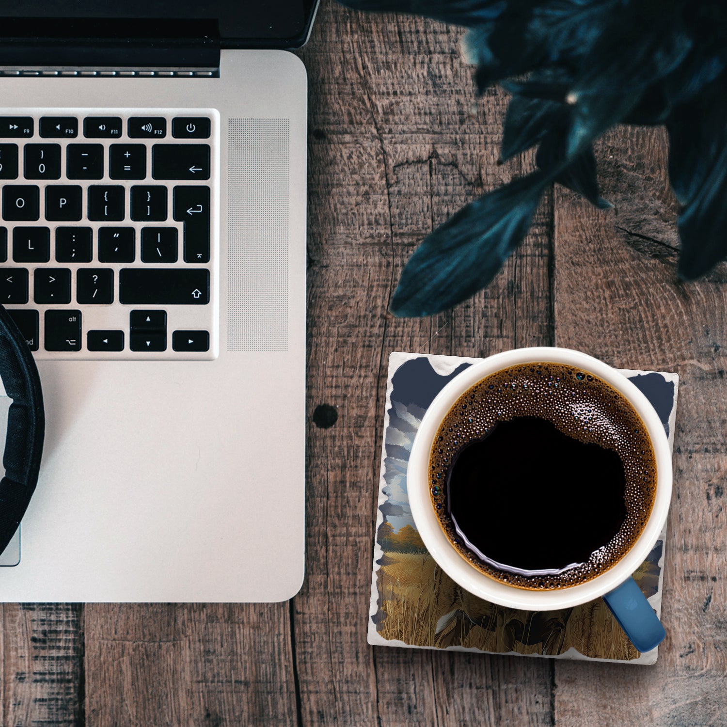 FUNCTIONAL ART-Beautiful artistic design allows the Coaster to remain displayed even when not in use. Each Coaster measures 4” x 4” x .25”. Sized to fit larger Mugs & Glasses.