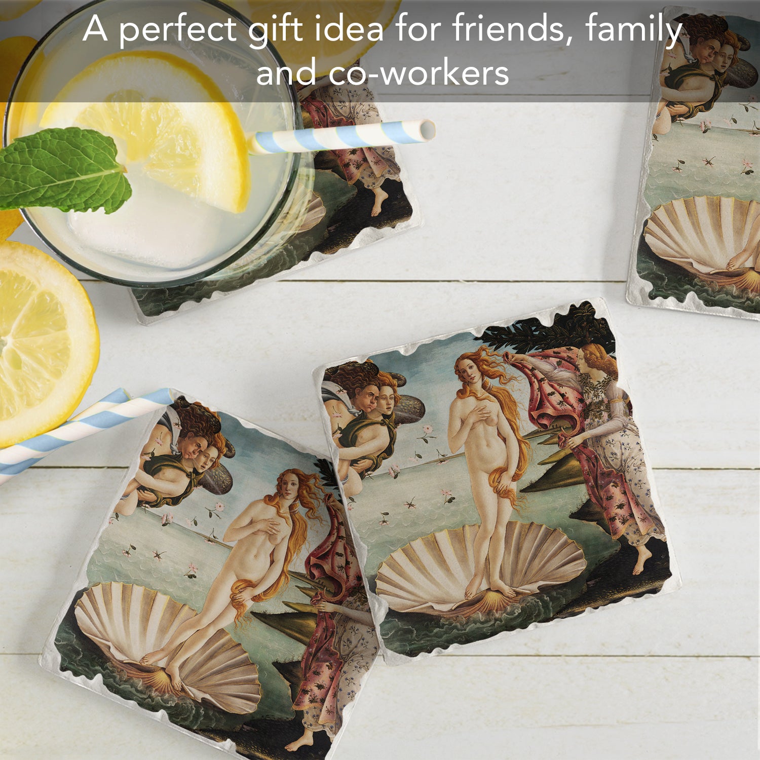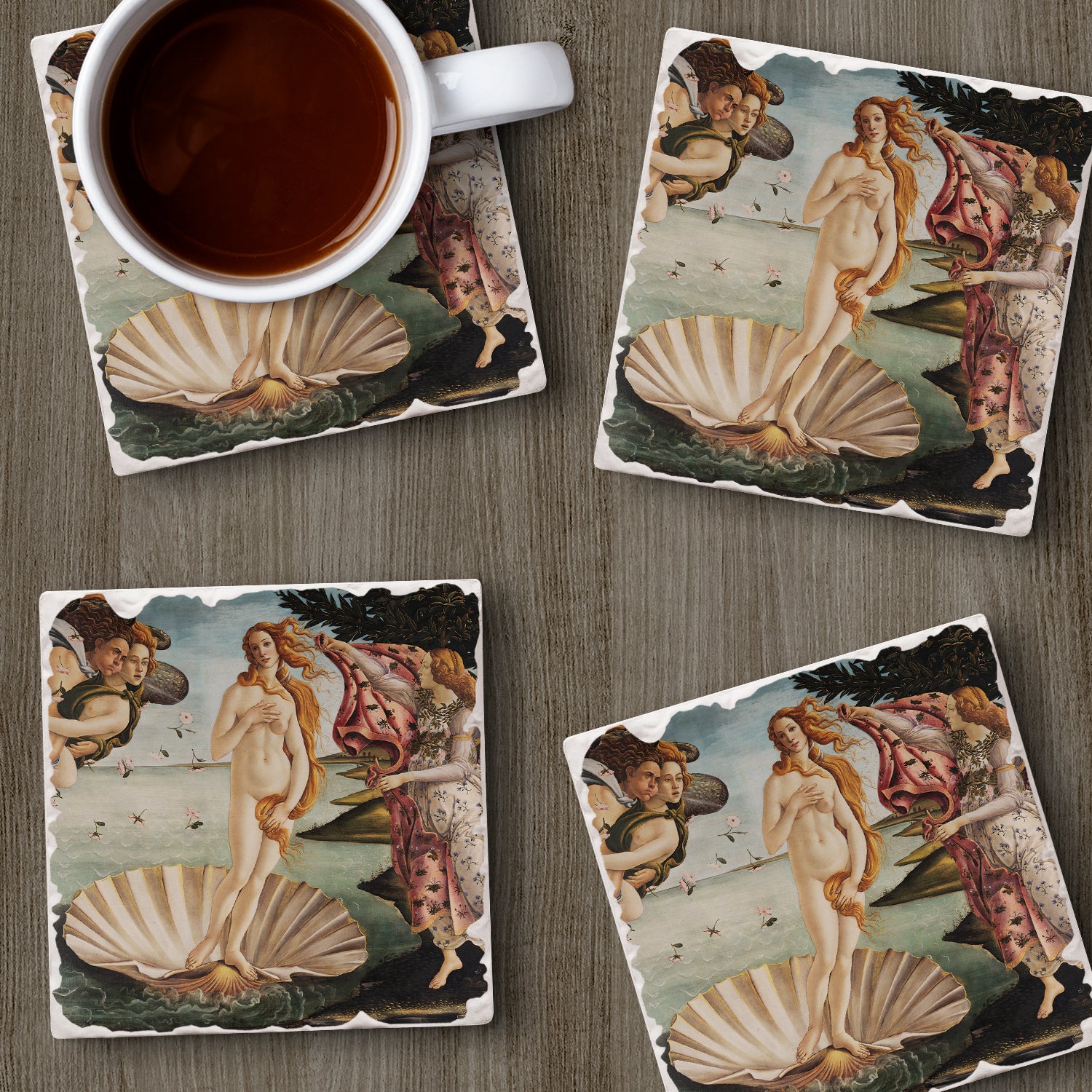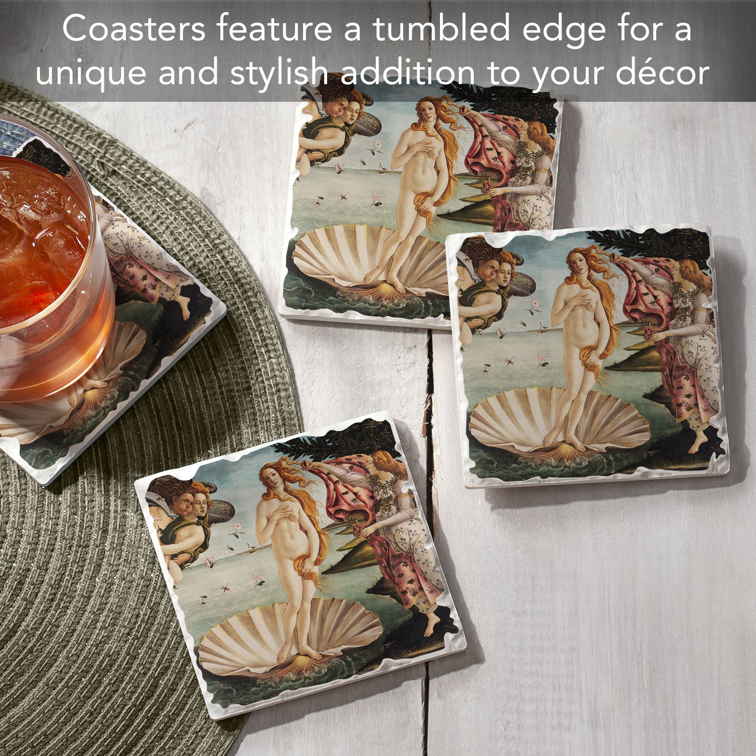 Thirstystone Birth of Venus 4 Pack Tumbled Tile Stone Coasters 4" Square Manufactured in the USA