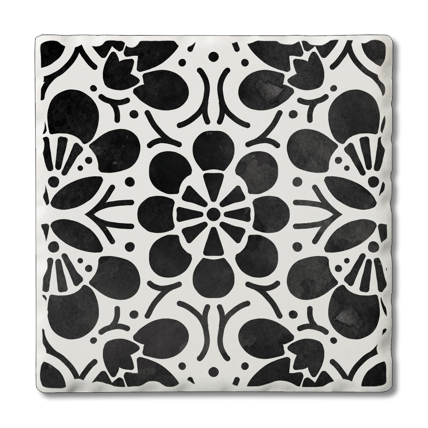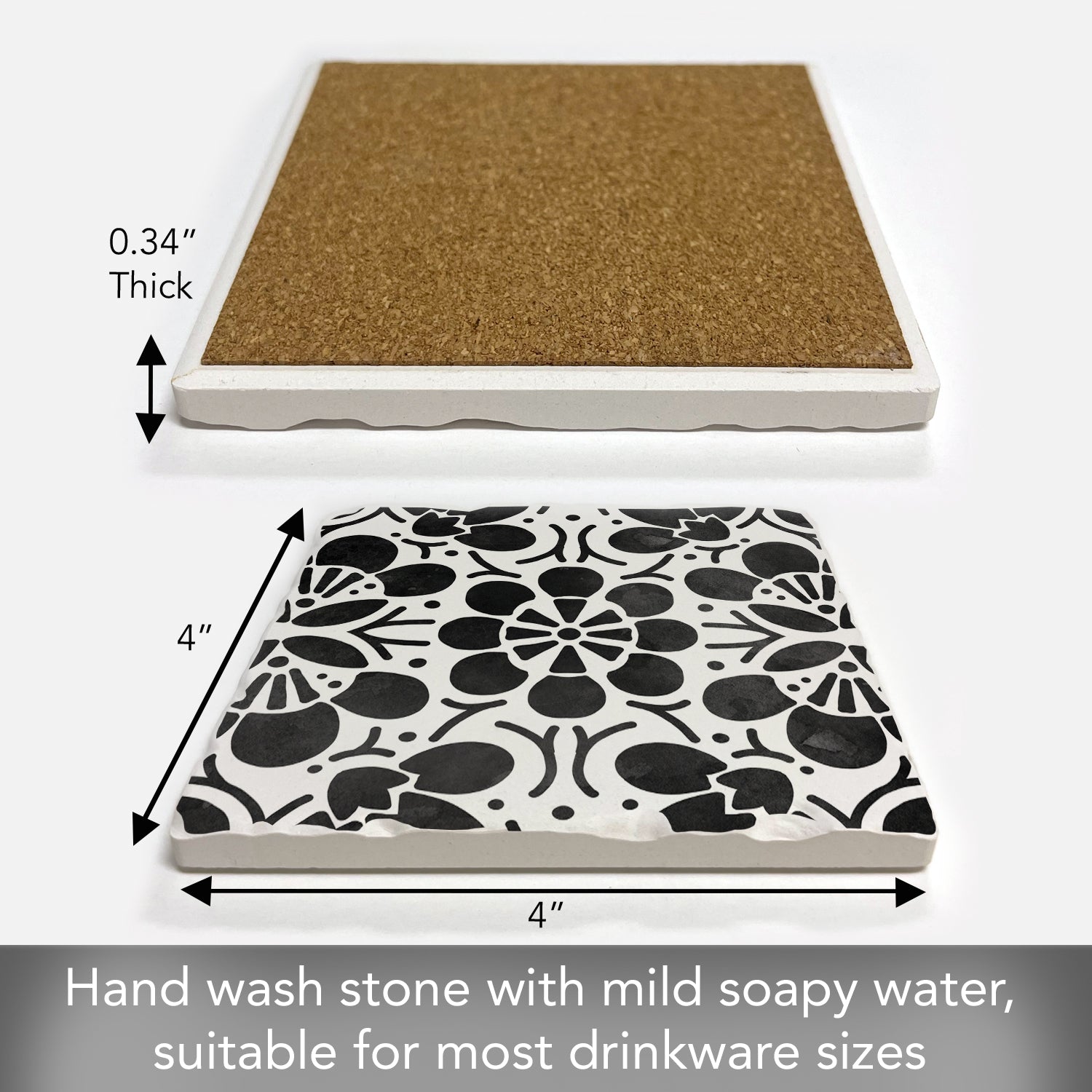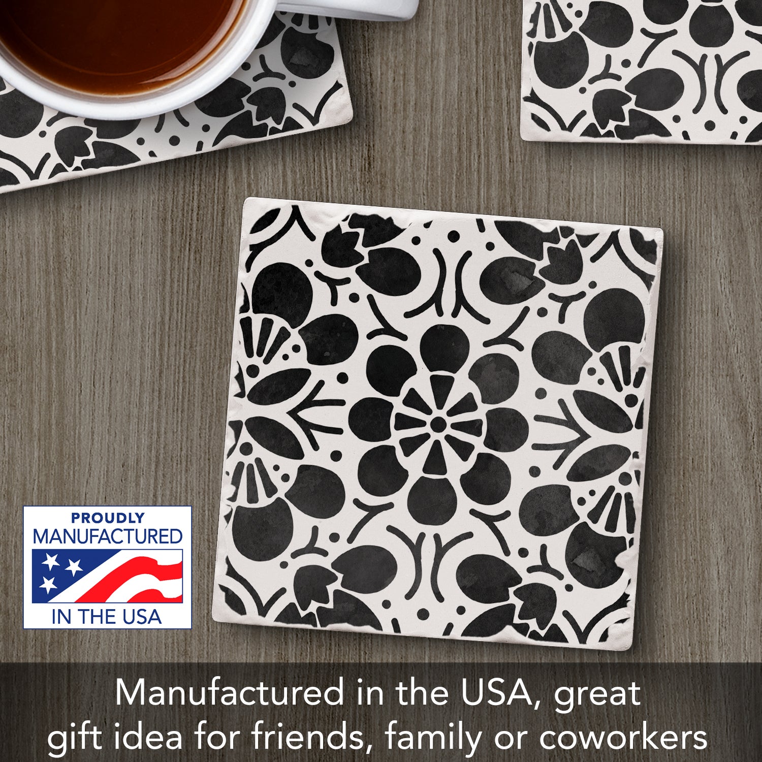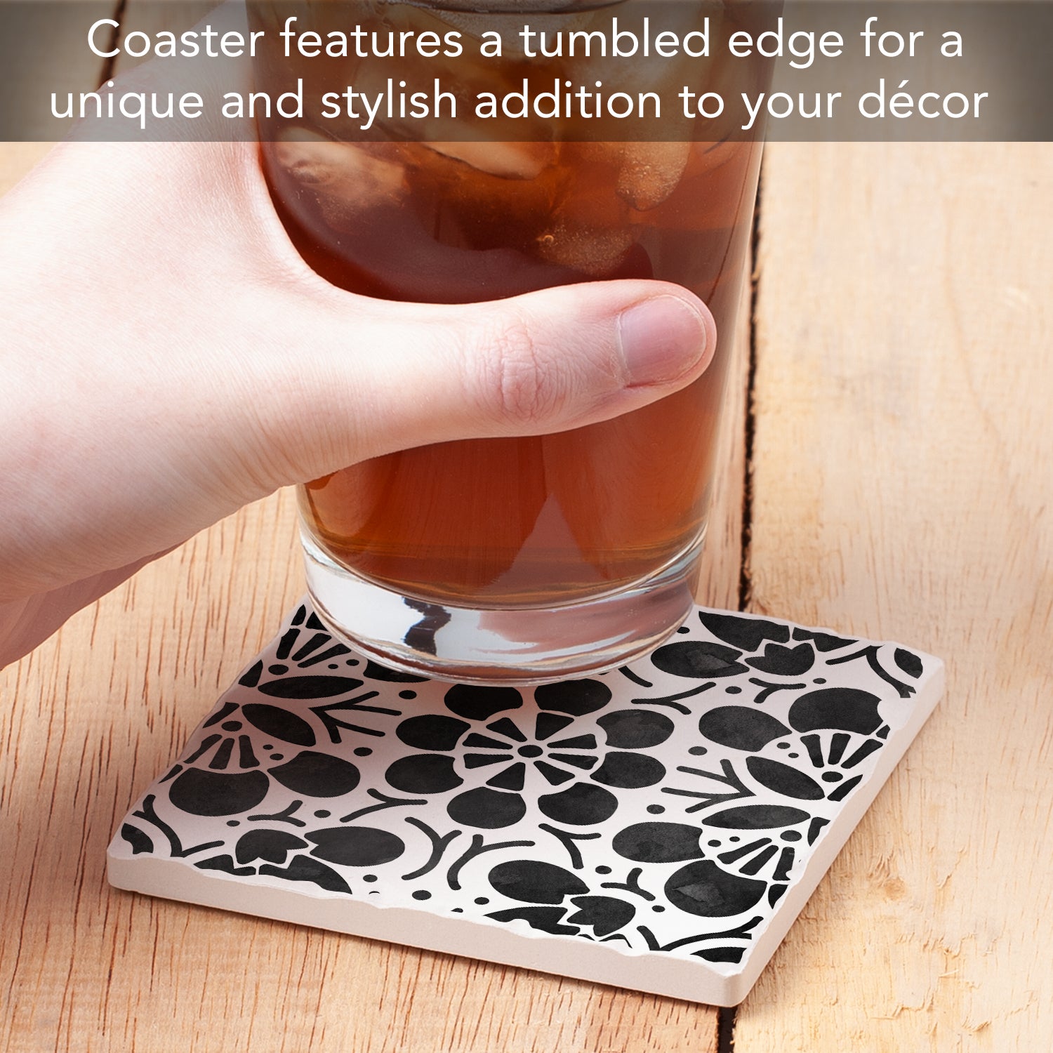 Thirstystone Black Flowers Single Tumbled Tile Stone Coaster with Protective Cork Backing Manufactured in The USA 4" Square, Colorful, Artistic, Easily Wipes Clean