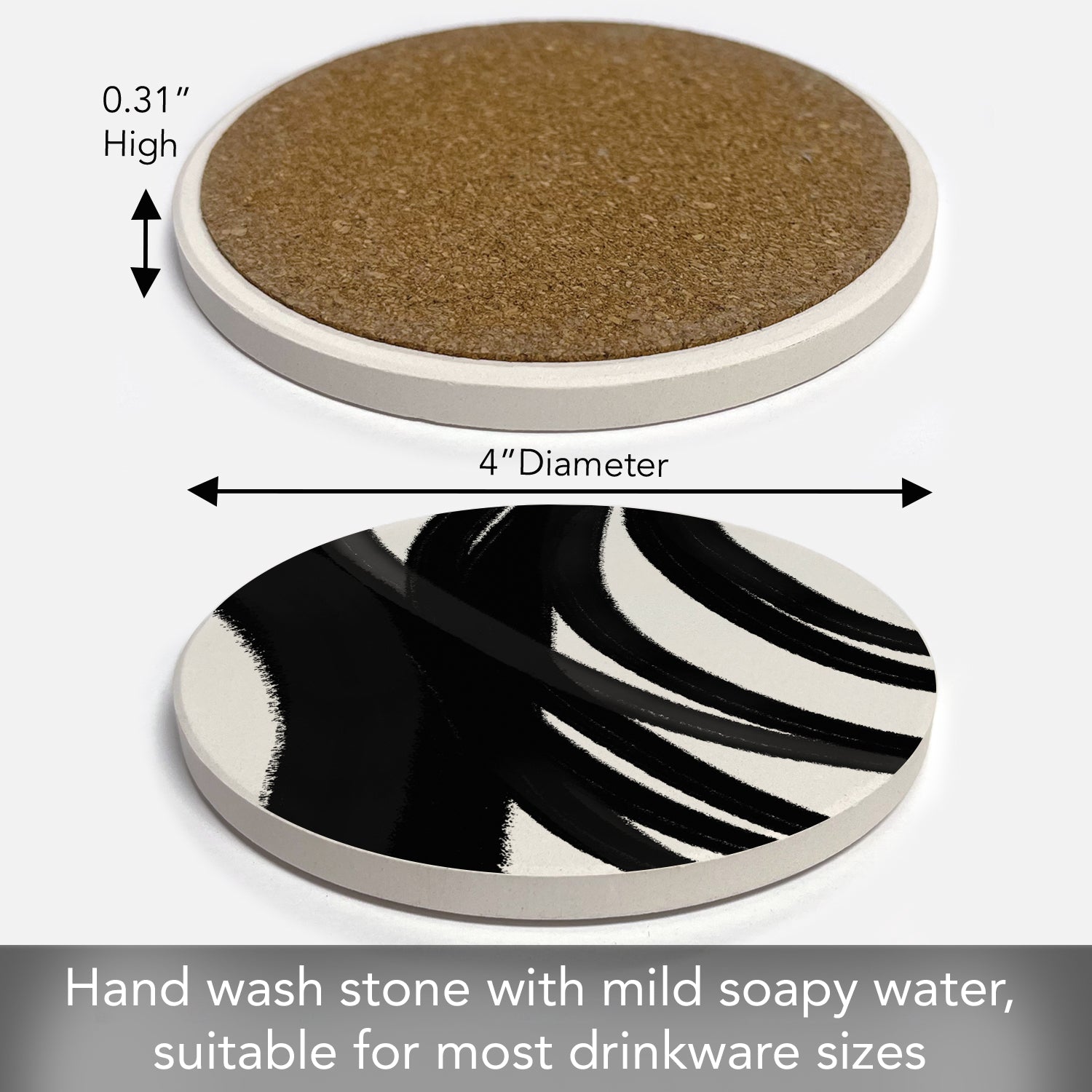 Thirstystone Black Swipes Single Round Absorbent Stone Coaster with Protective Cork Backing Manufactured in The USA 4" Diameter