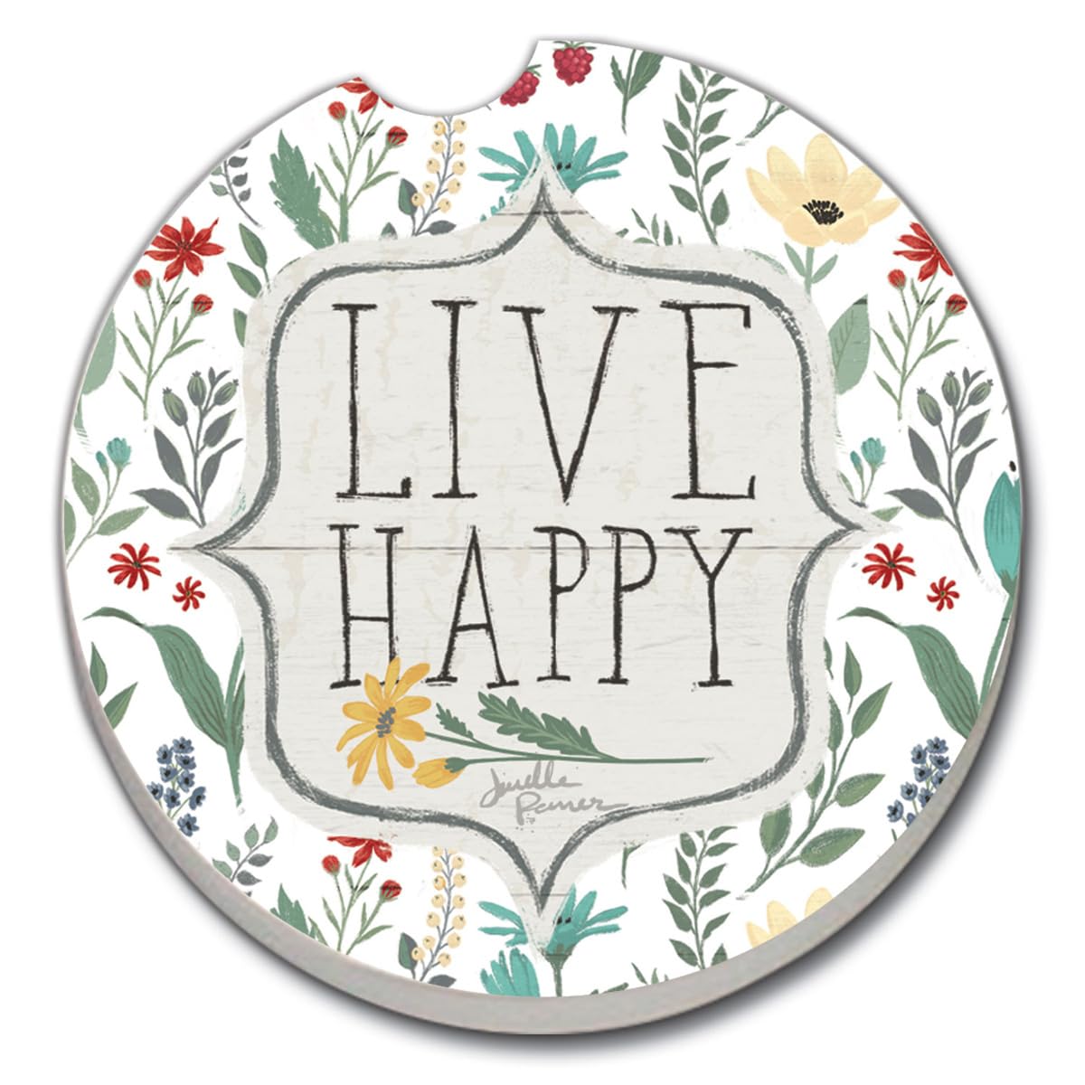 Blooming Thoughts Single Absorbent Stone Car Coaster 2.6” Diameter Manufactured in the USA