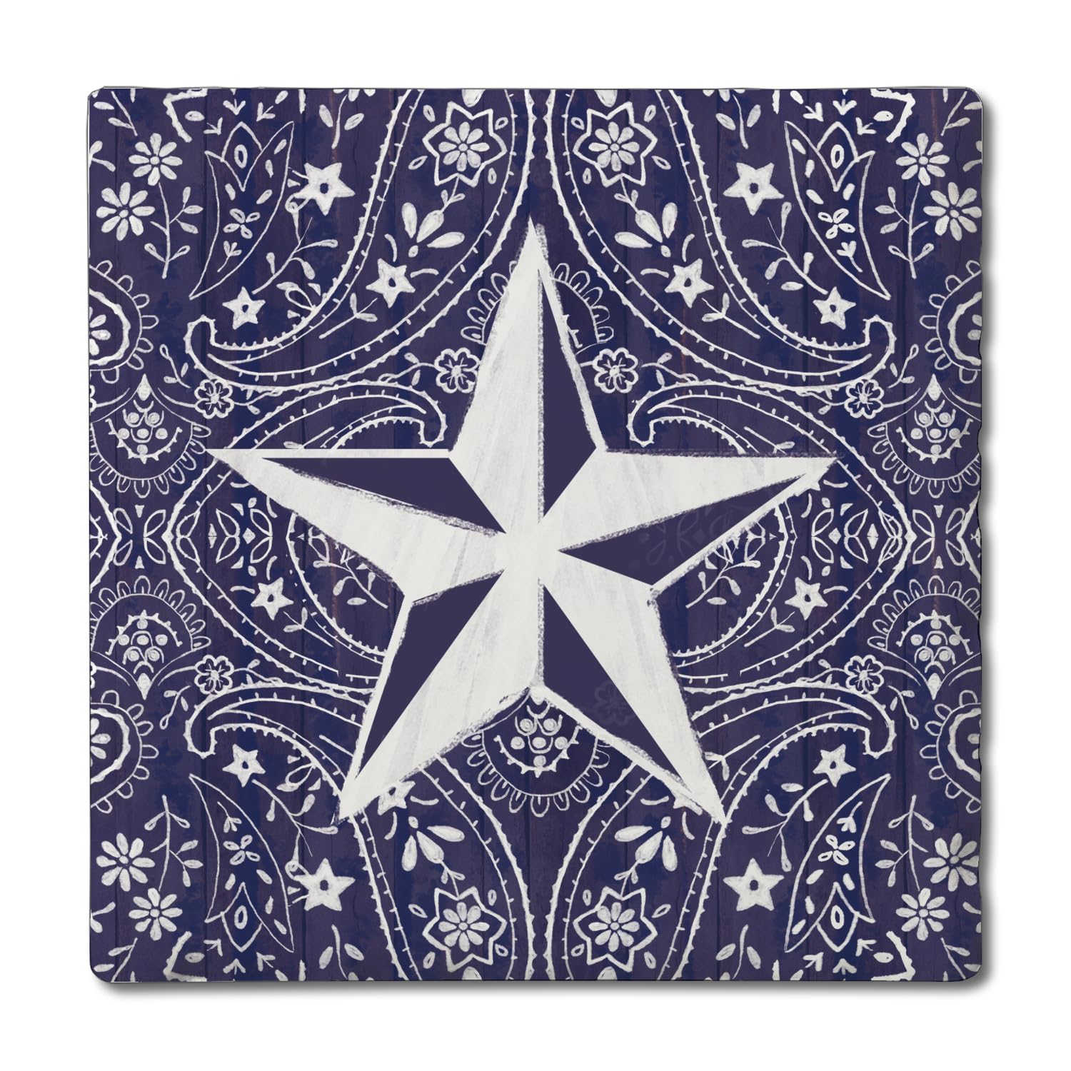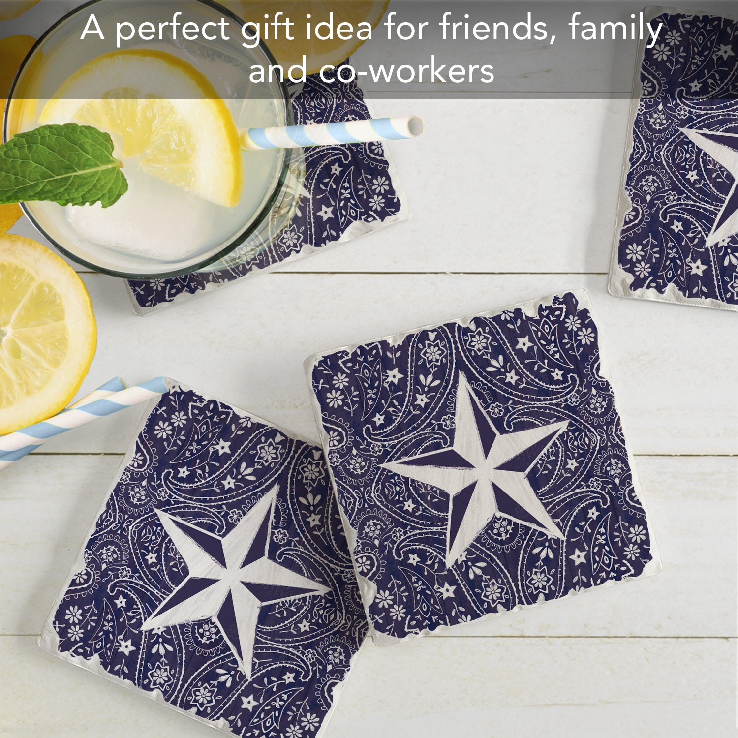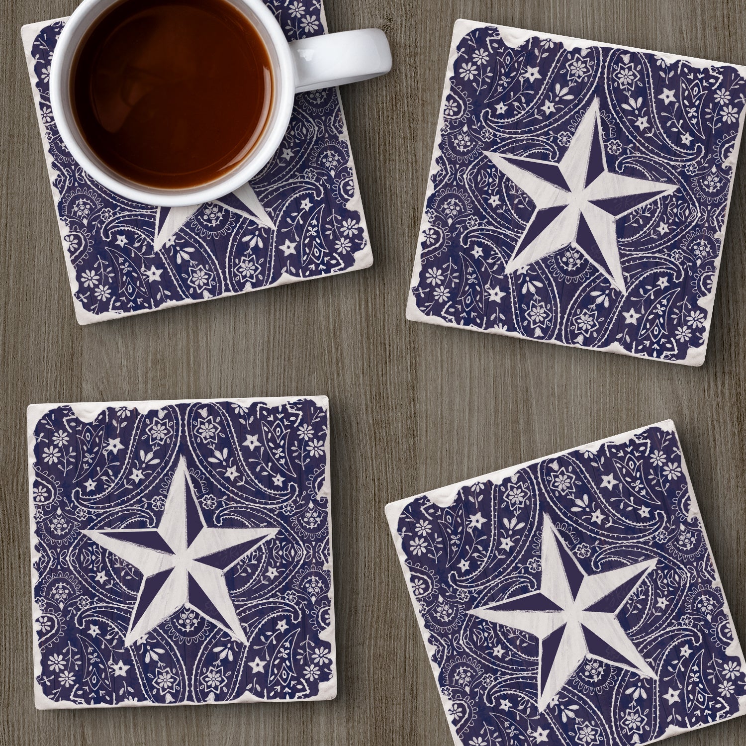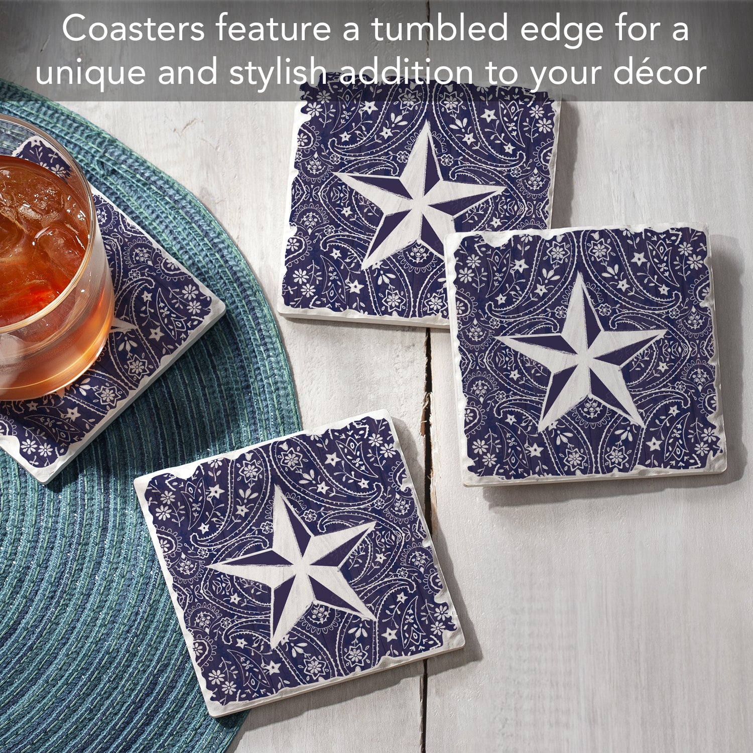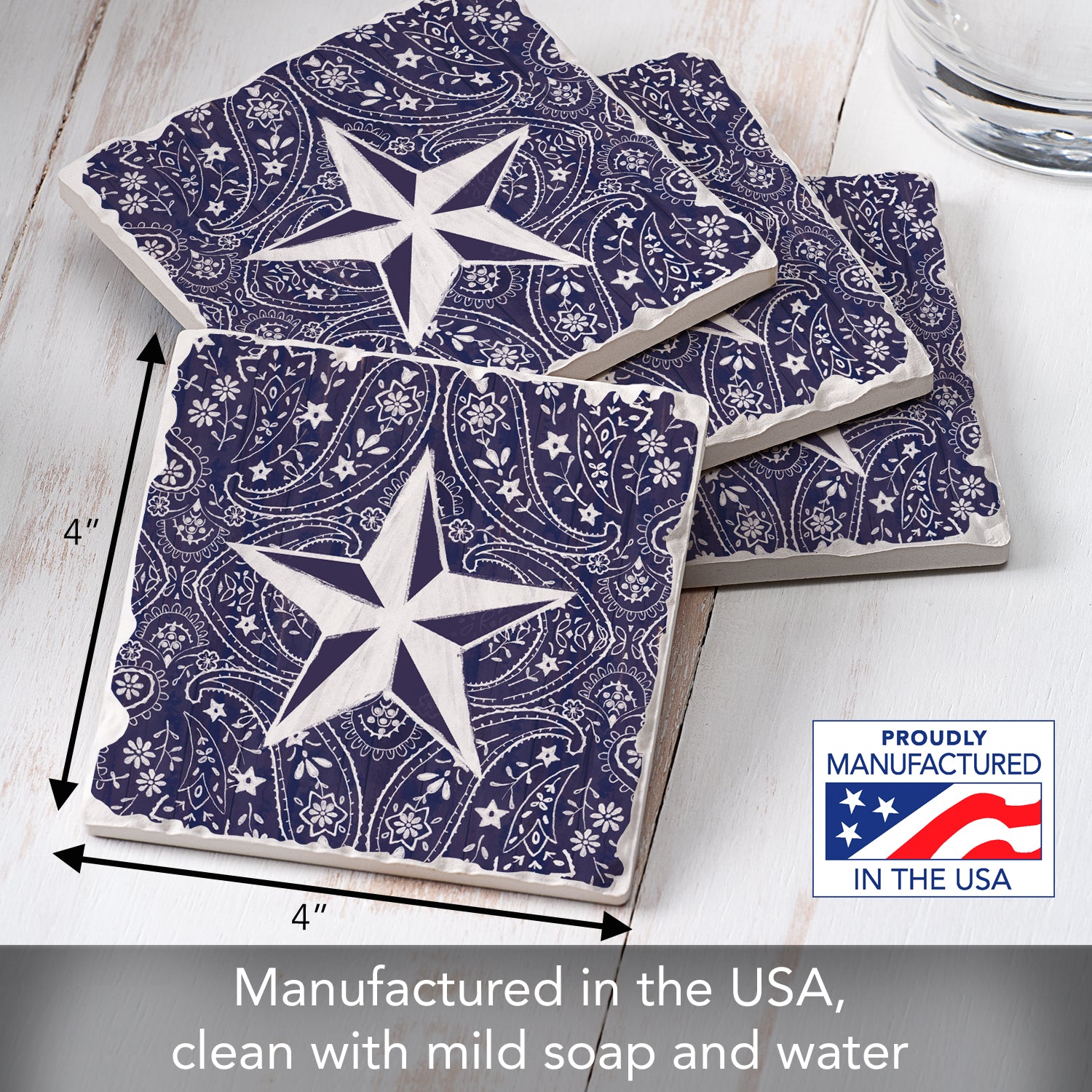 Thirstystone Blue Bandana Star 4-Pack Tumbled Tile Stone Coasters 4" Square Manufactured in the USA