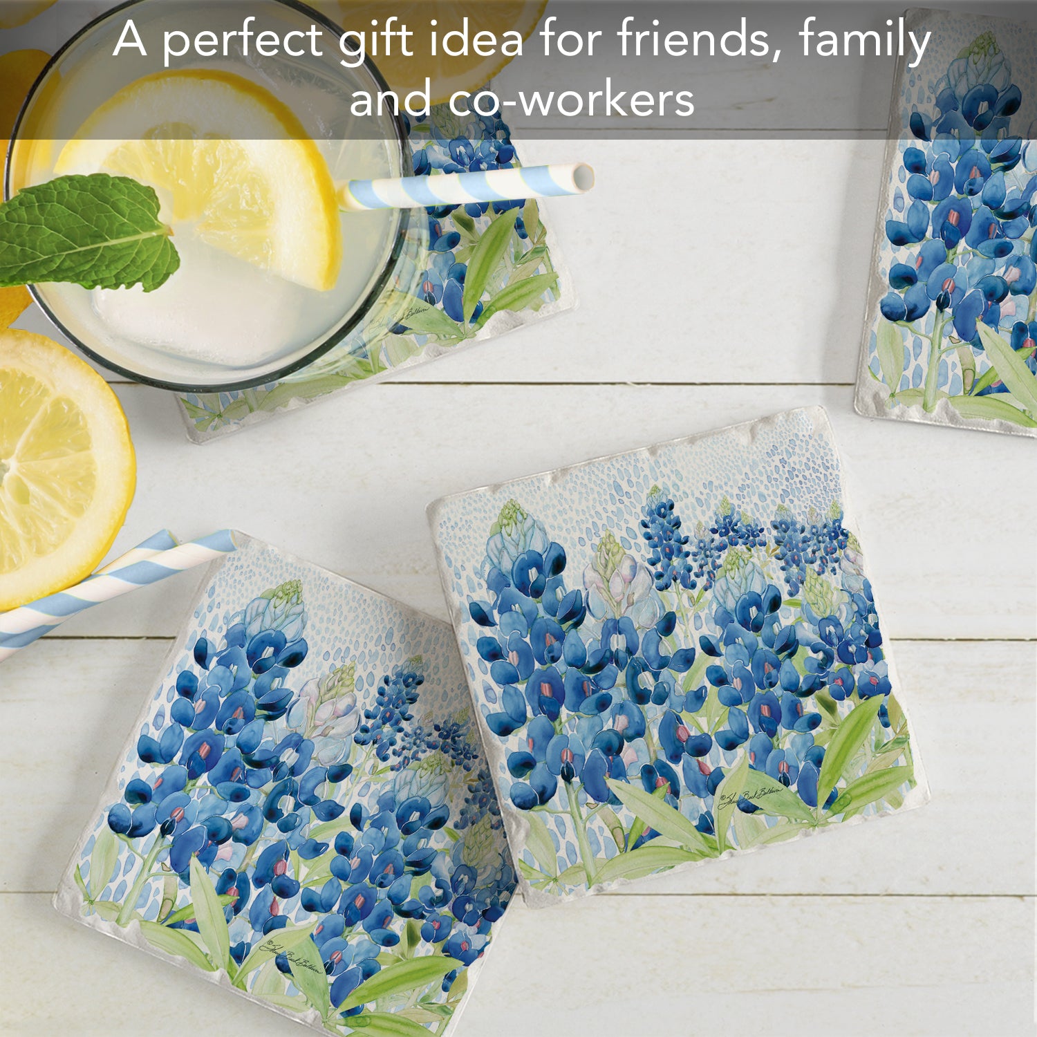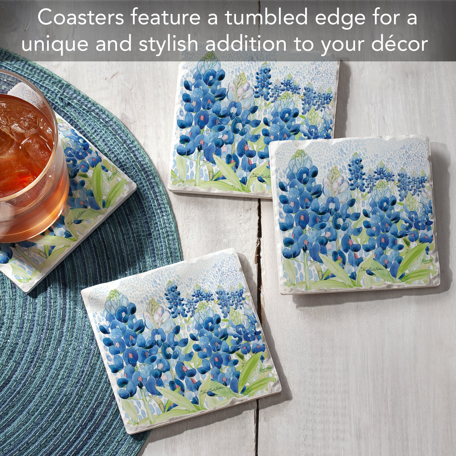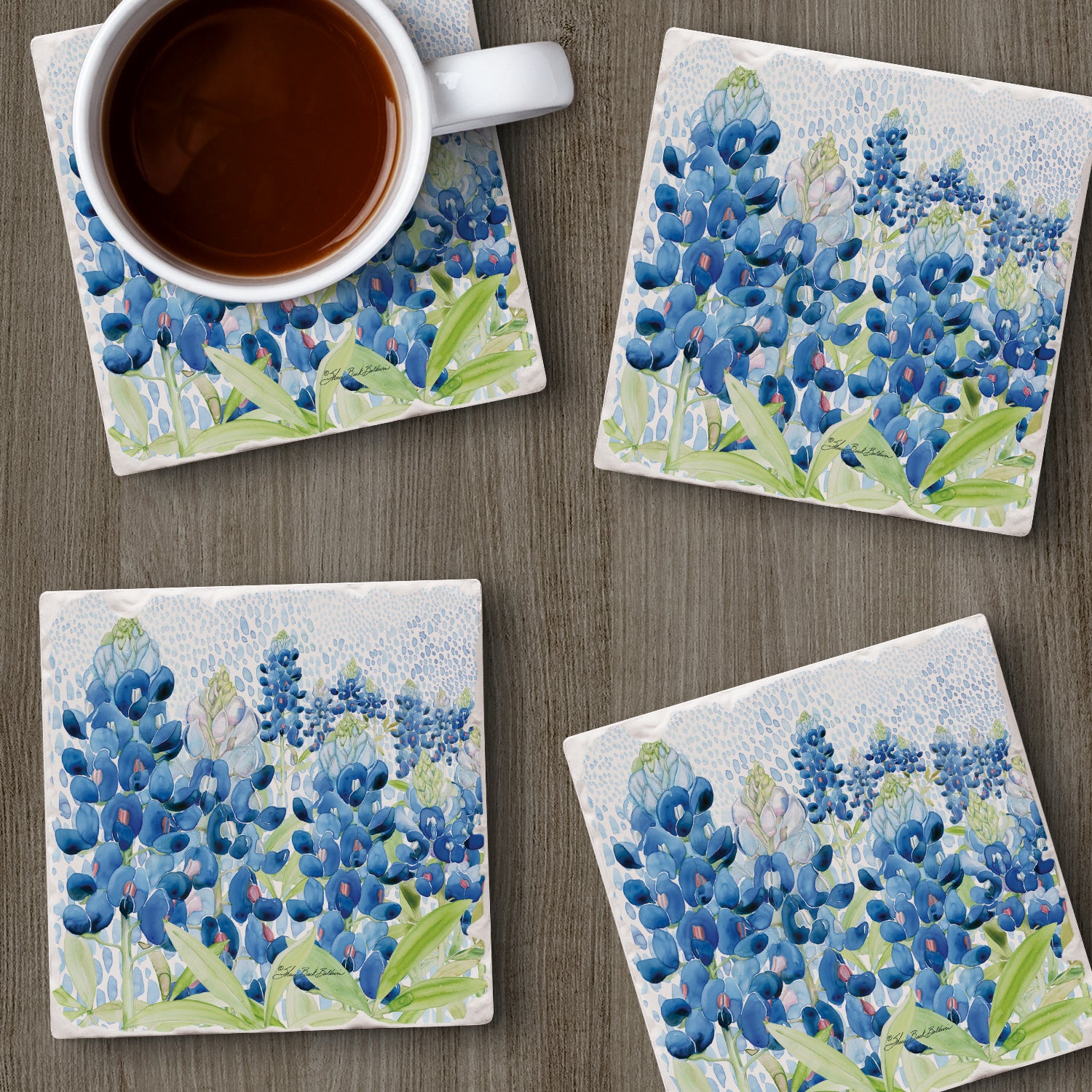 Thirstystone Bluebonnets 4 Pack Tumbled Tile Stone Coasters 4" Square Manufactured in the USA