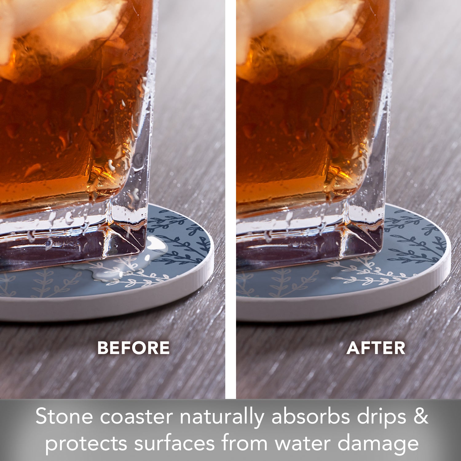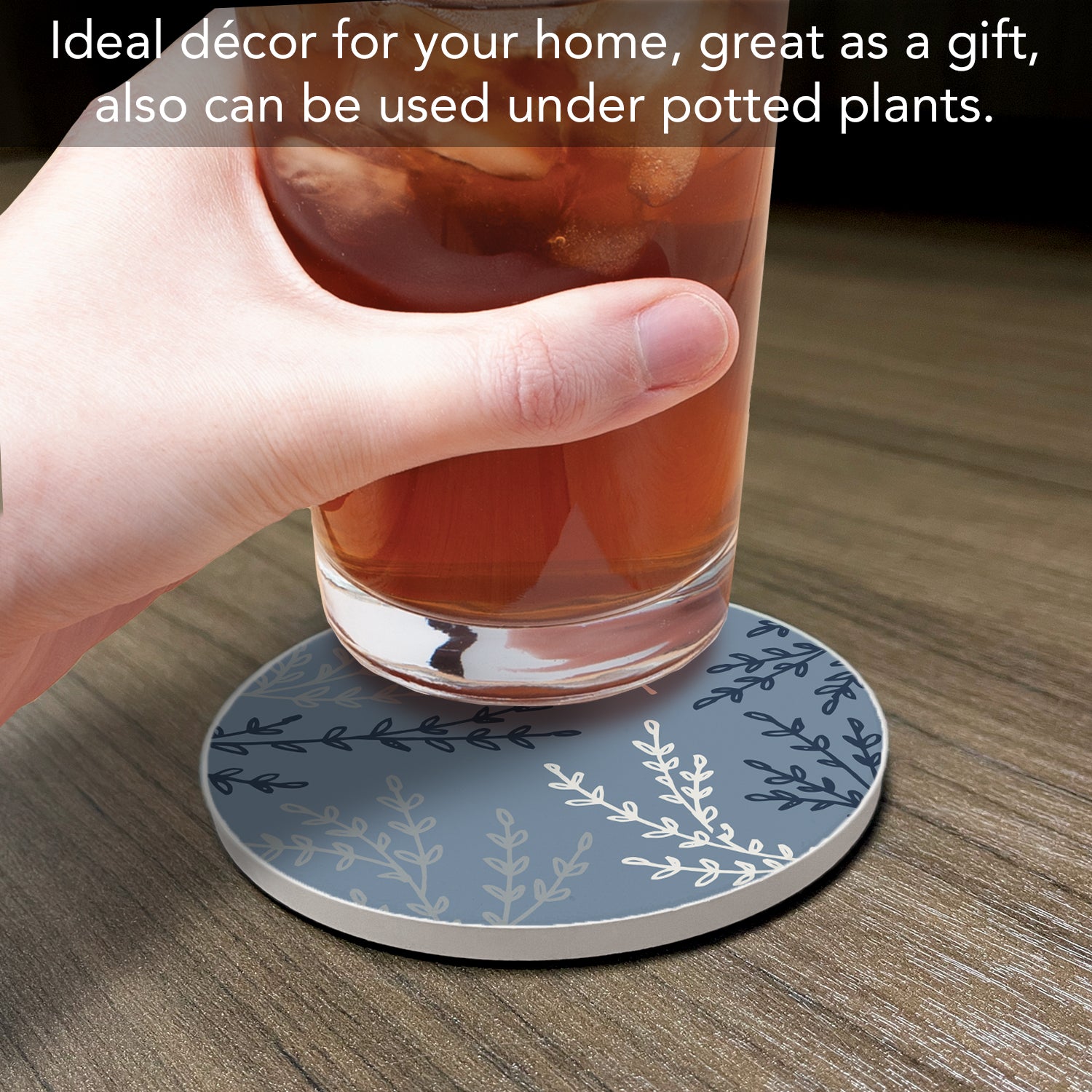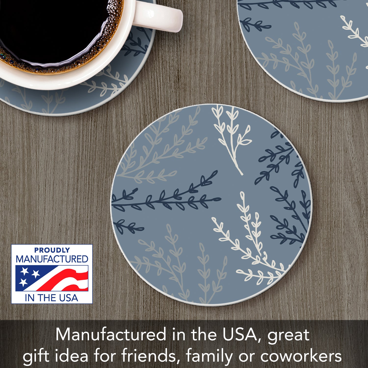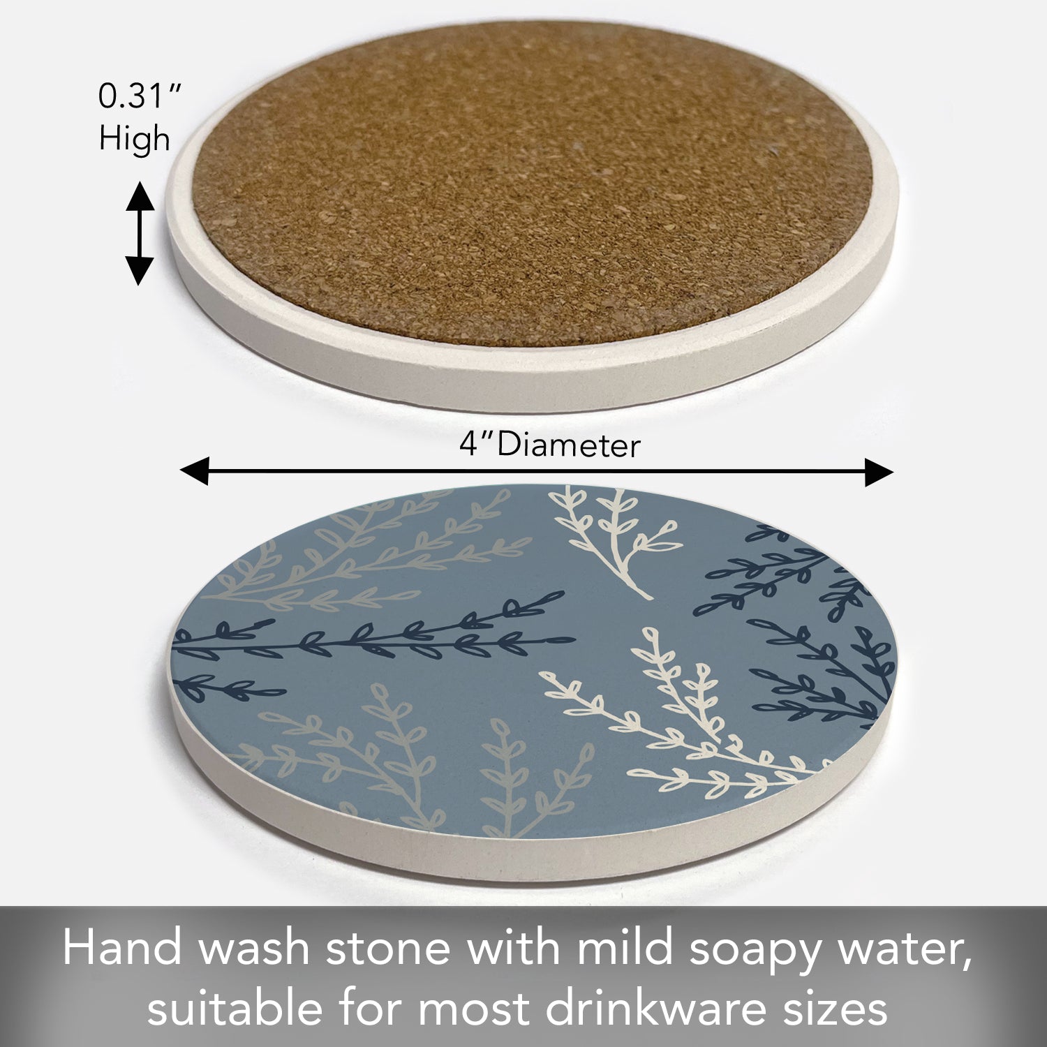 Thirstystone Blue Branches Single Round Absorbent Stone Coaster with Protective Cork Backing Manufactured in The USA 4" Diameter
