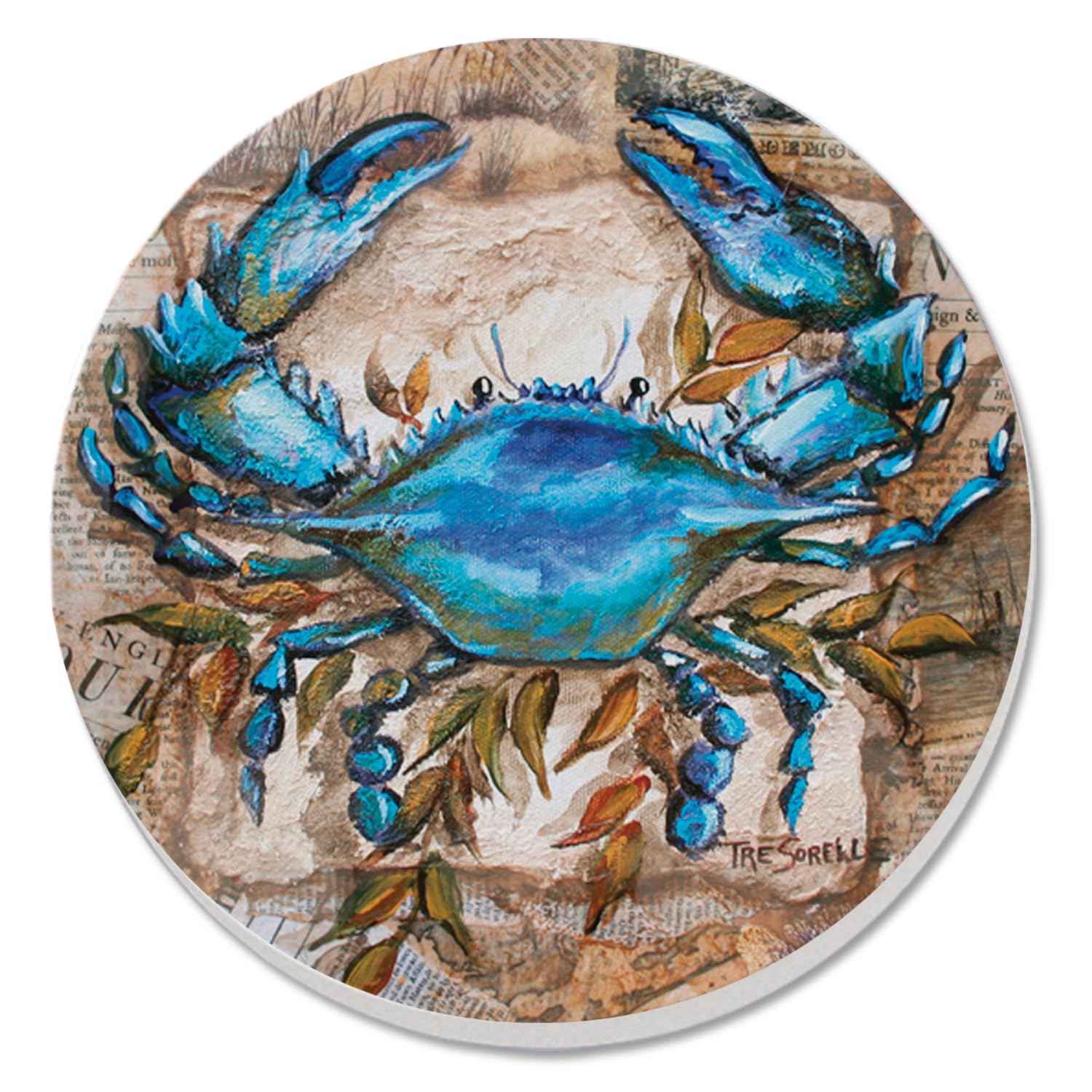 Thirstystone Blue Crab 4-Pack Round Absorbent Stone Coasters Manufactured in The USA