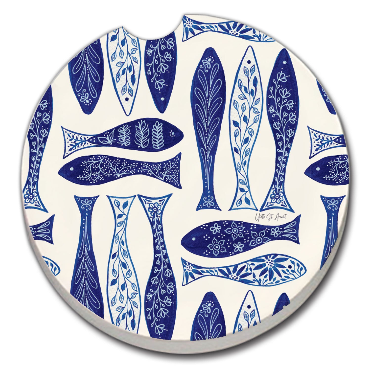 Thirstystone Blue Fish Single Absorbent Stone Car Coaster 2.6” Diameter Manufactured in the USA