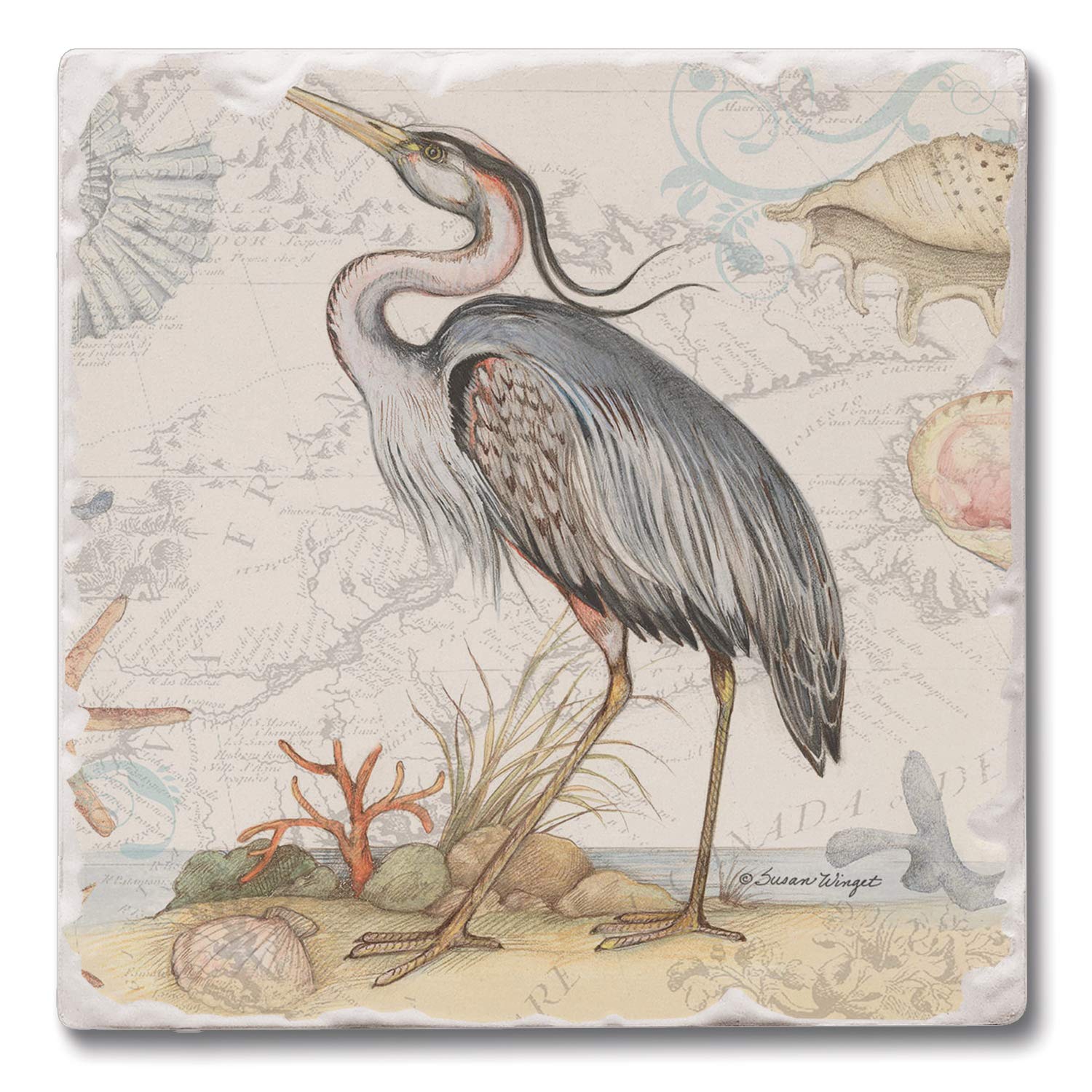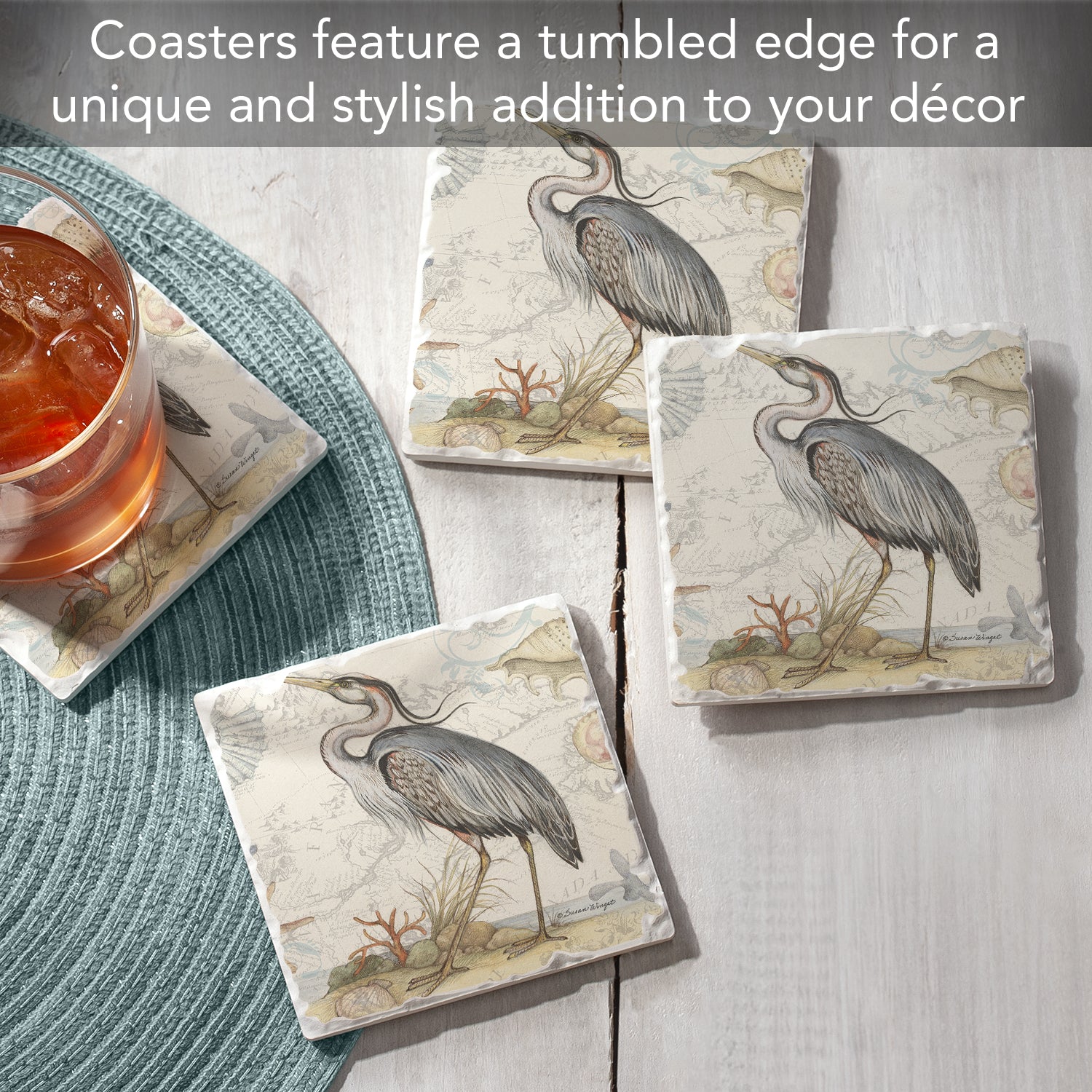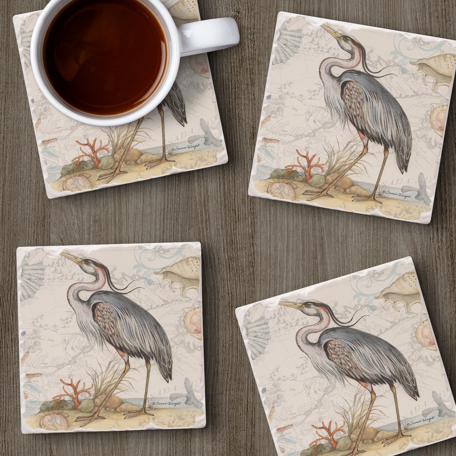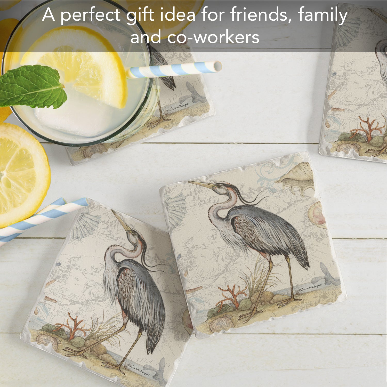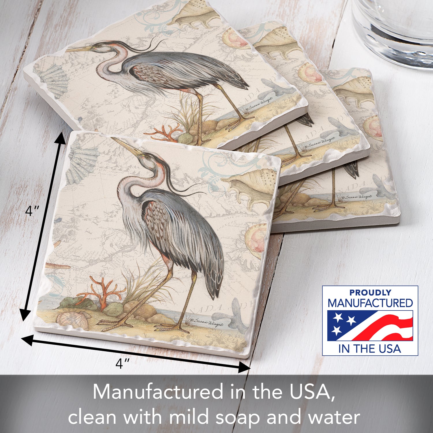 Thirstystone Blue Heron 4 Pack Tumbled Tile Stone Coasters 4" Square Manufactured in the USA