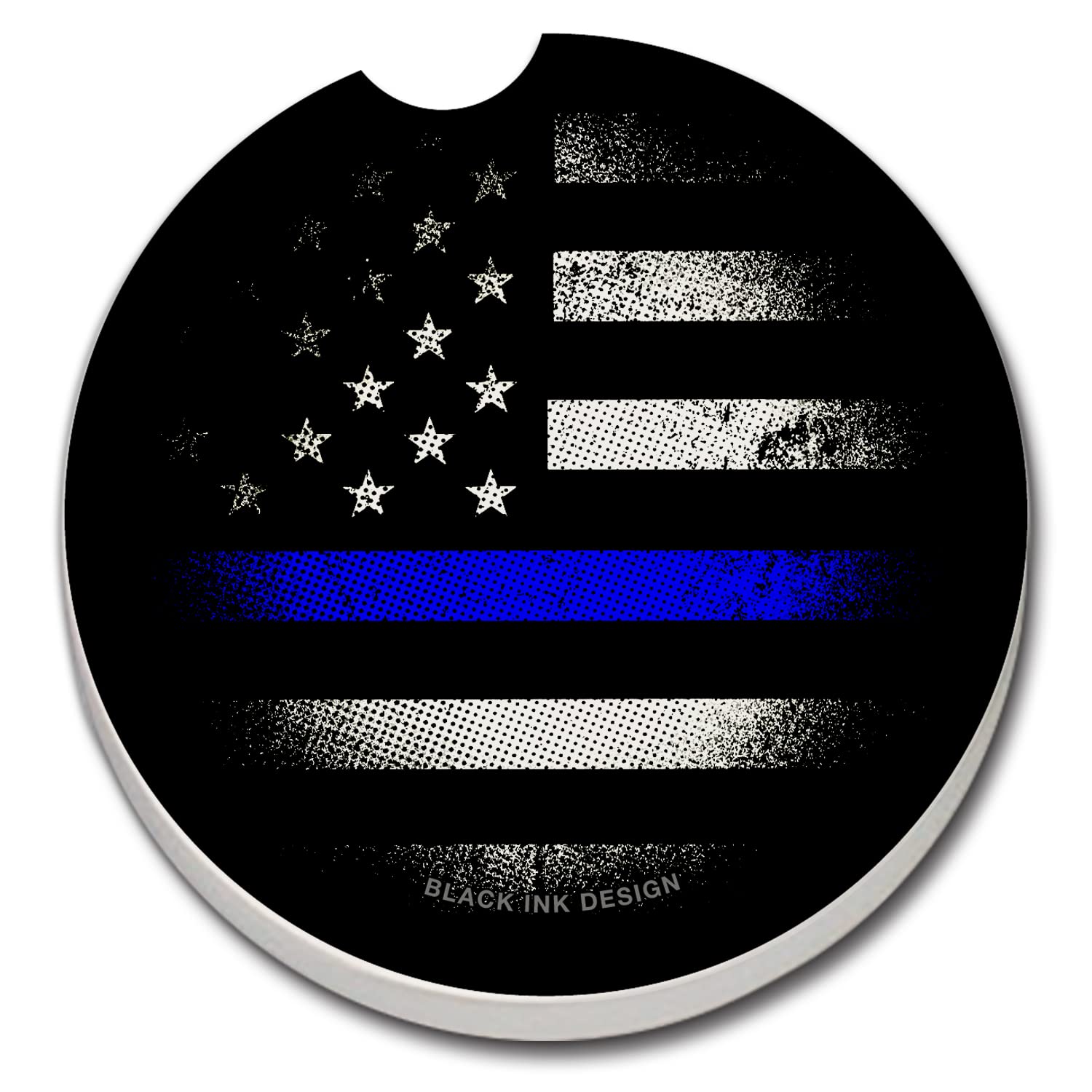 Thirstystone Blue Line by Black Ink Design Single Absorbent Stone Car Coaster 2.6" Diameter