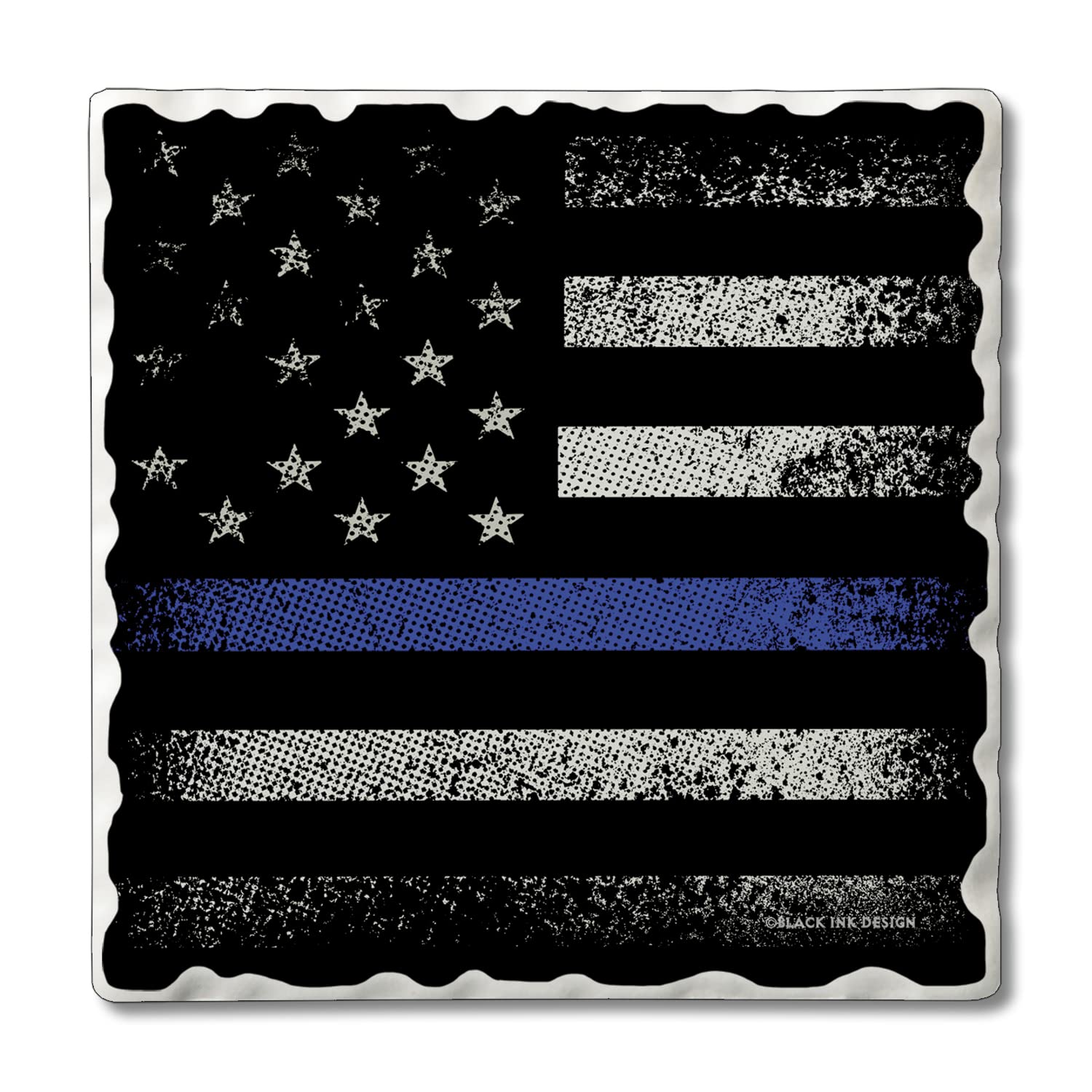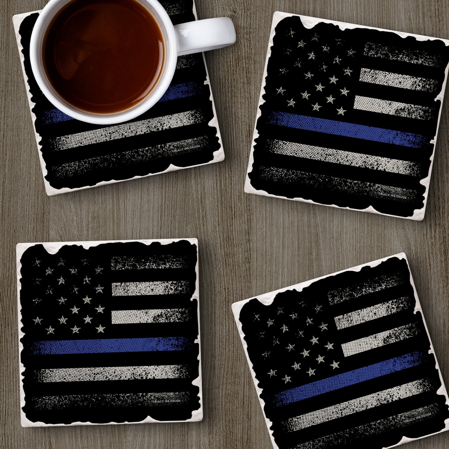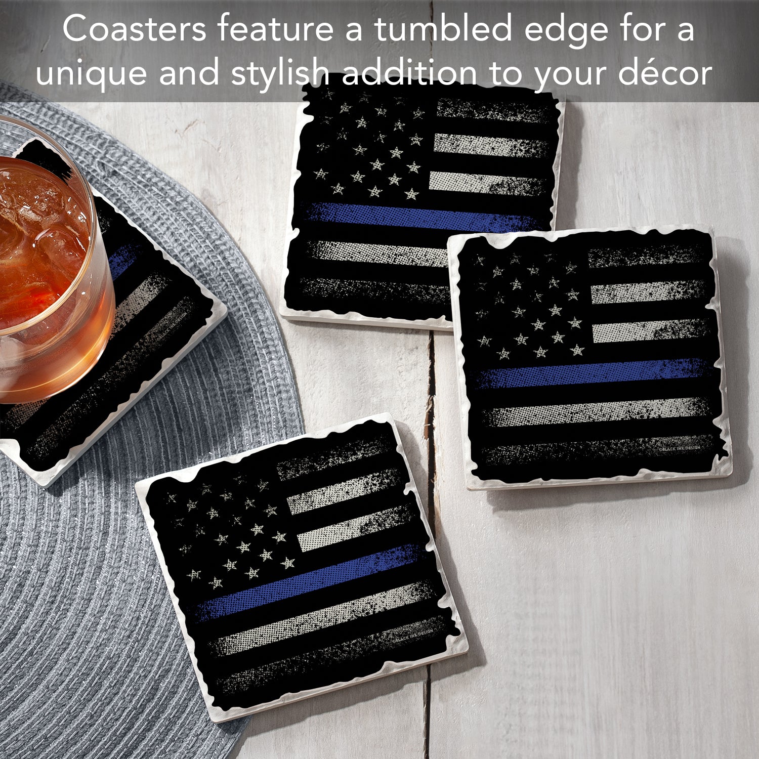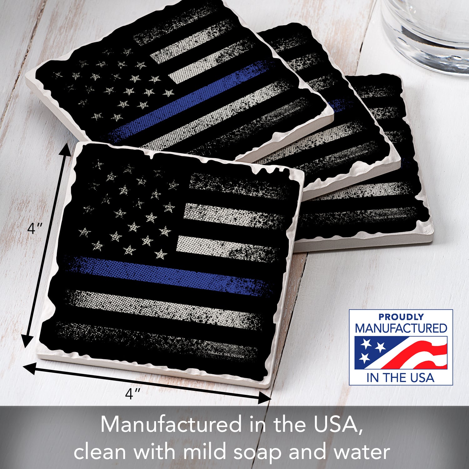 CounterArt Blue Line Flag 4 Pack Tumbled Tile Stone Coasters with Protective Cork Backing Manufactured in The USA