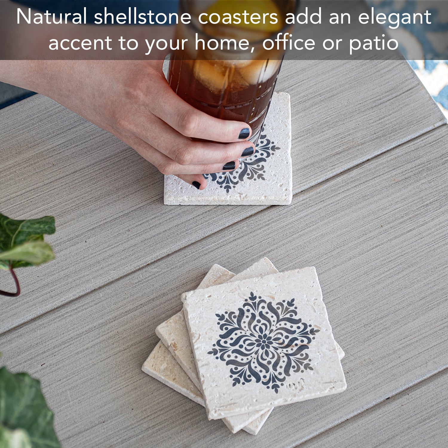 AUTHENTIC SHELLSTONE- Each Coaster is made from authentic natural Shell Stone Shell Stone is known as a type of limestone, but density of the stone is like Marble. Shell Stone is strong and stays cool to the touch.