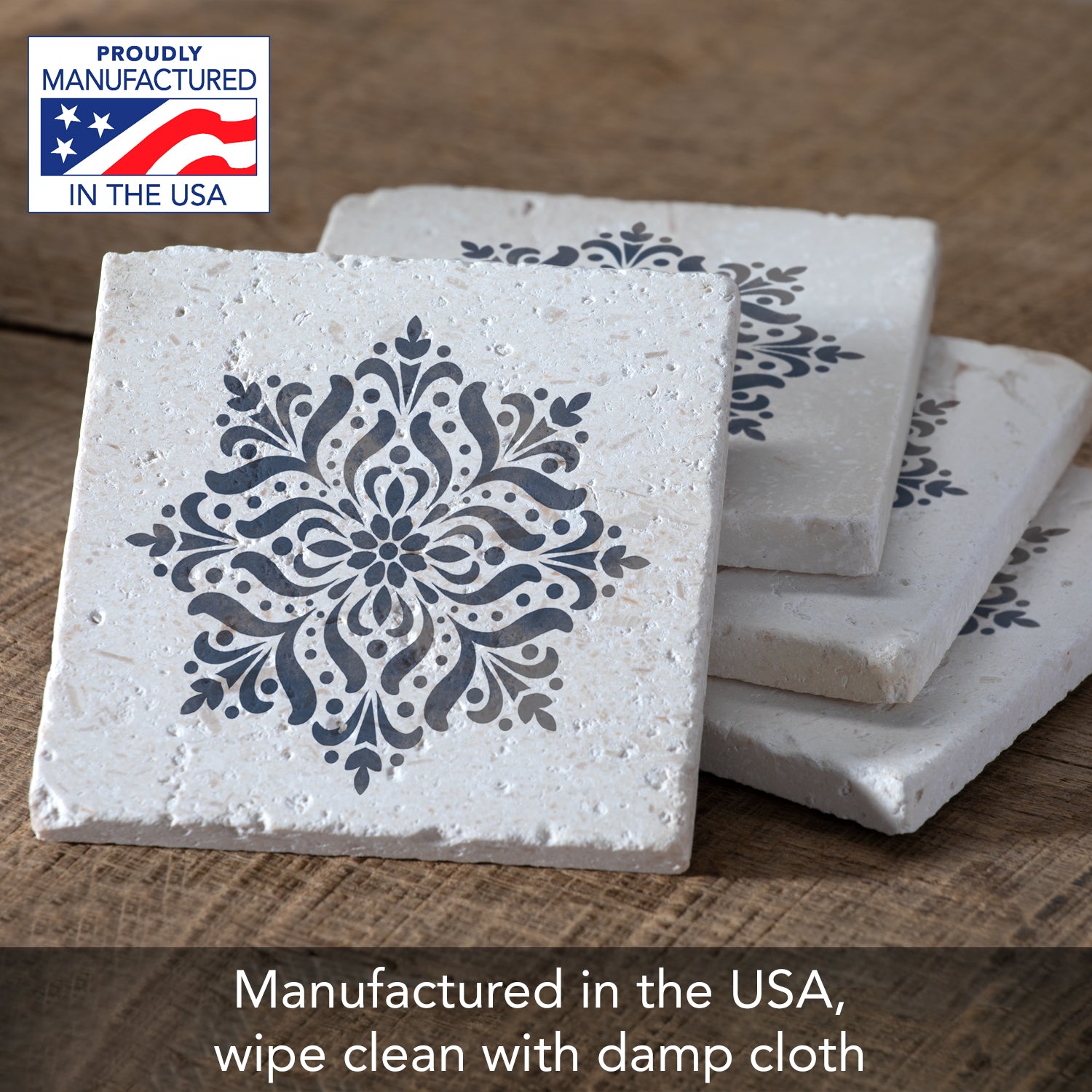 Thirstystone Blue Medallion 4 Pack Natural Shell Stone Absorbent Coasters Manufactured in the USA