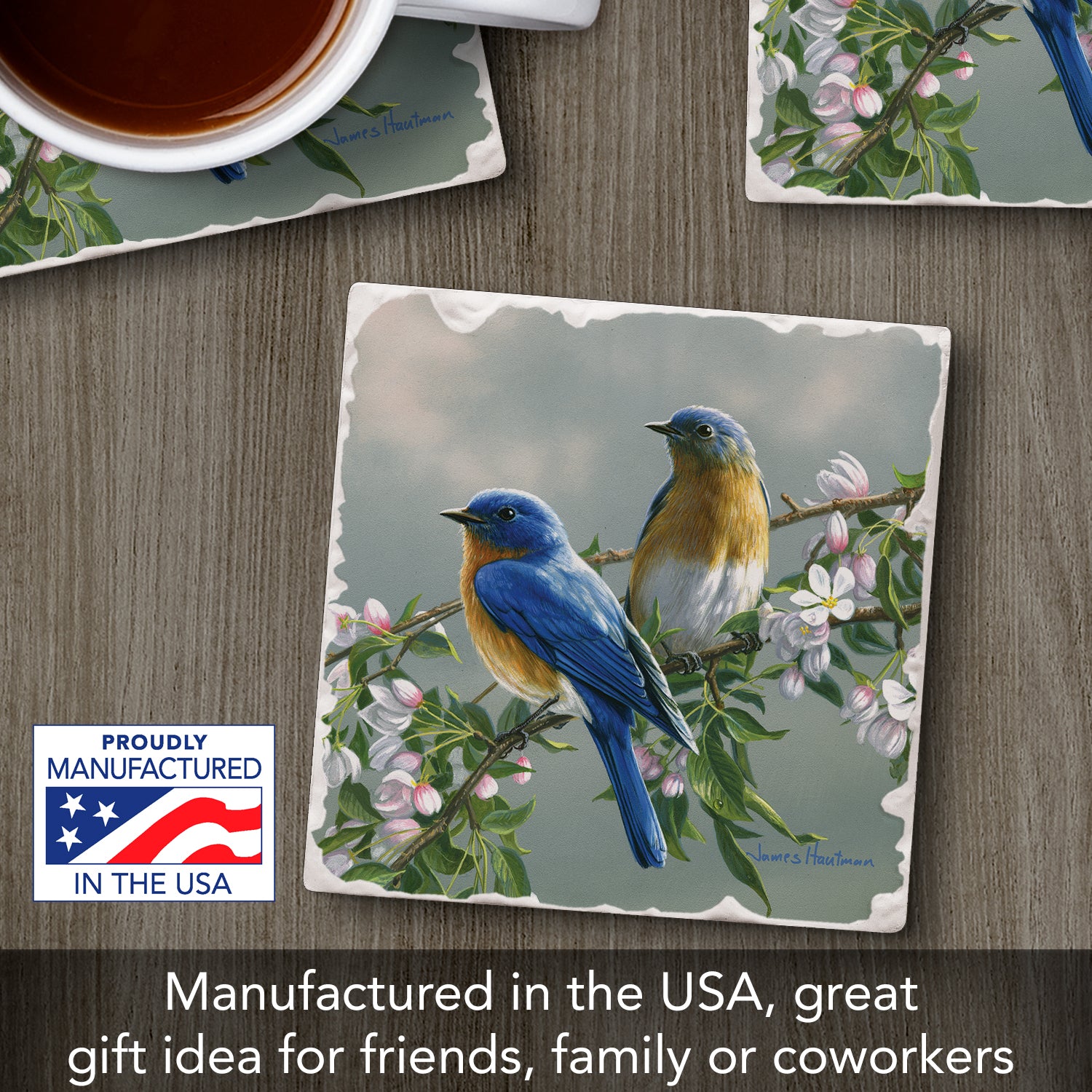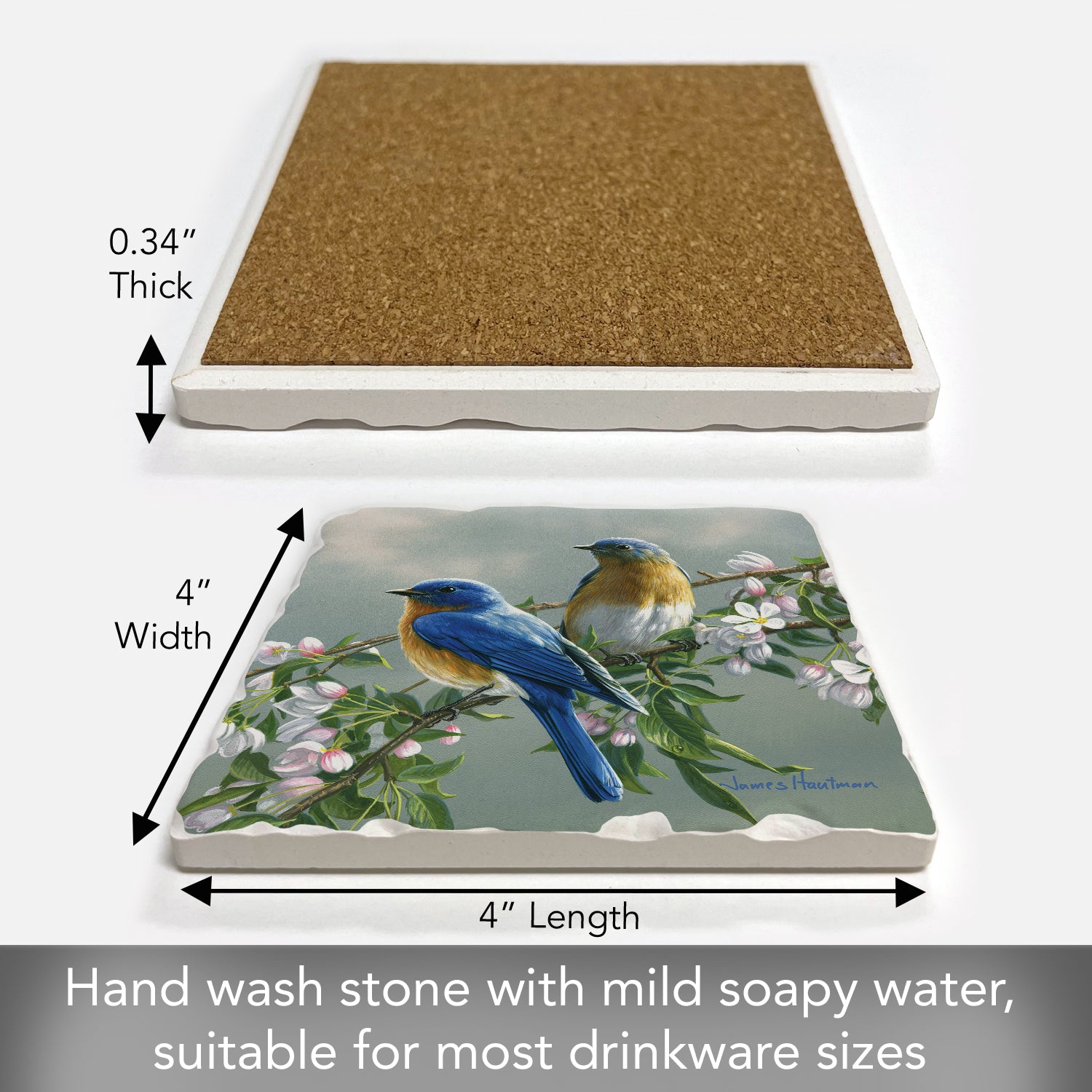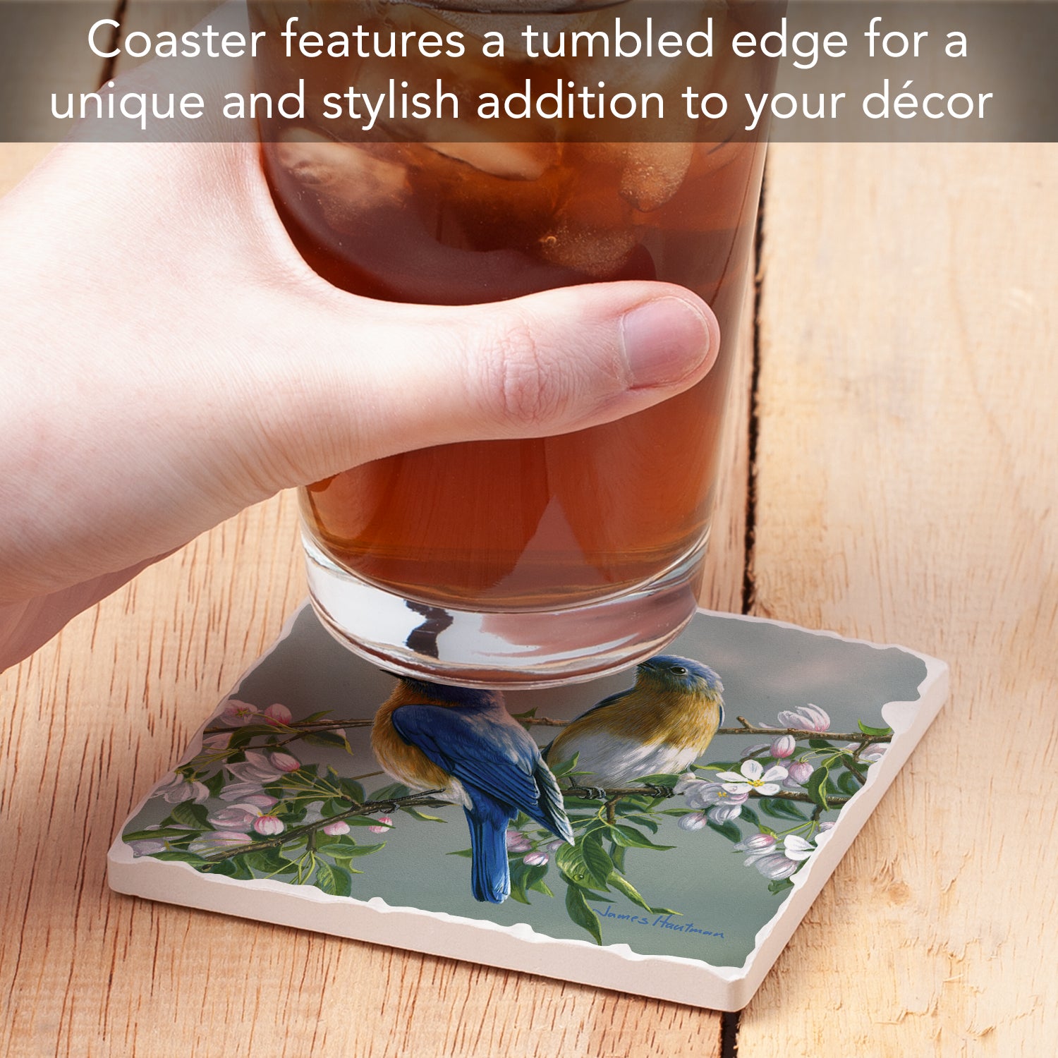 Thirstystone Bluebird Branch Single Tumbled Tile Stone Coaster with Protective Cork Backing Manufactured in The USA 4" Square, Artistic, Easily Wipes Clean