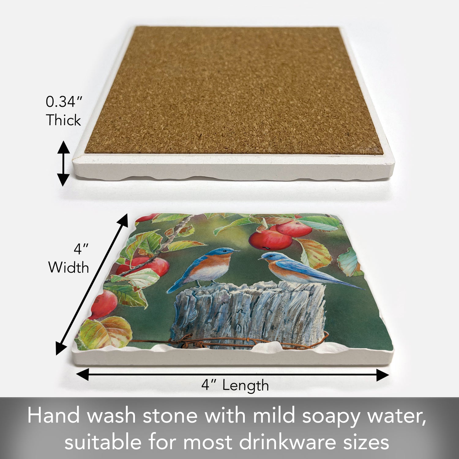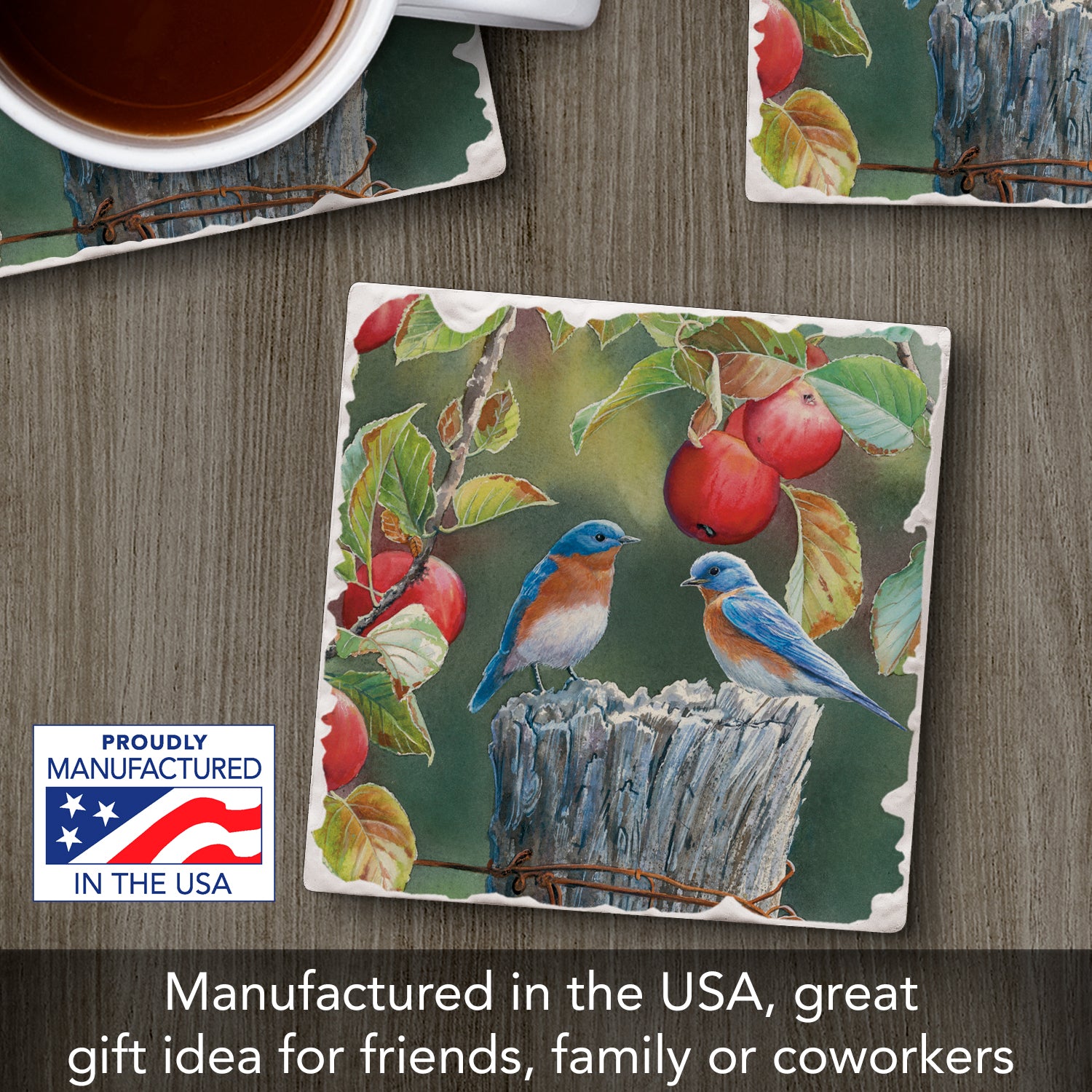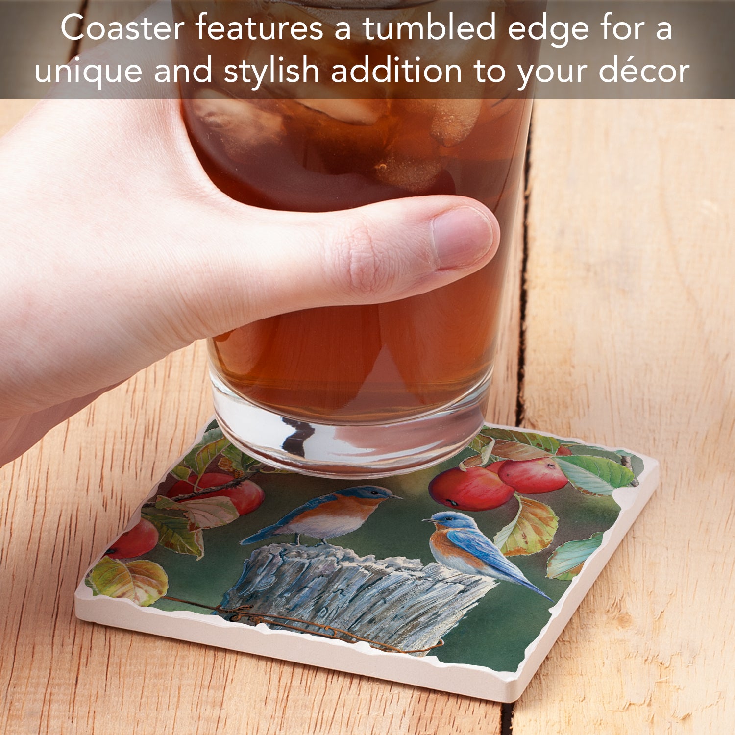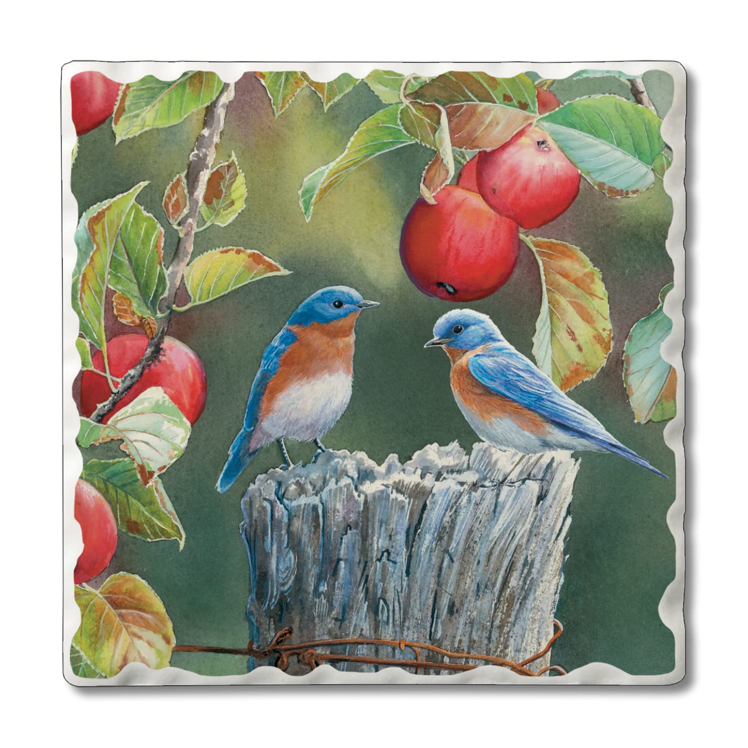 Thirstystone Bluebird Pair Single Tumbled Tile Stone Coaster with Protective Cork Backing Manufactured in The USA 4" Square, Artistic, Easily Wipes Clean