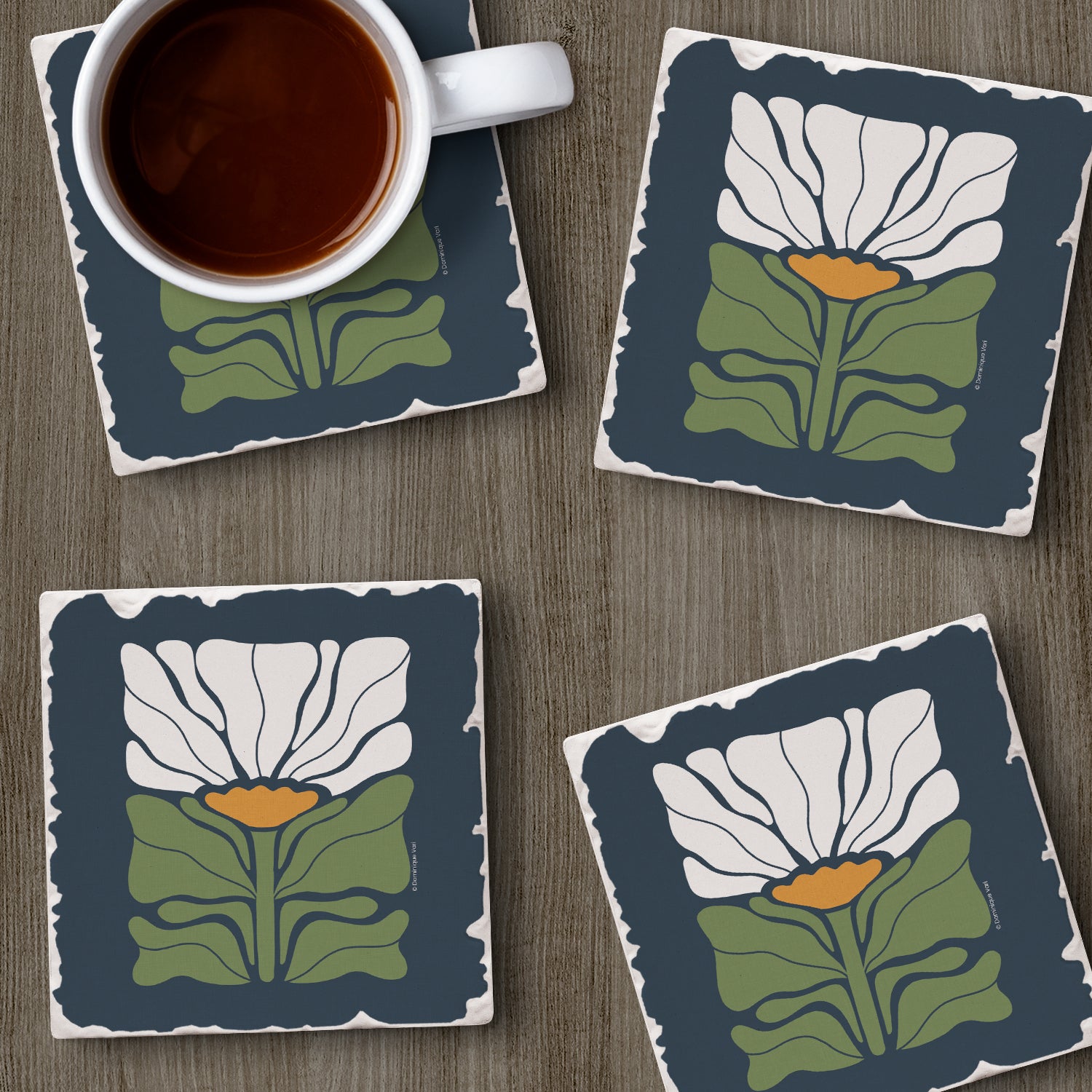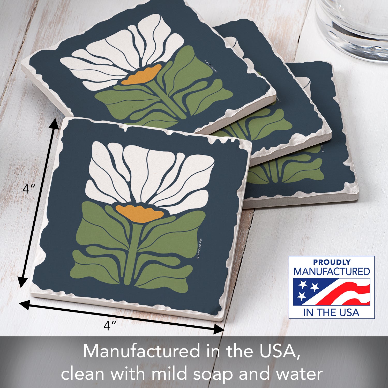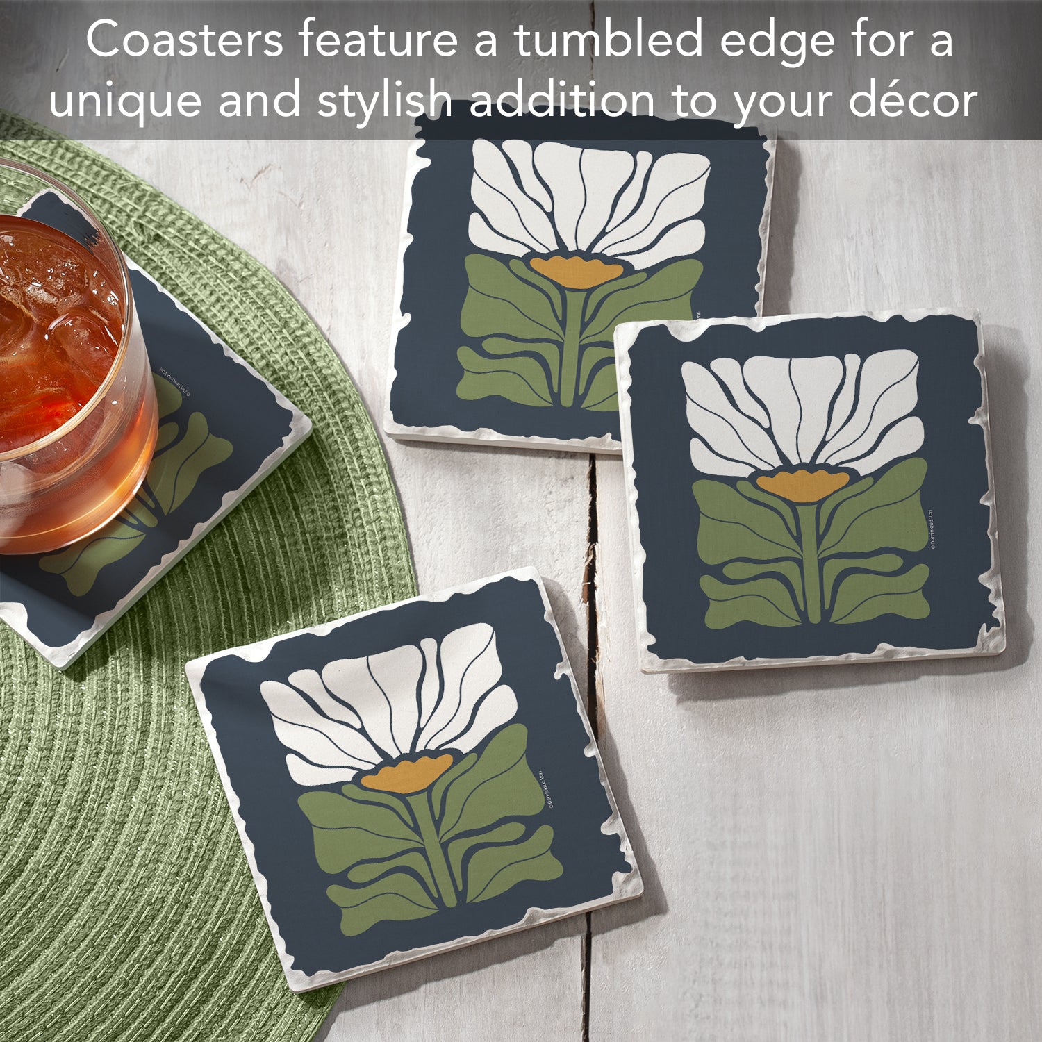 Thirstystone Bohemian Floral 4 Pack Tumbled Tile Stone Coasters 4" Square Manufactured in the USA