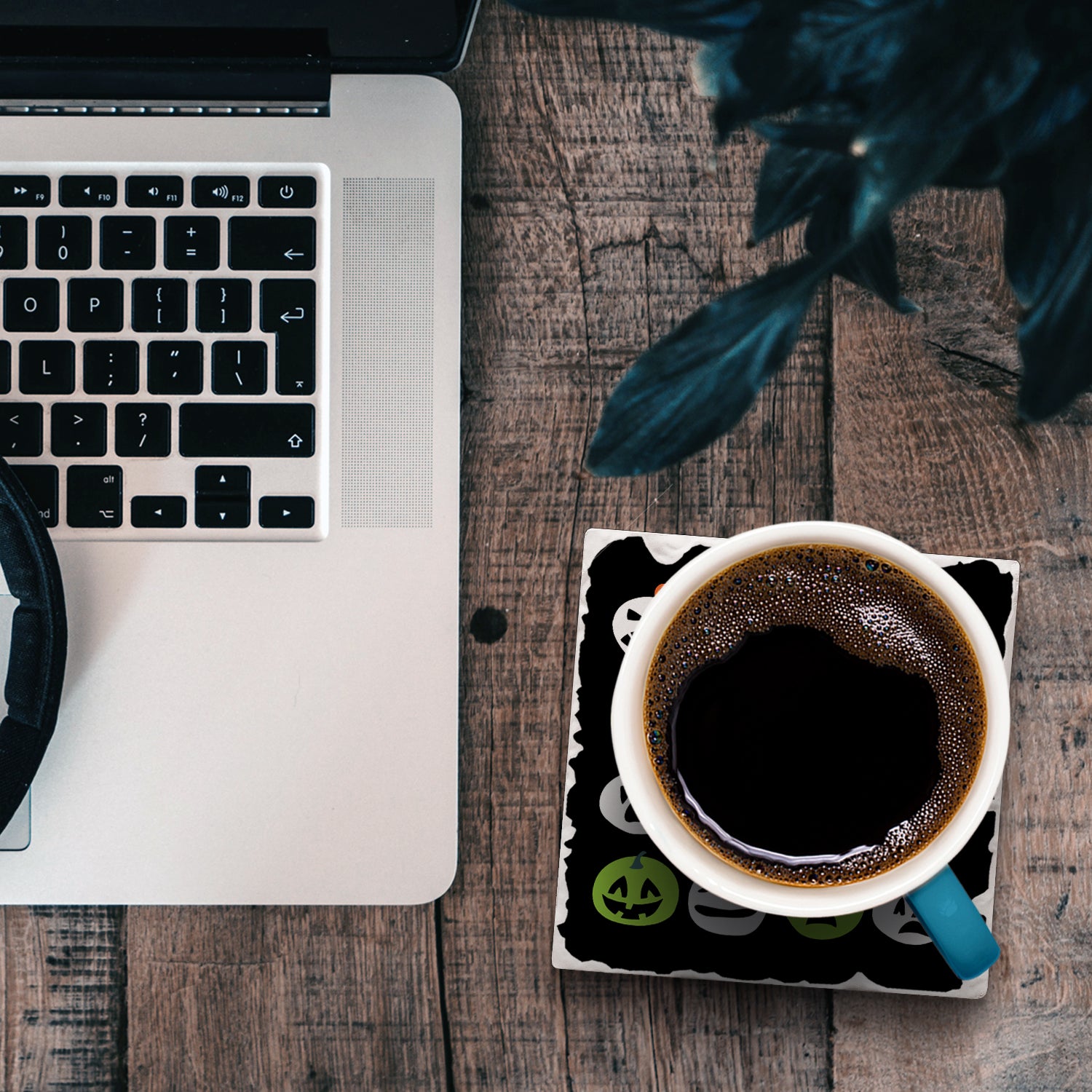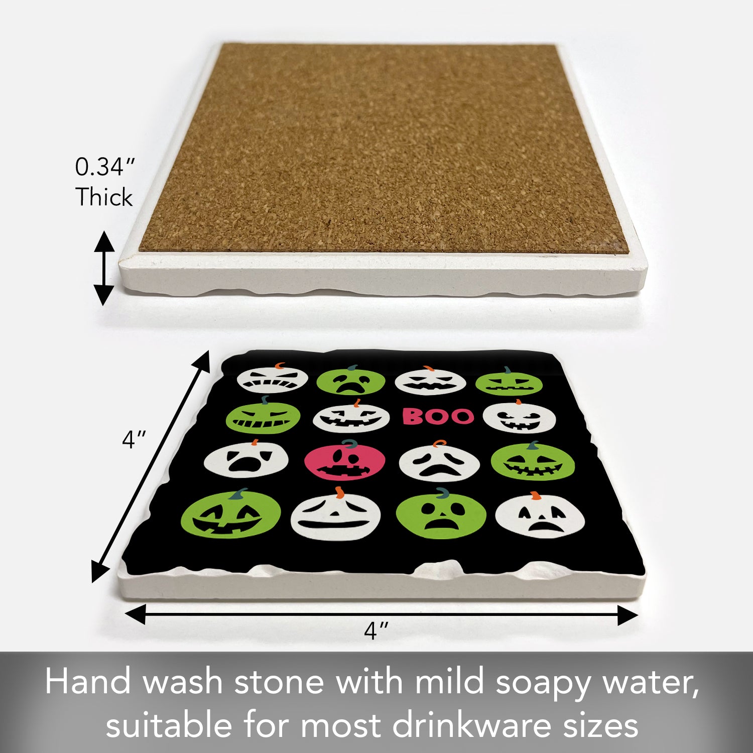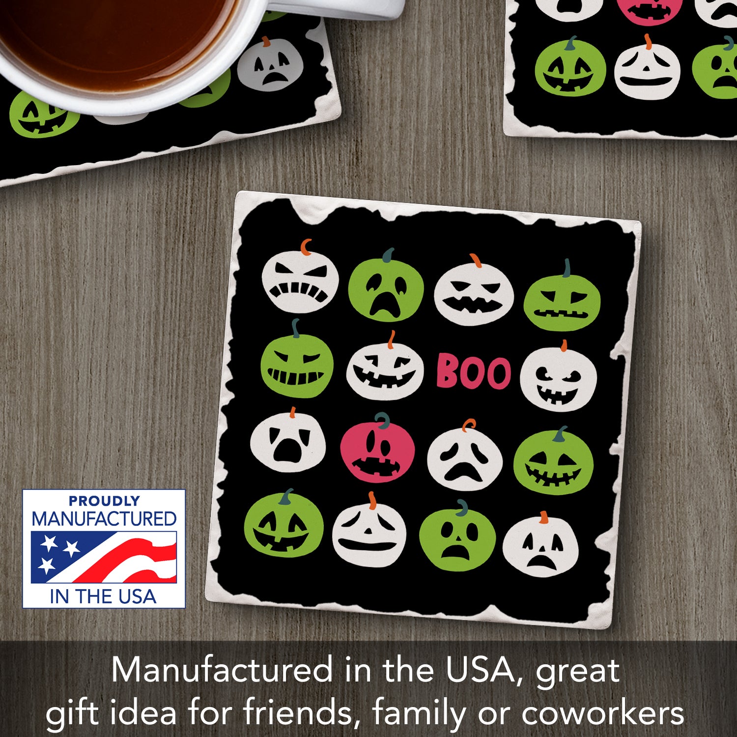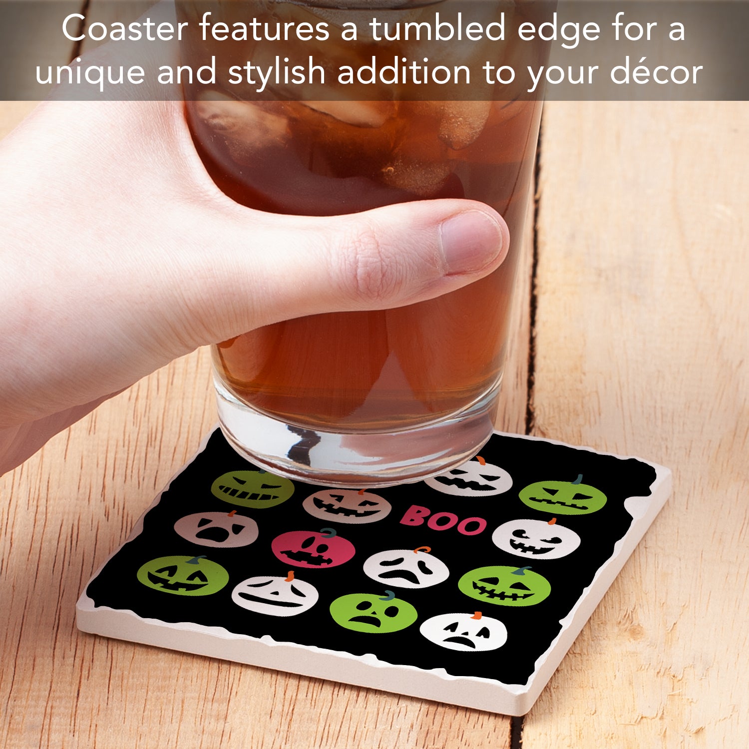 Thirstystone Boo Pumpkins Single Tumbled Tile Stone Coaster with Protective Cork Backing Manufactured in The USA 4" Square, Colorful, Artistiic, Easily Wipes Clean