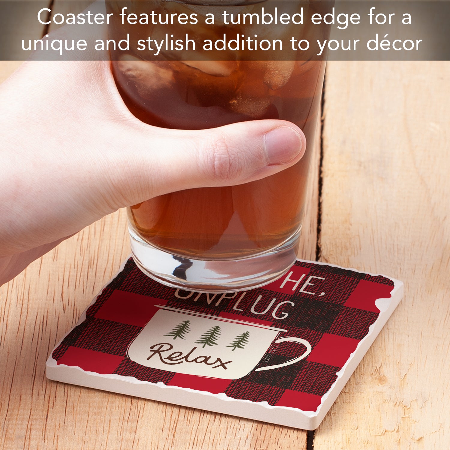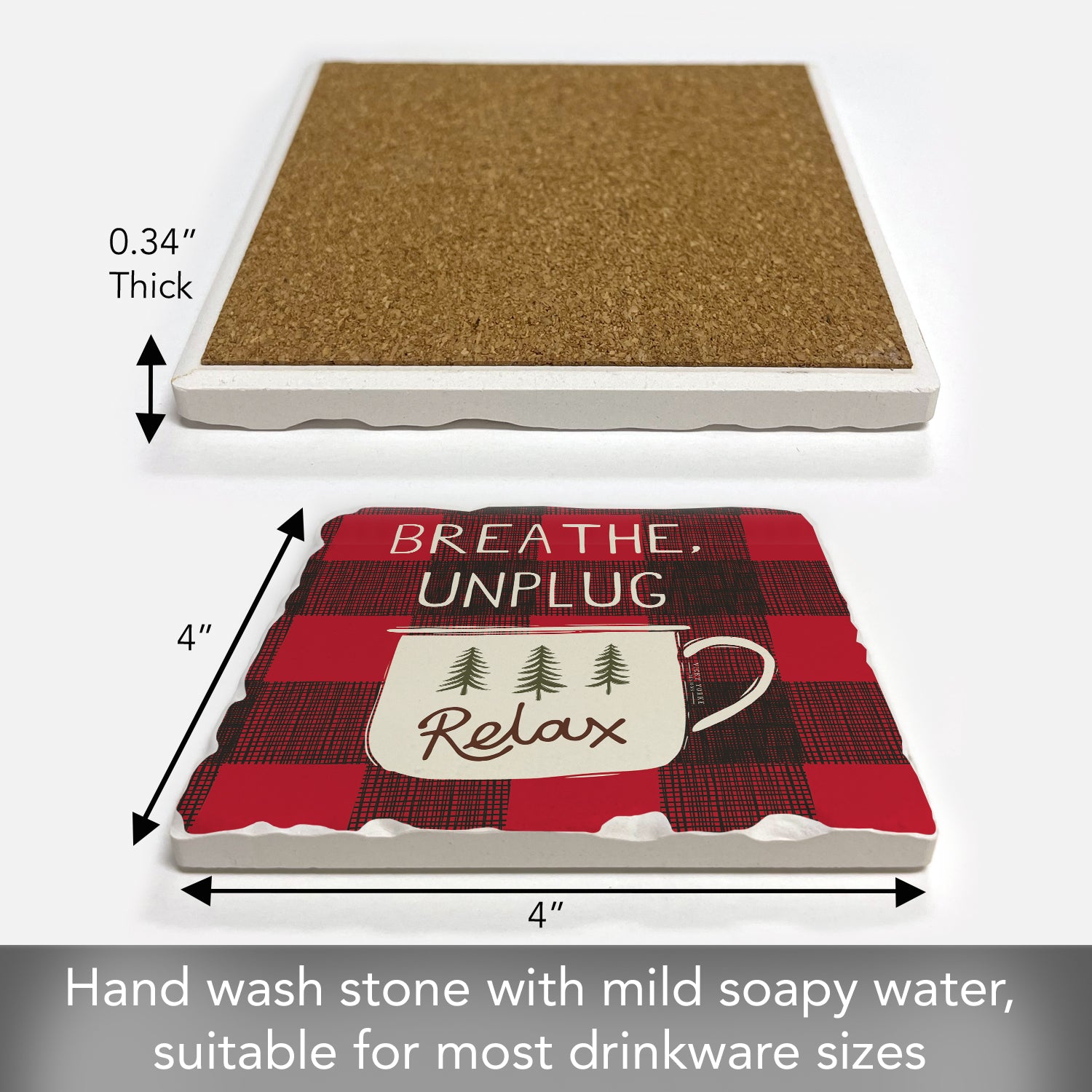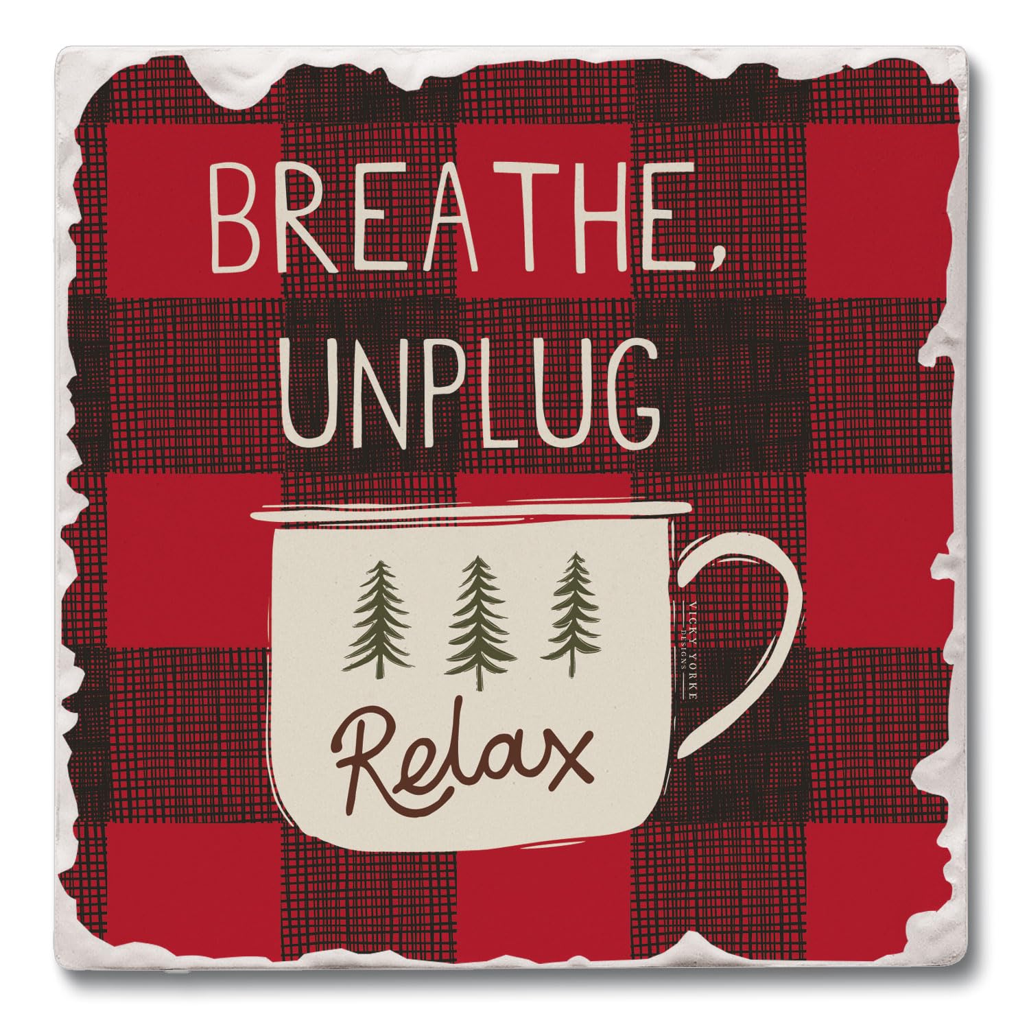 Thirstystone Breathe Unplug Relax Single Tumbled Tile Stone Coaster with Protective Cork Backing Manufactured in The USA 4" Square, Artistic, Easily Wipes Clean