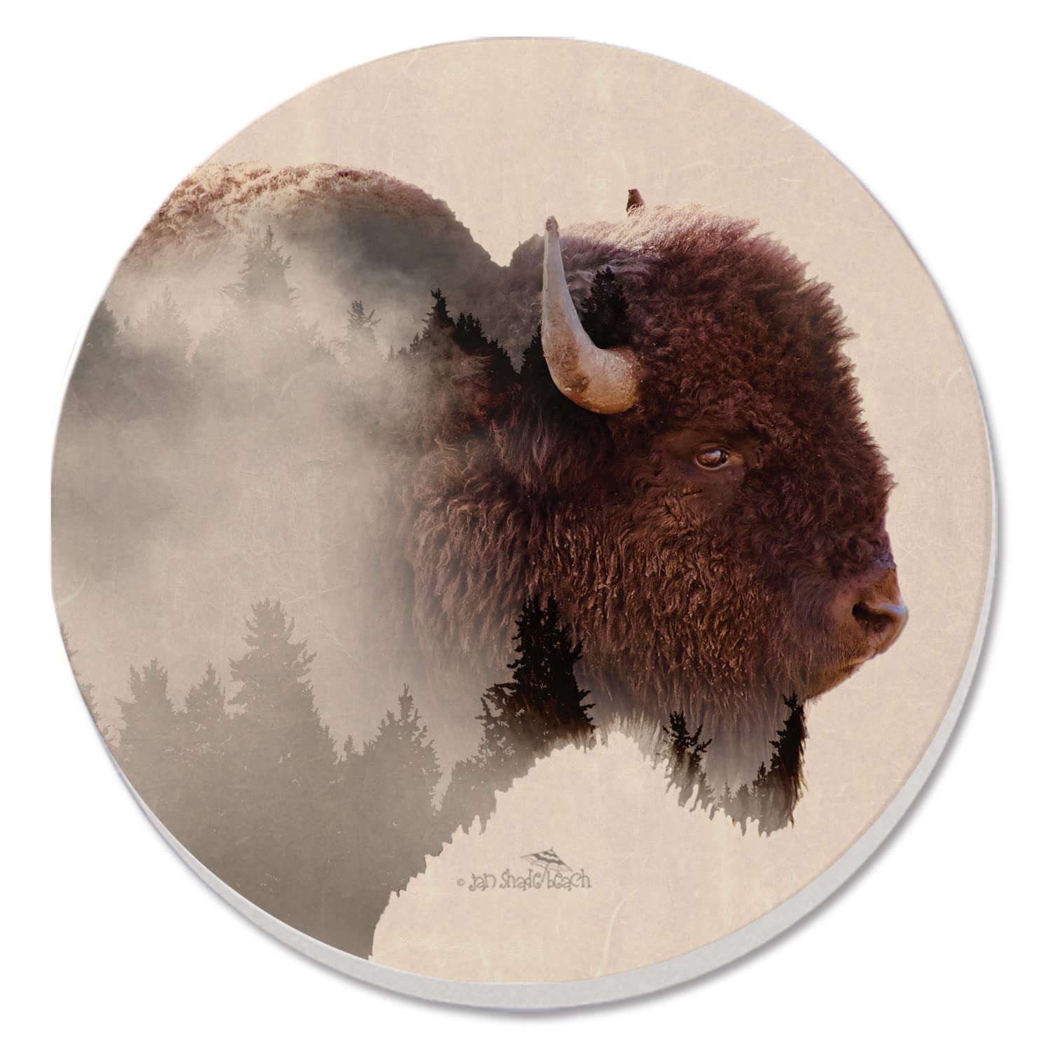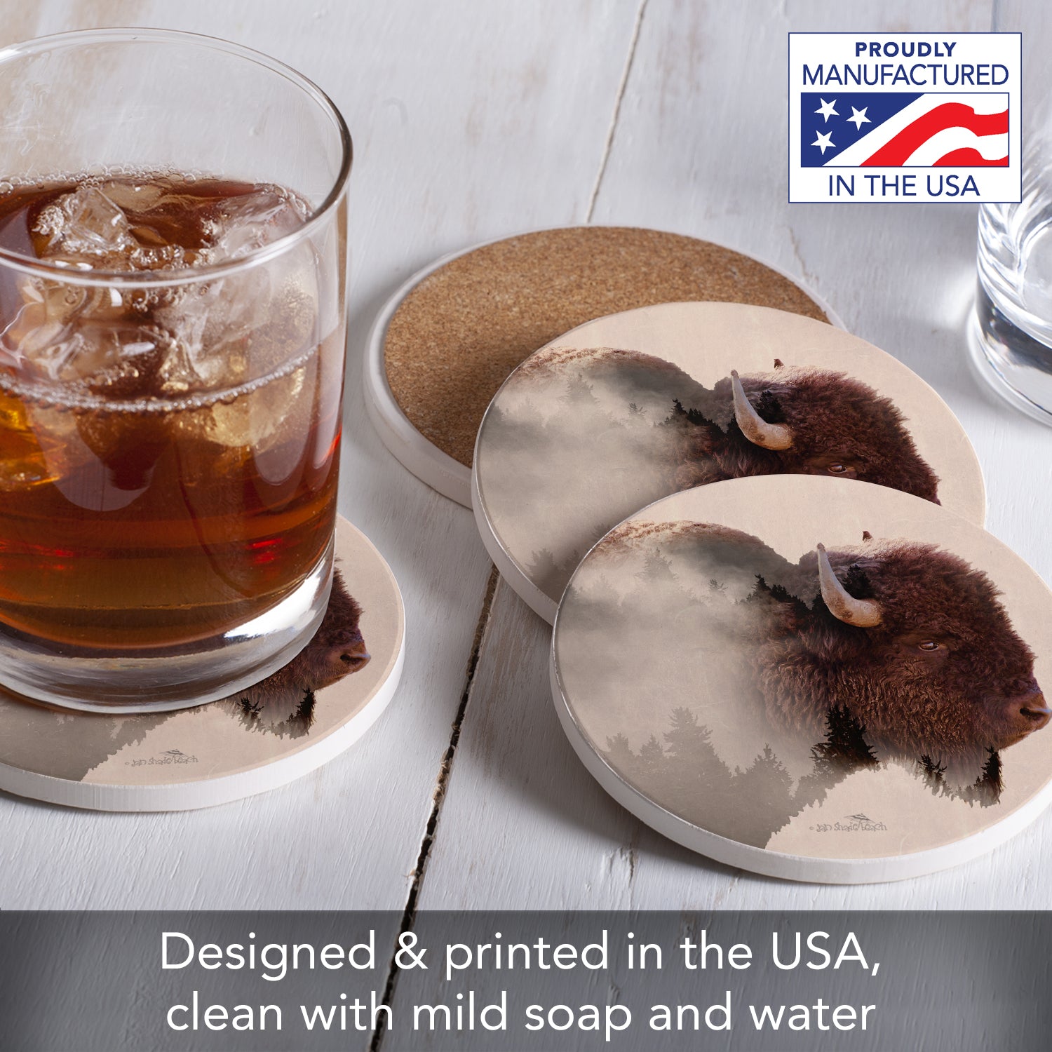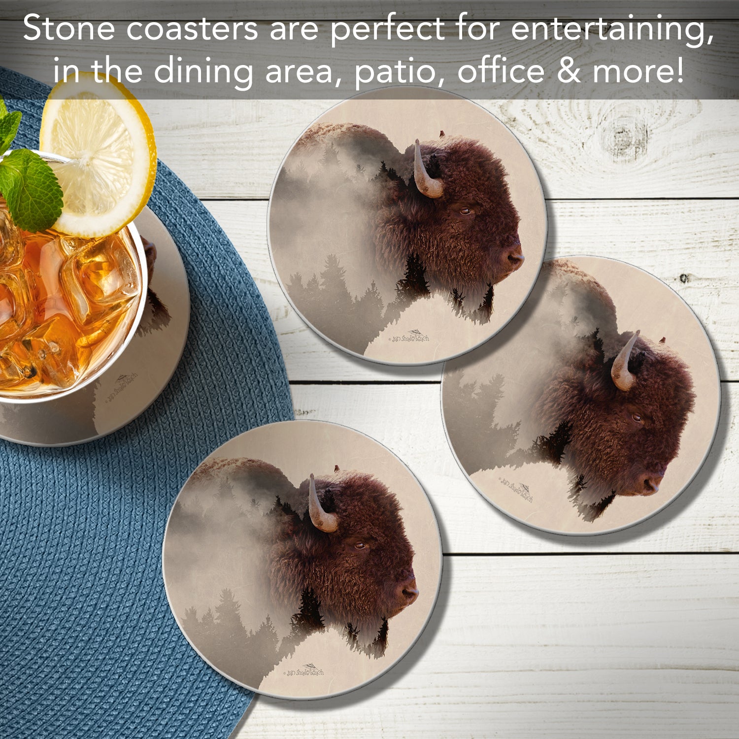 Thirstystone Buffalo Scene 4 Pack Round Absorbent Stone Coasters 4" Diameter Manufactured in the USA