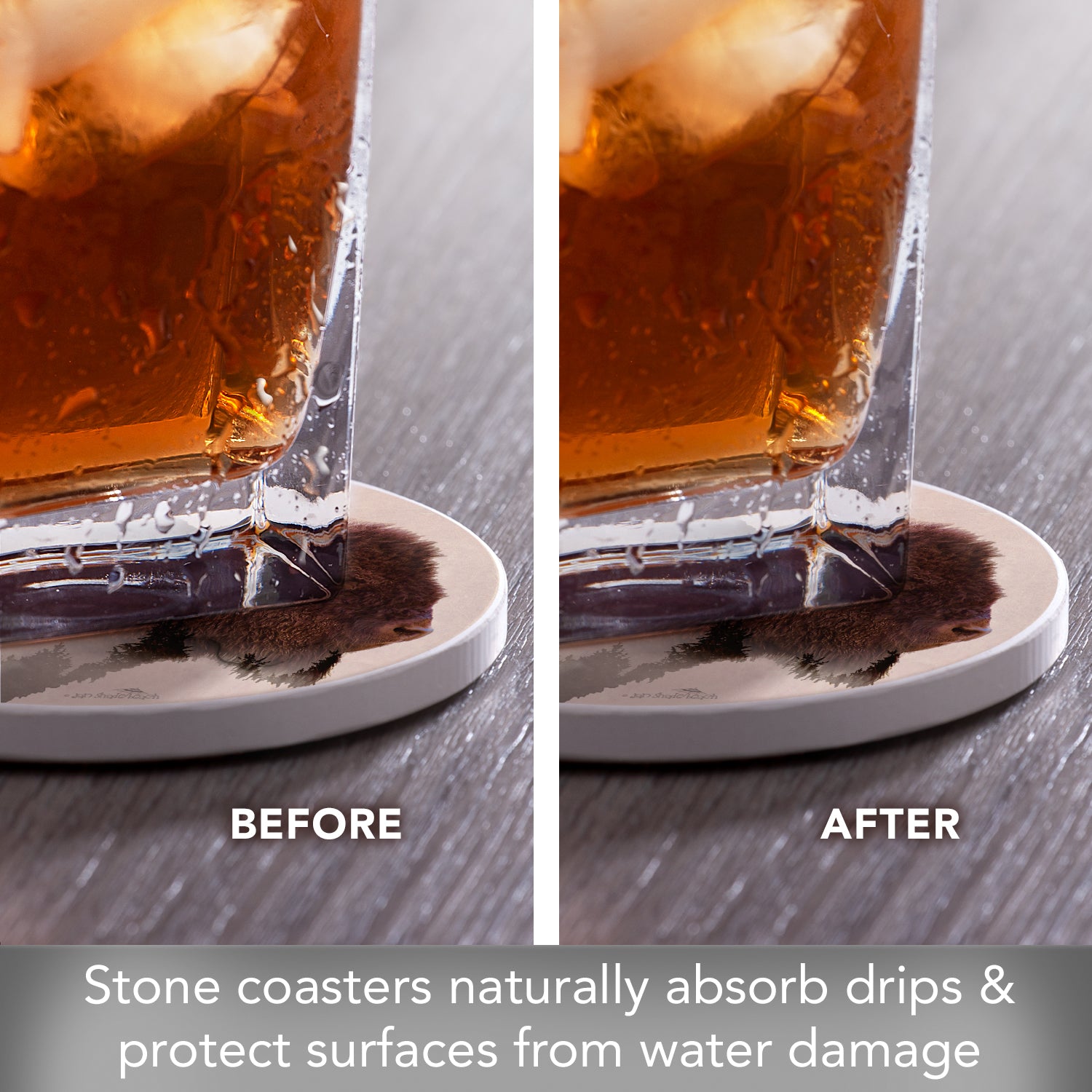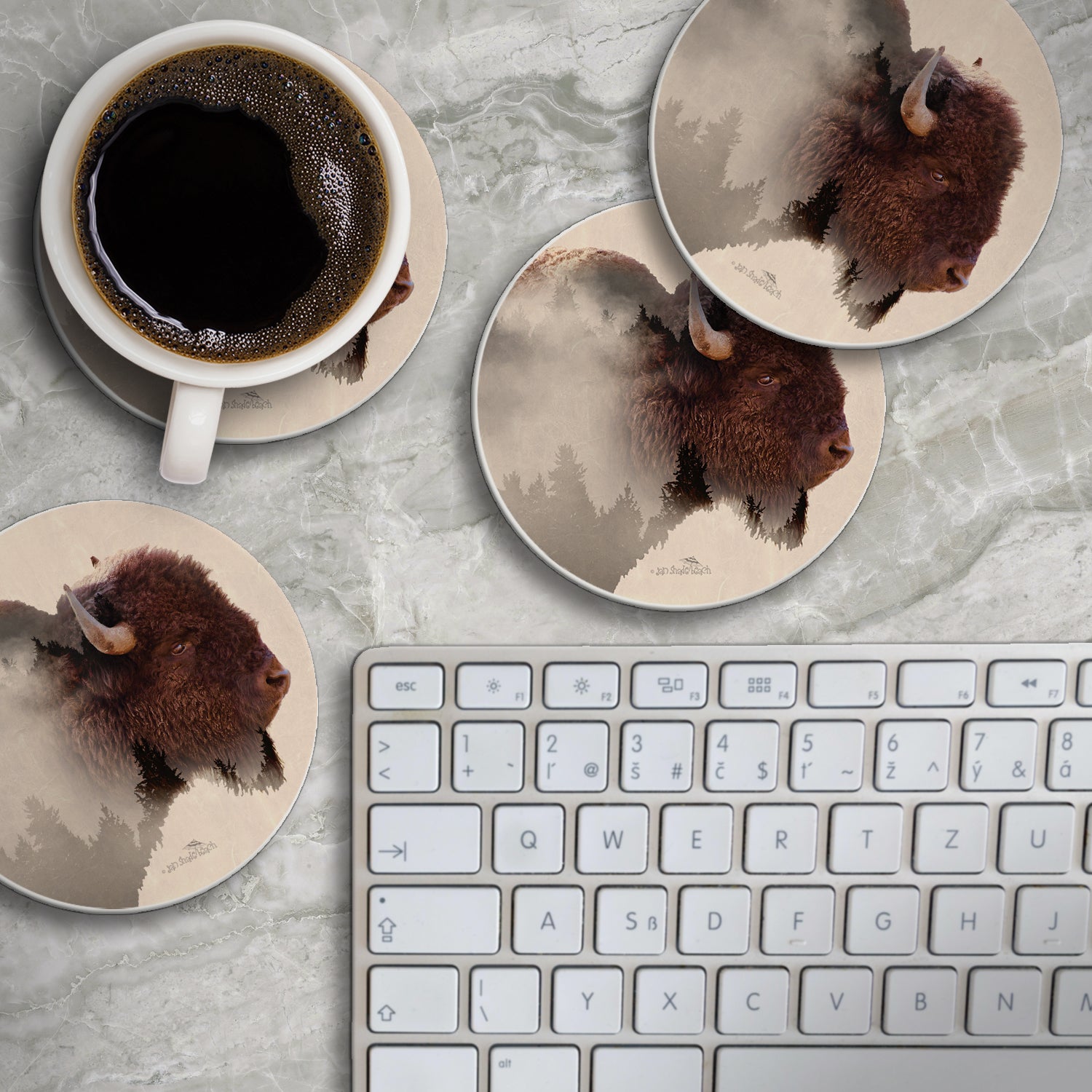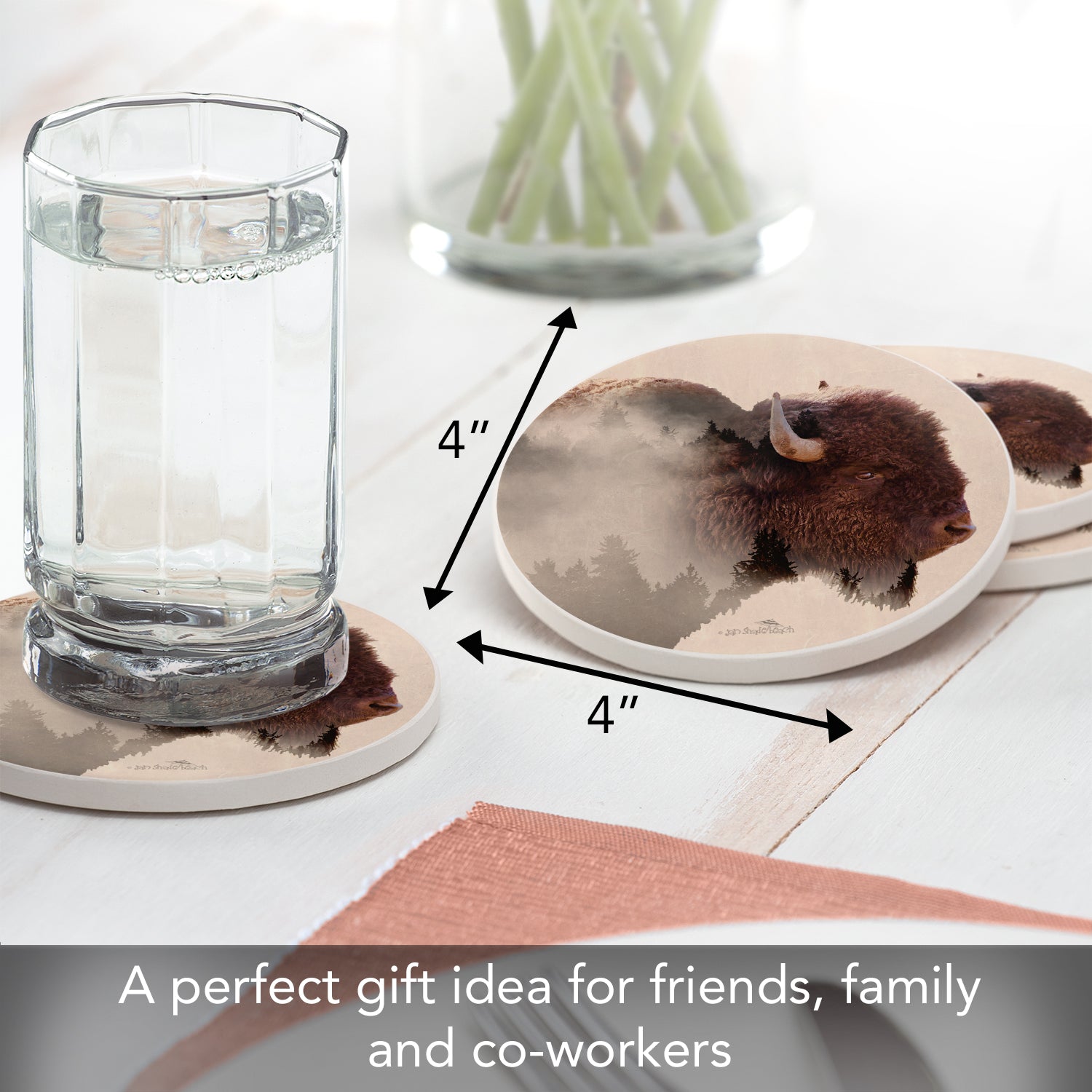 Thirstystone Buffalo Scene 4 Pack Round Absorbent Stone Coasters 4" Diameter Manufactured in the USA