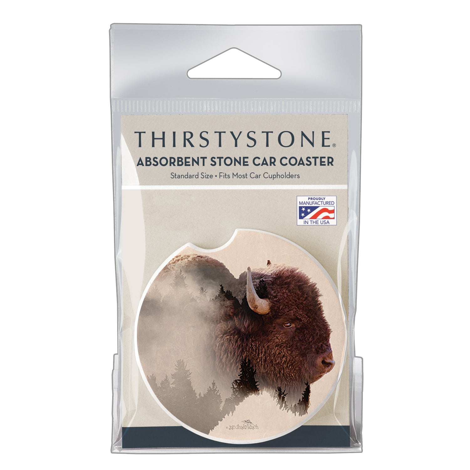 Thirstystone Buffalo Scene Single Absorbent Stone Car Coaster 2.6” Diameter Manufactured in the USA