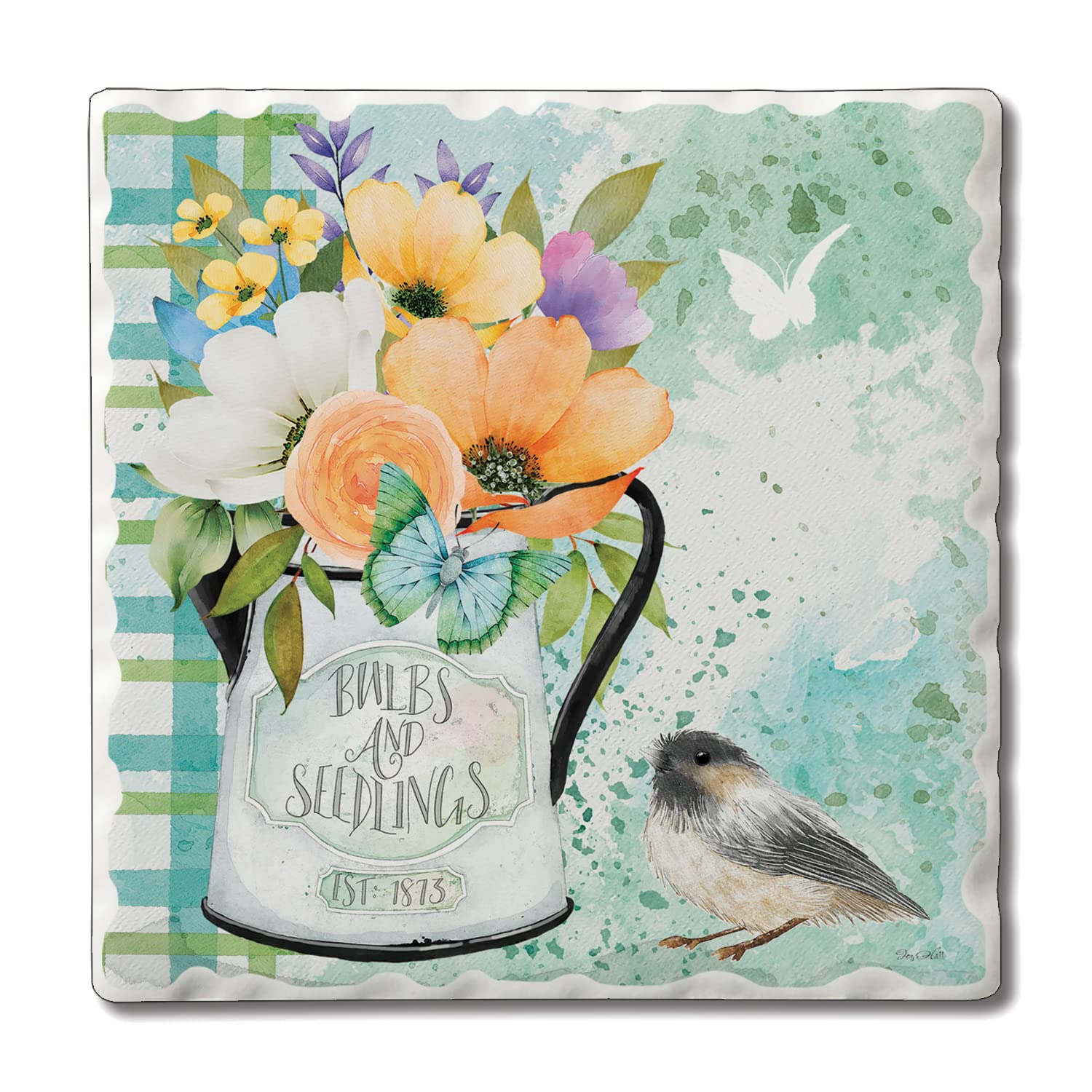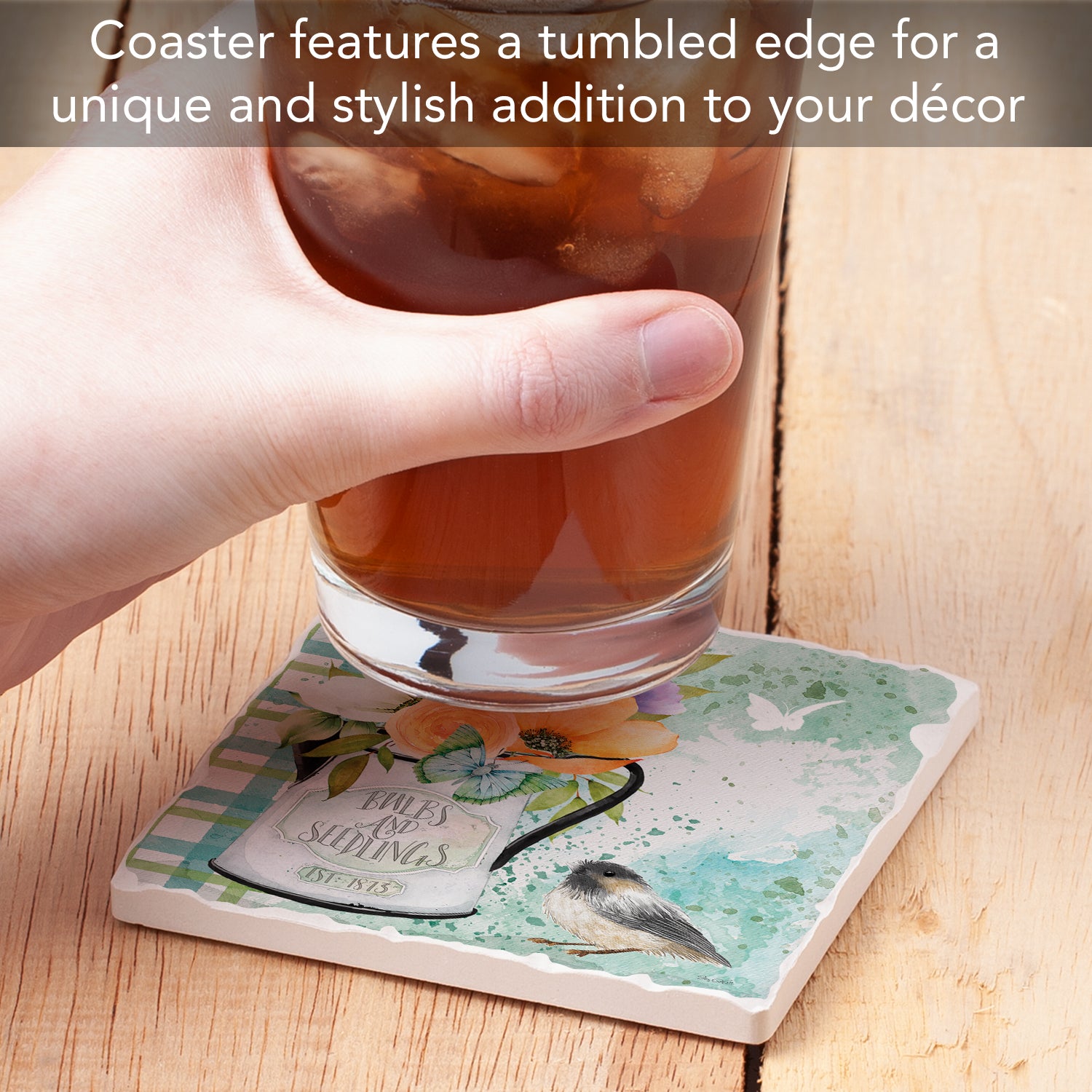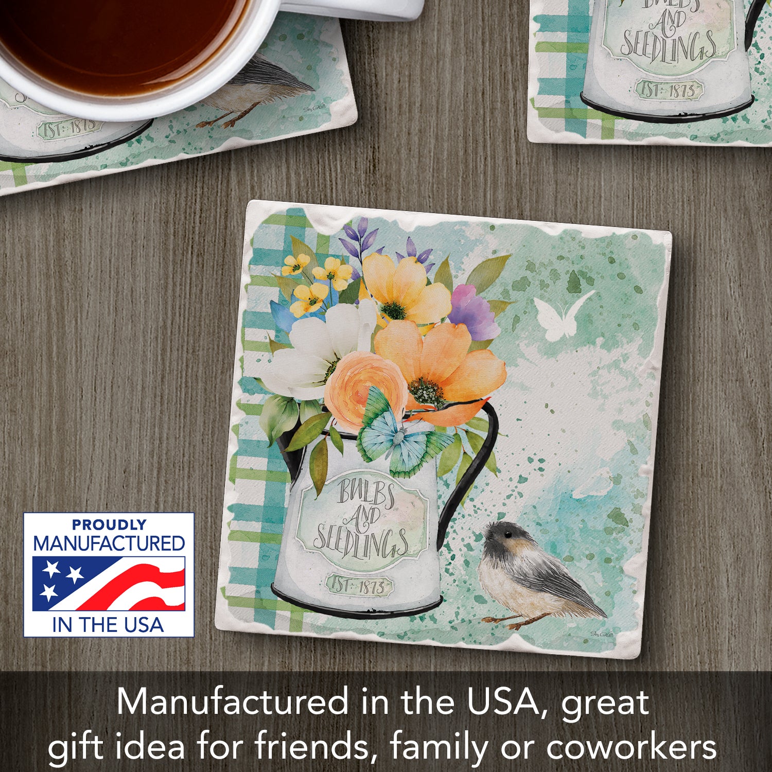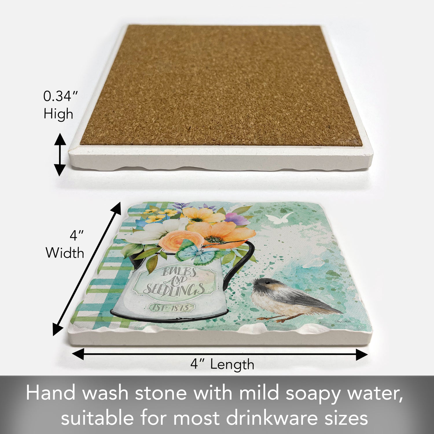 Thirstystone Bulbs & Seedlings Single Tumbled Tile Stone Coaster with Protective Cork Backing Manufactured in The USA 4" Square