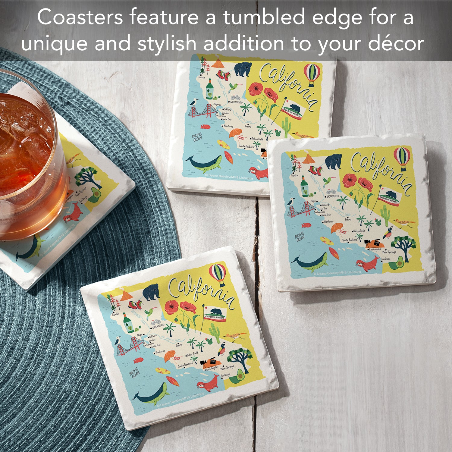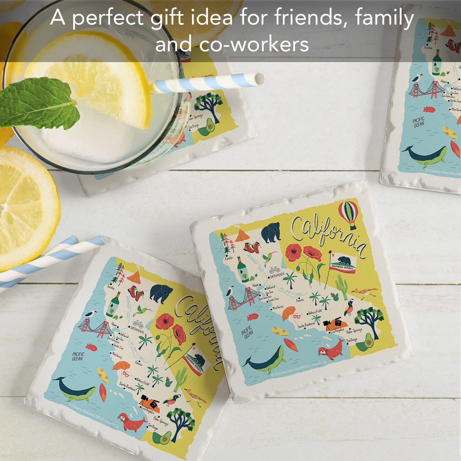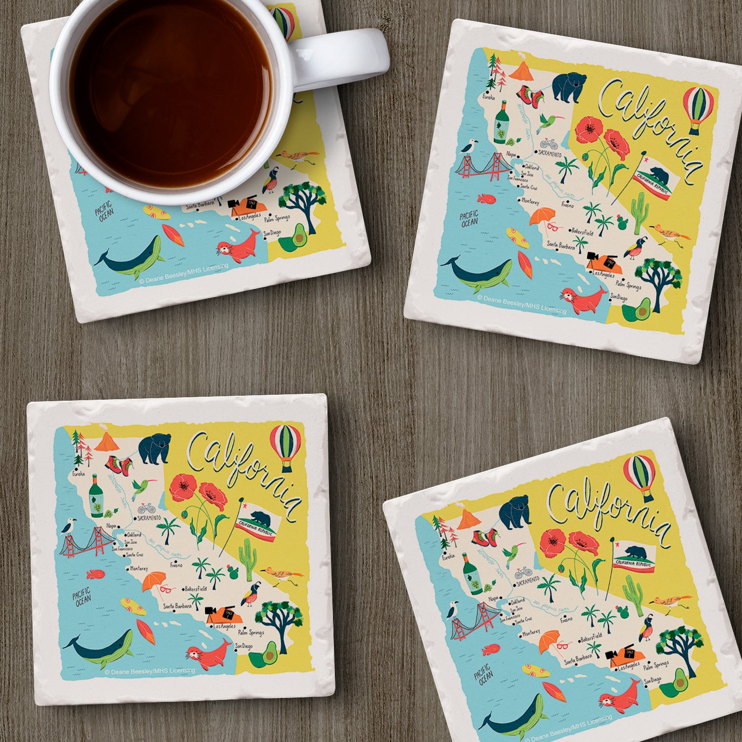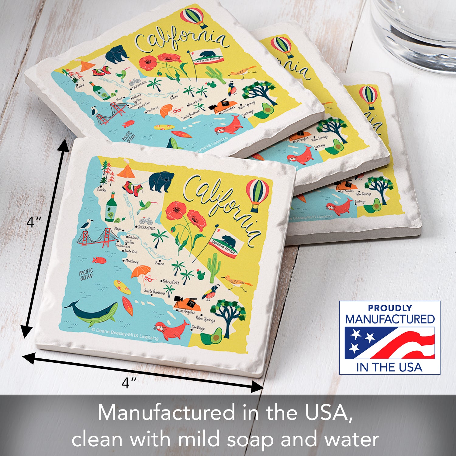 Thirstystone California Home State 4 Pack Tumbled Tile Stone Coasters 4" Square Manufactured in the USA