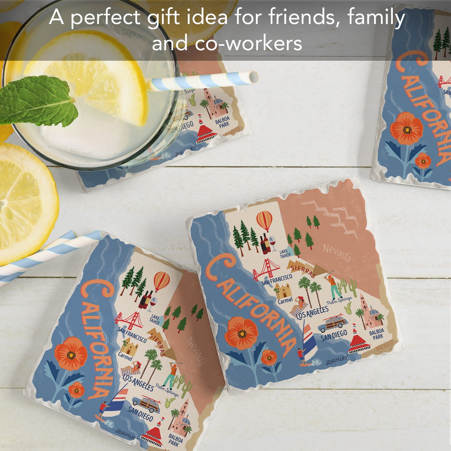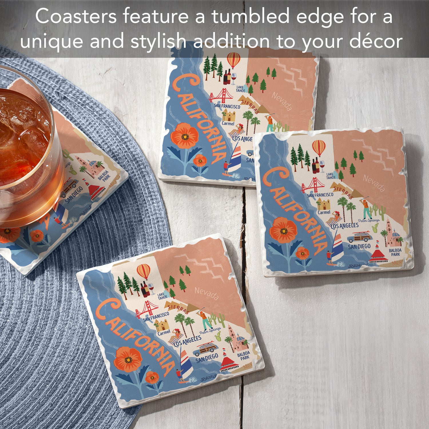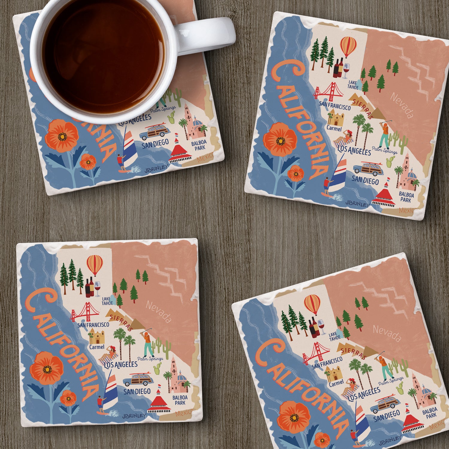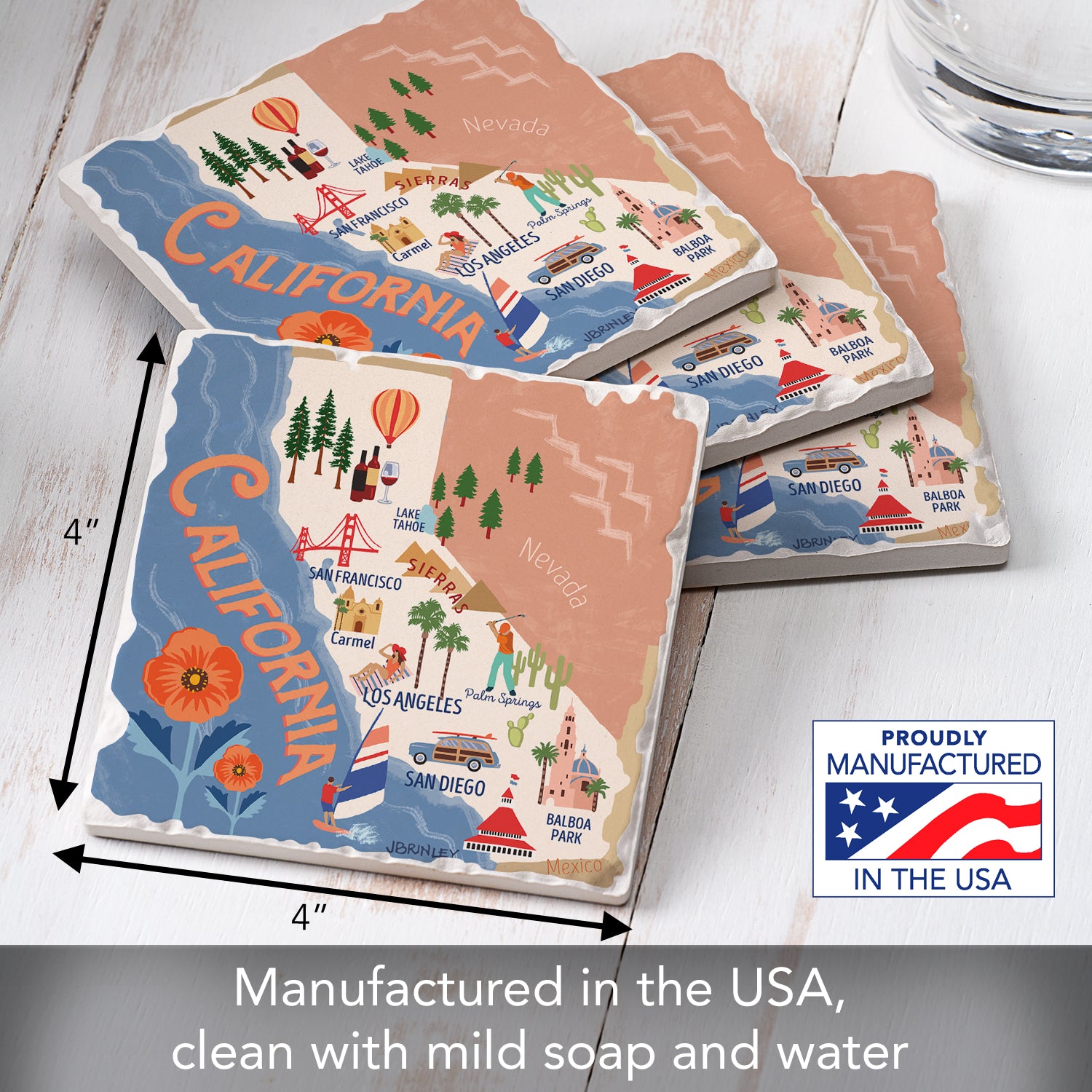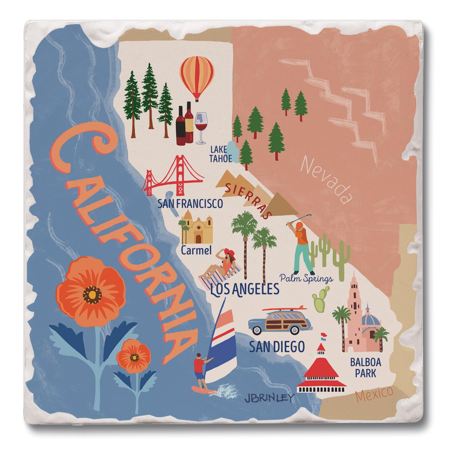 Thirstystone California State Attractions 4 Pack Tumbled Tile Stone Coasters 4” Square Manufactured in the USA