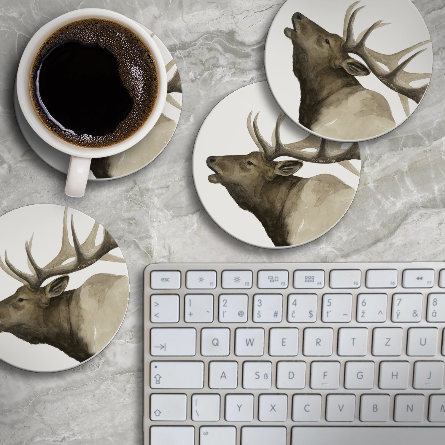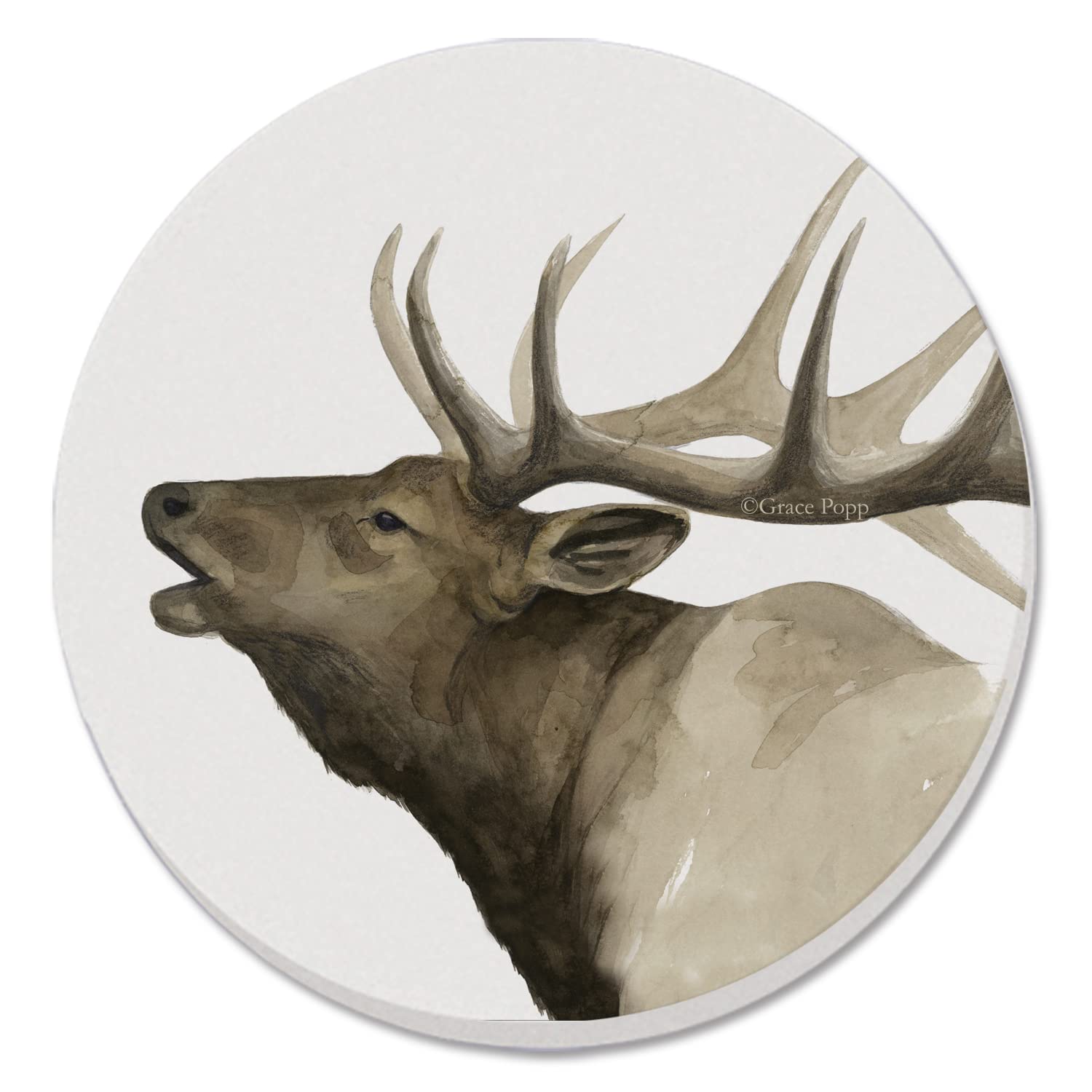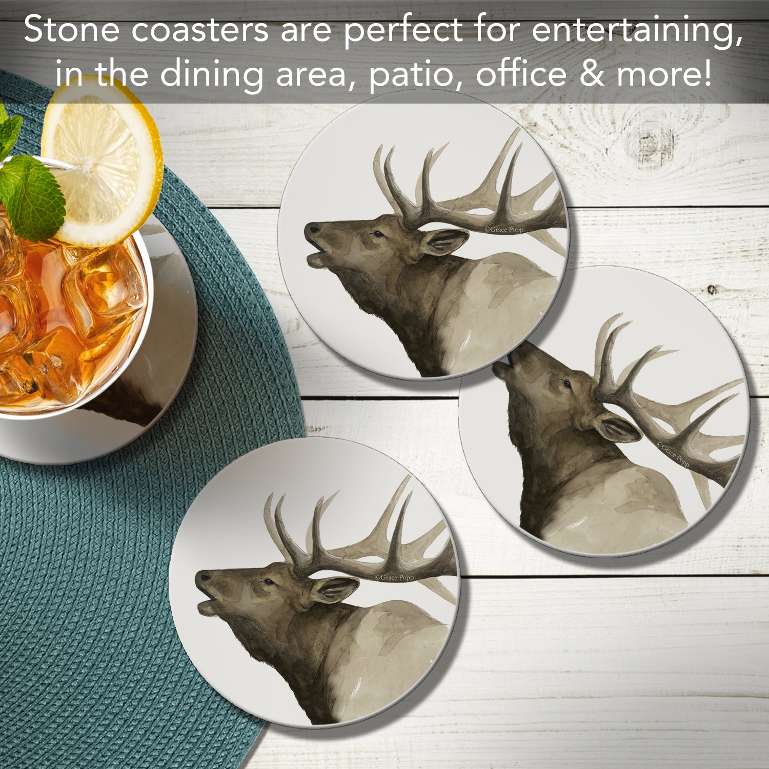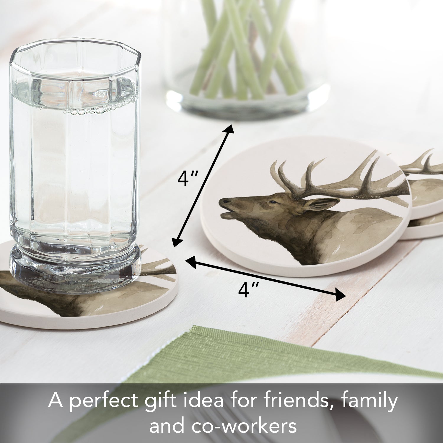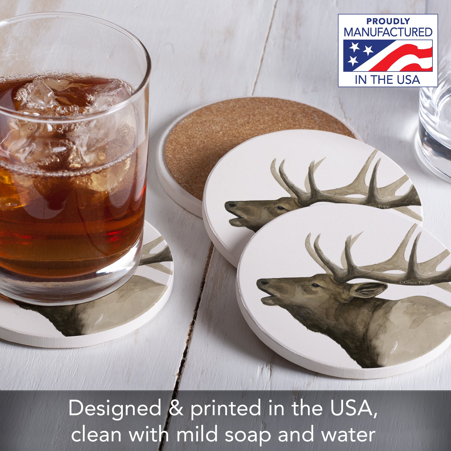 Thirstystone Call of The Elk 4 Pack Round Absorbent Stone Coasters 4" Diameter Manufactured in the USA