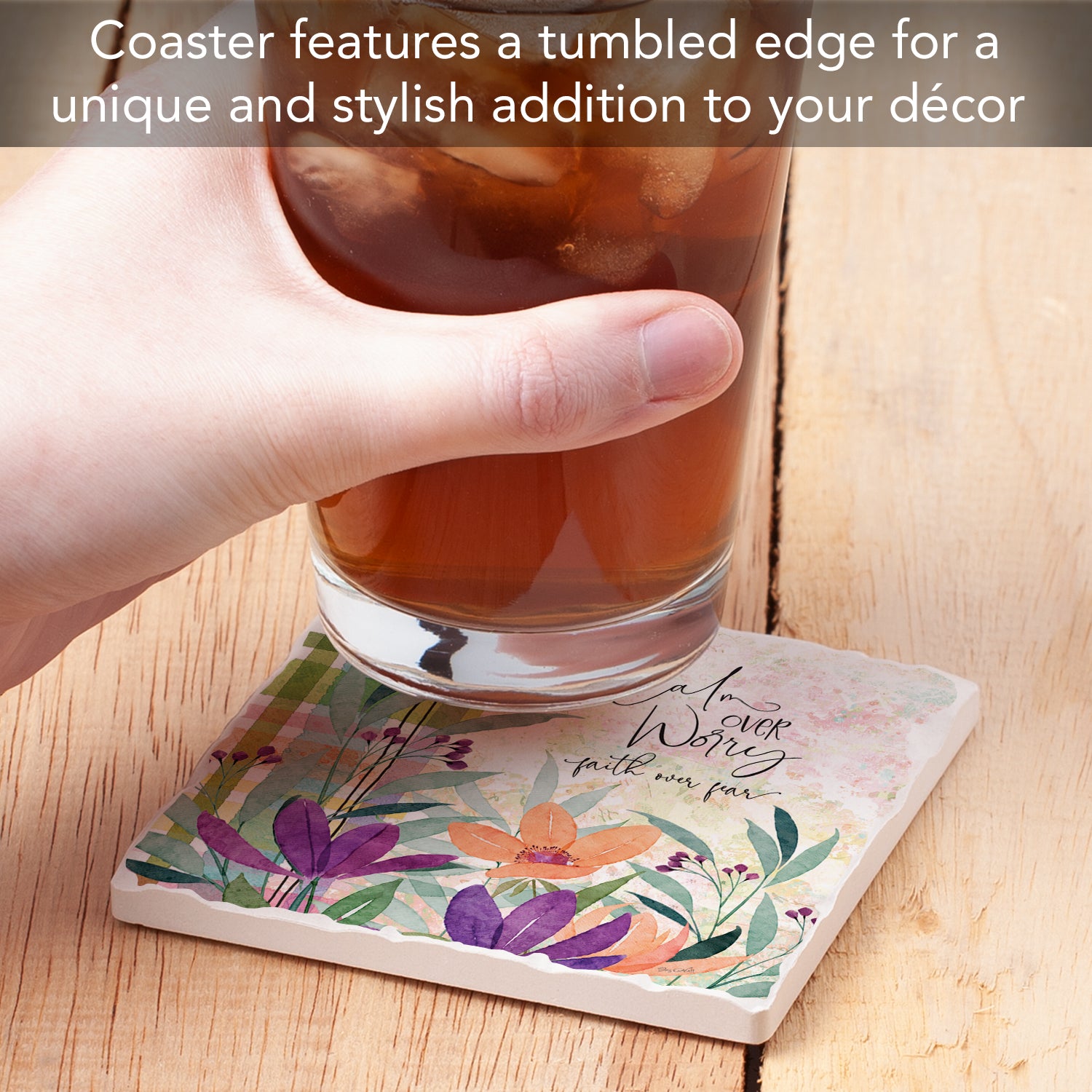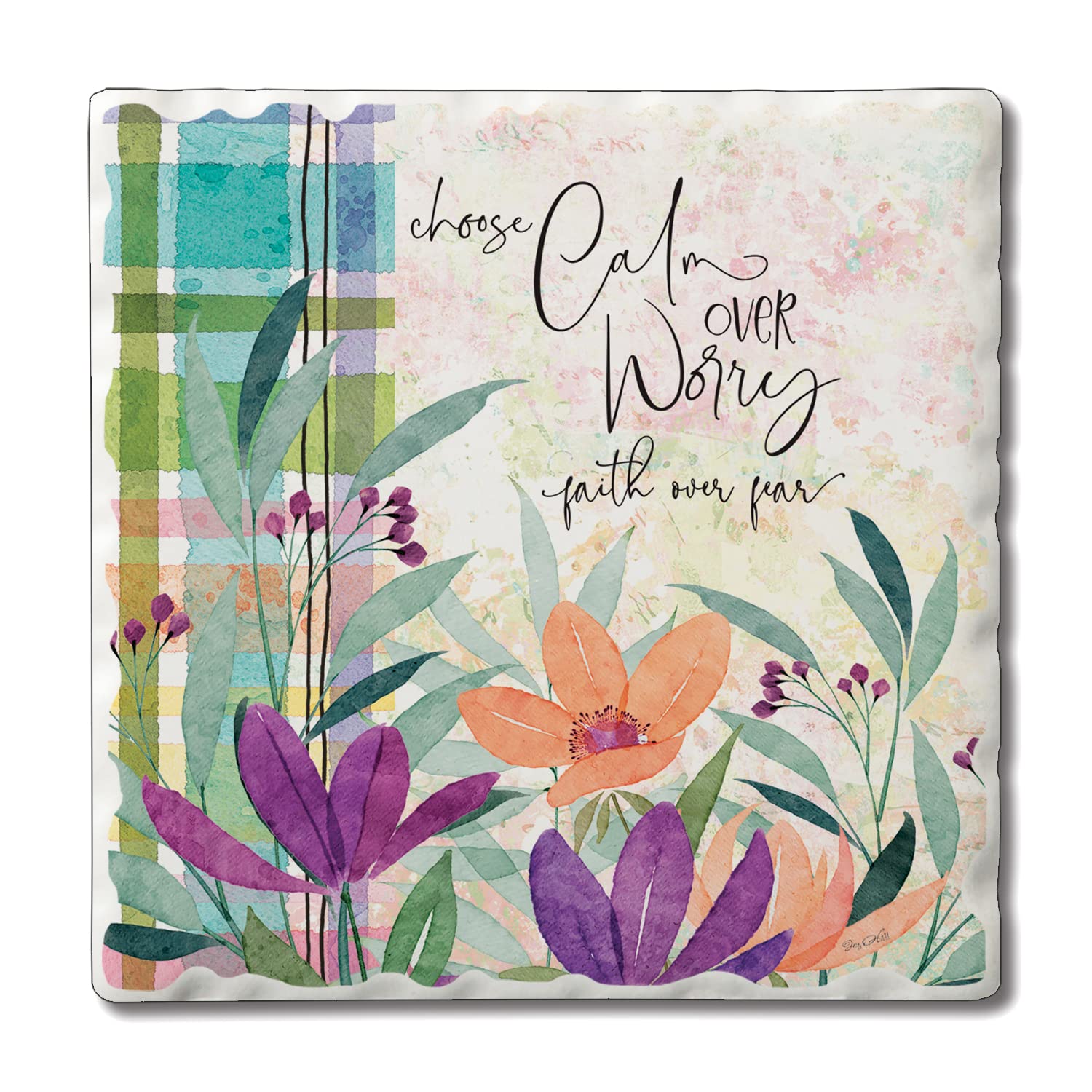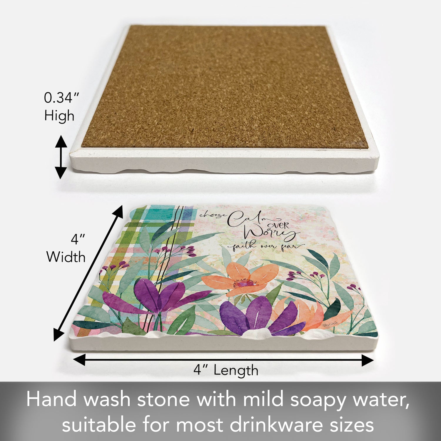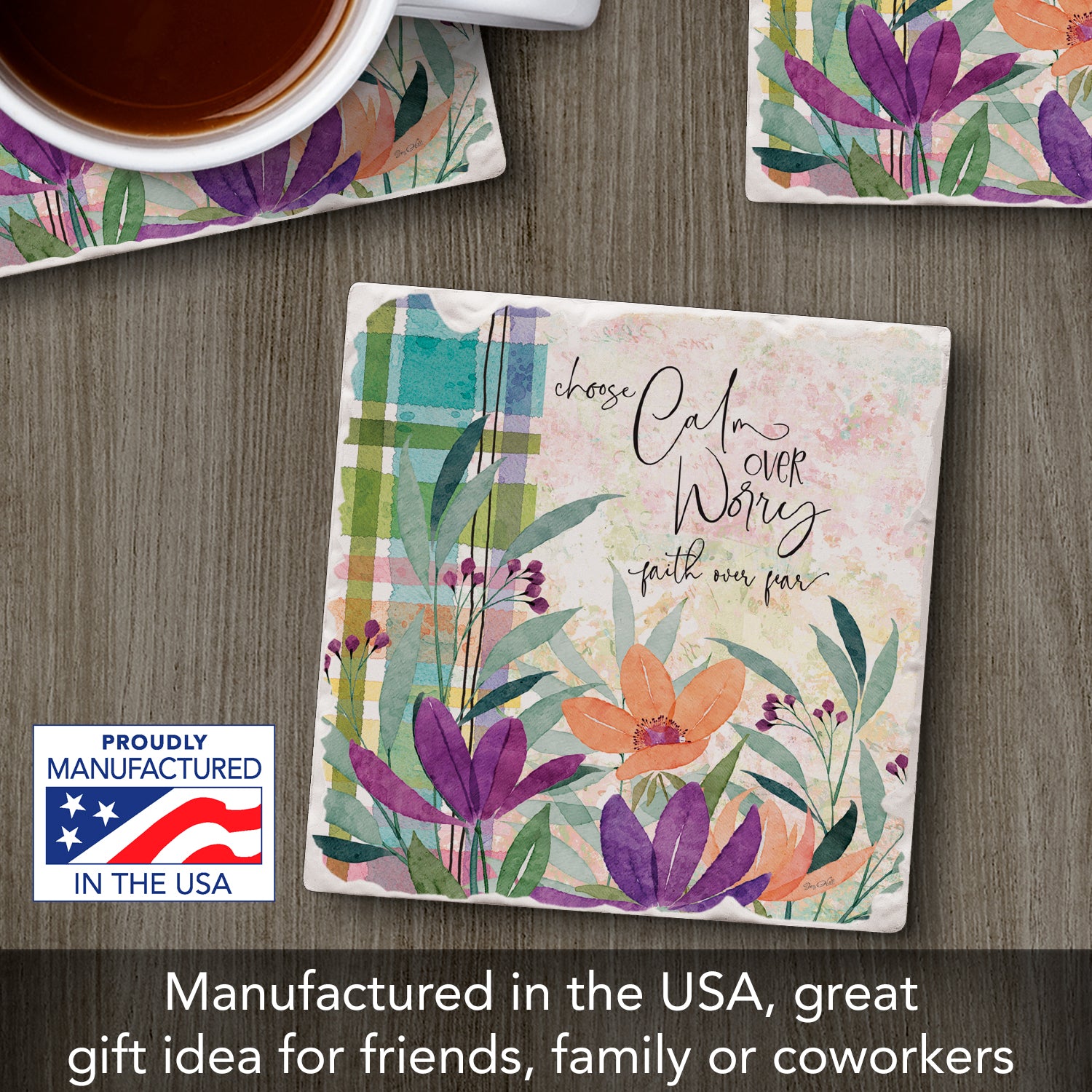 Thirstystone Calm Over Worry Single Tumbled Tile Stone Coaster with Protective Cork Backing Manufactured in The USA 4" Square