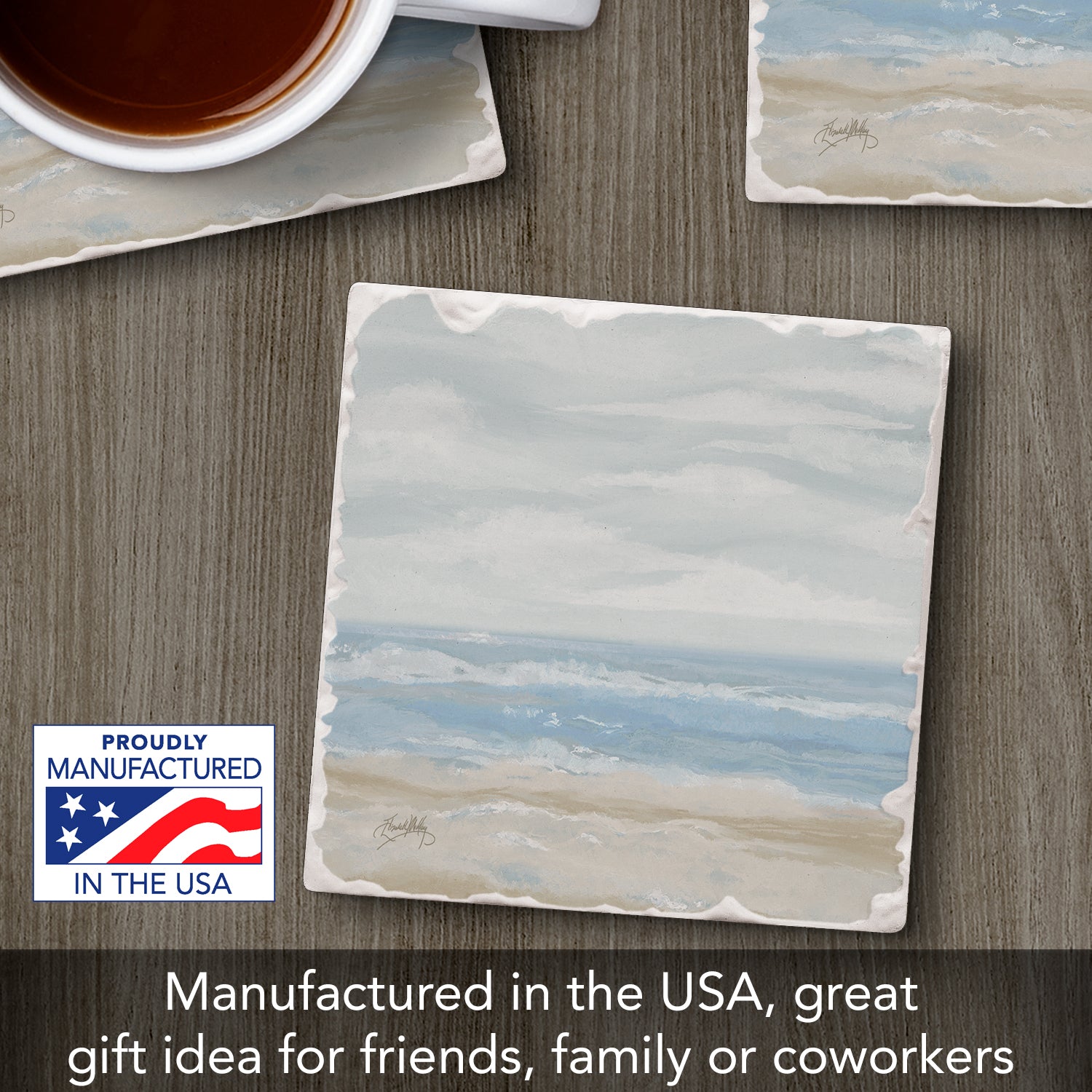 Thirstystone Calm Sea Single Tumbled Tile Stone Coaster with Protective Cork Backing Manufactured in The USA 4" Square, Colorful, Artistiic, Easily Wipes Clean