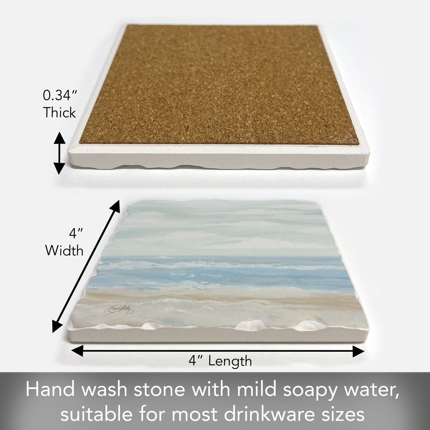 - ARTISTIC DESIGN-Beautiful artistic design allows the Coaster to remain displayed even when not in use. Each Coaster measures 4†x 4†x .25â€. Sized to fit larger Mugs & Glasses.