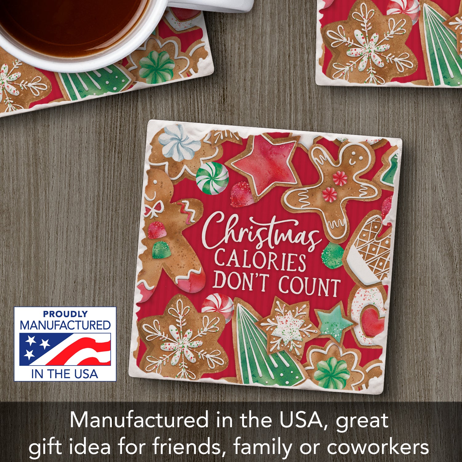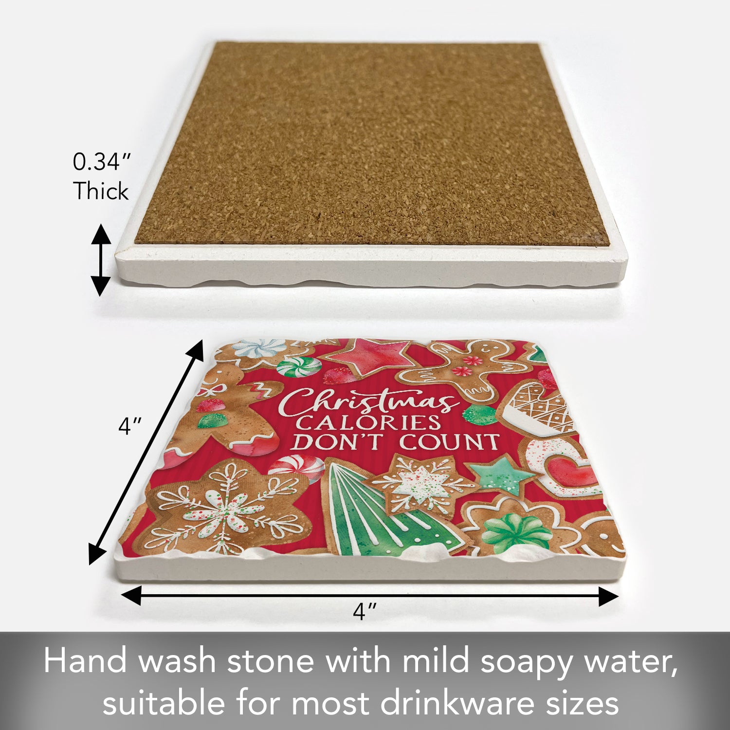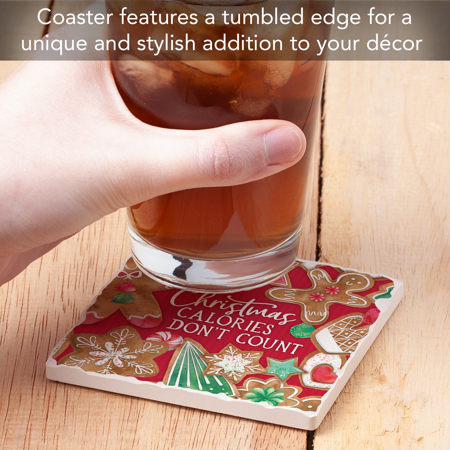 Thirstystone Calories Don't Count Single Tumbled Tile Stone Coaster with Protective Cork Backing Manufactured in The USA 4" Square, Artistic, Easily Wipes Clean
