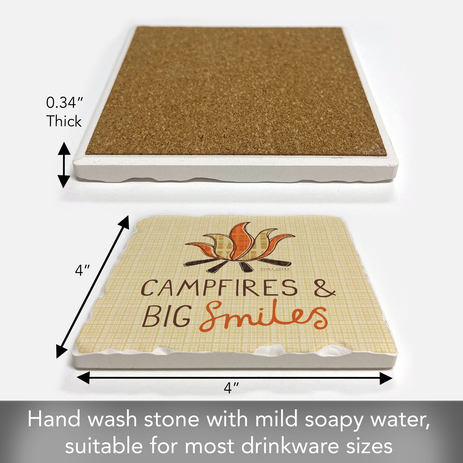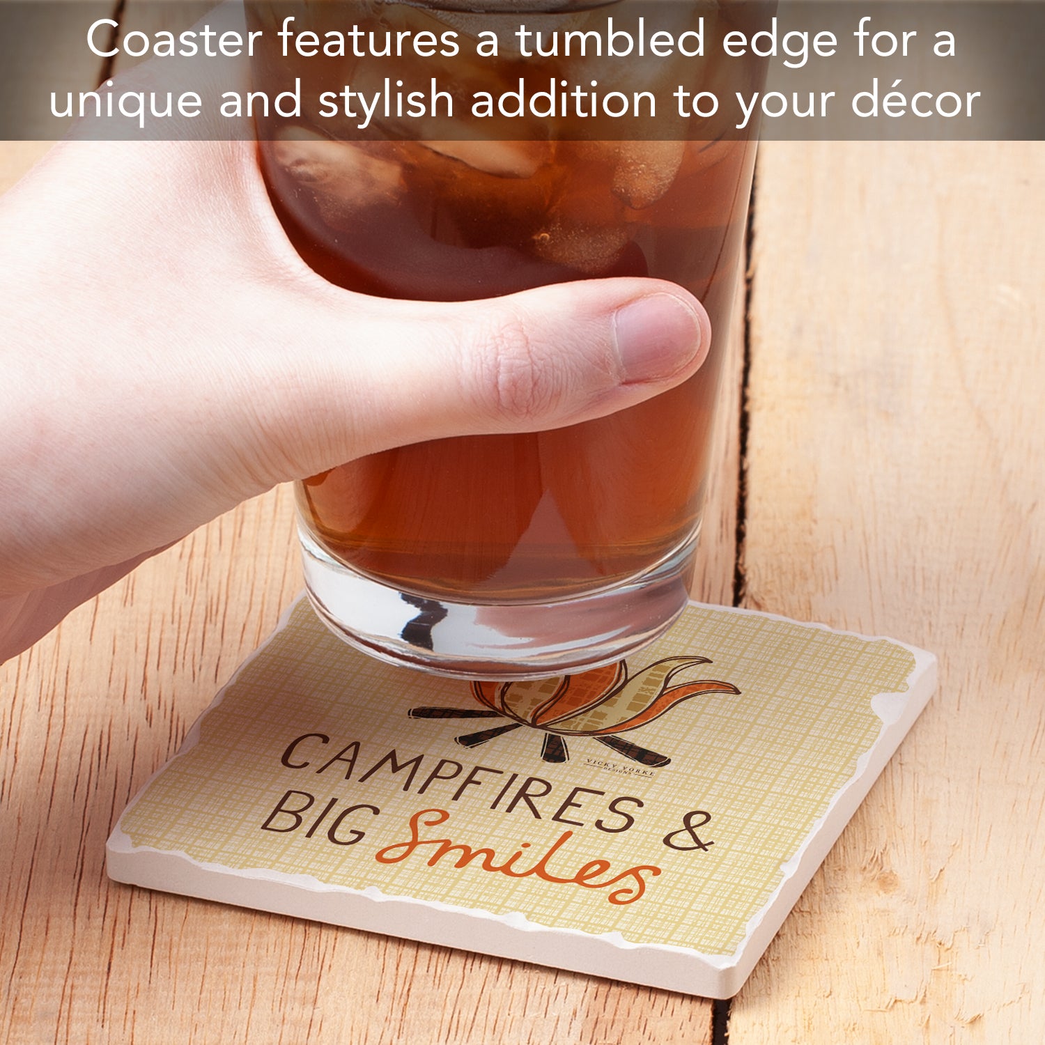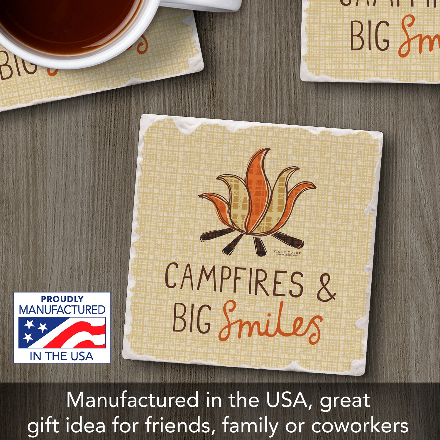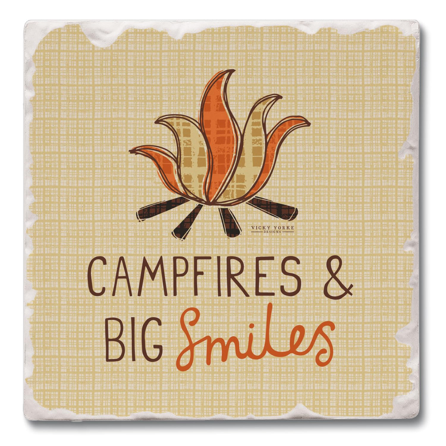 Thirstystone Campfire Smiles Single Tumbled Tile Stone Coaster with Protective Cork Backing Manufactured in The USA 4" Square, Artistic, Easily Wipes Clean