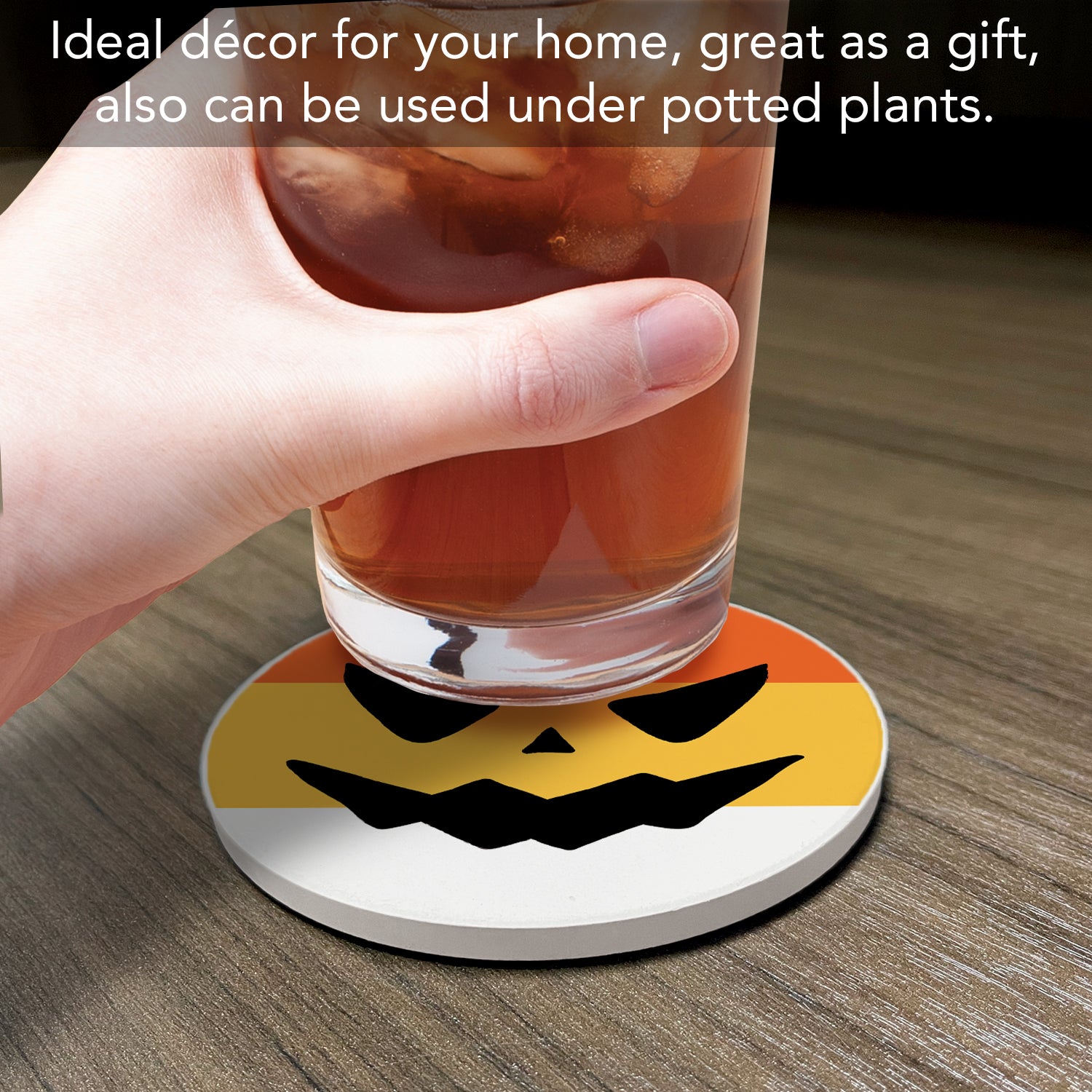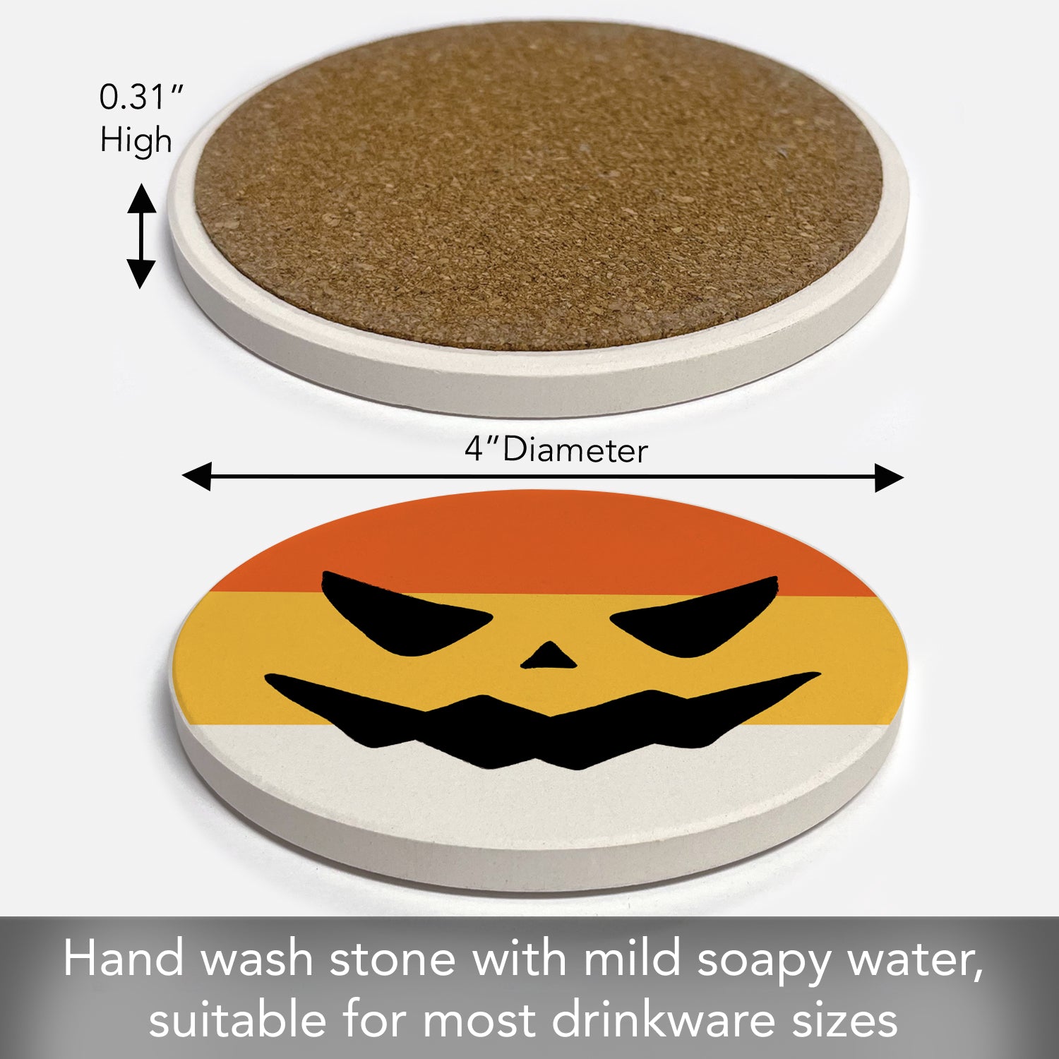 Thirstystone Candy Corn Jack-O-Lantern Round Absorbent Stone Coaster with Protective Cork Backing Manufactured in The USA 4" Diameter
