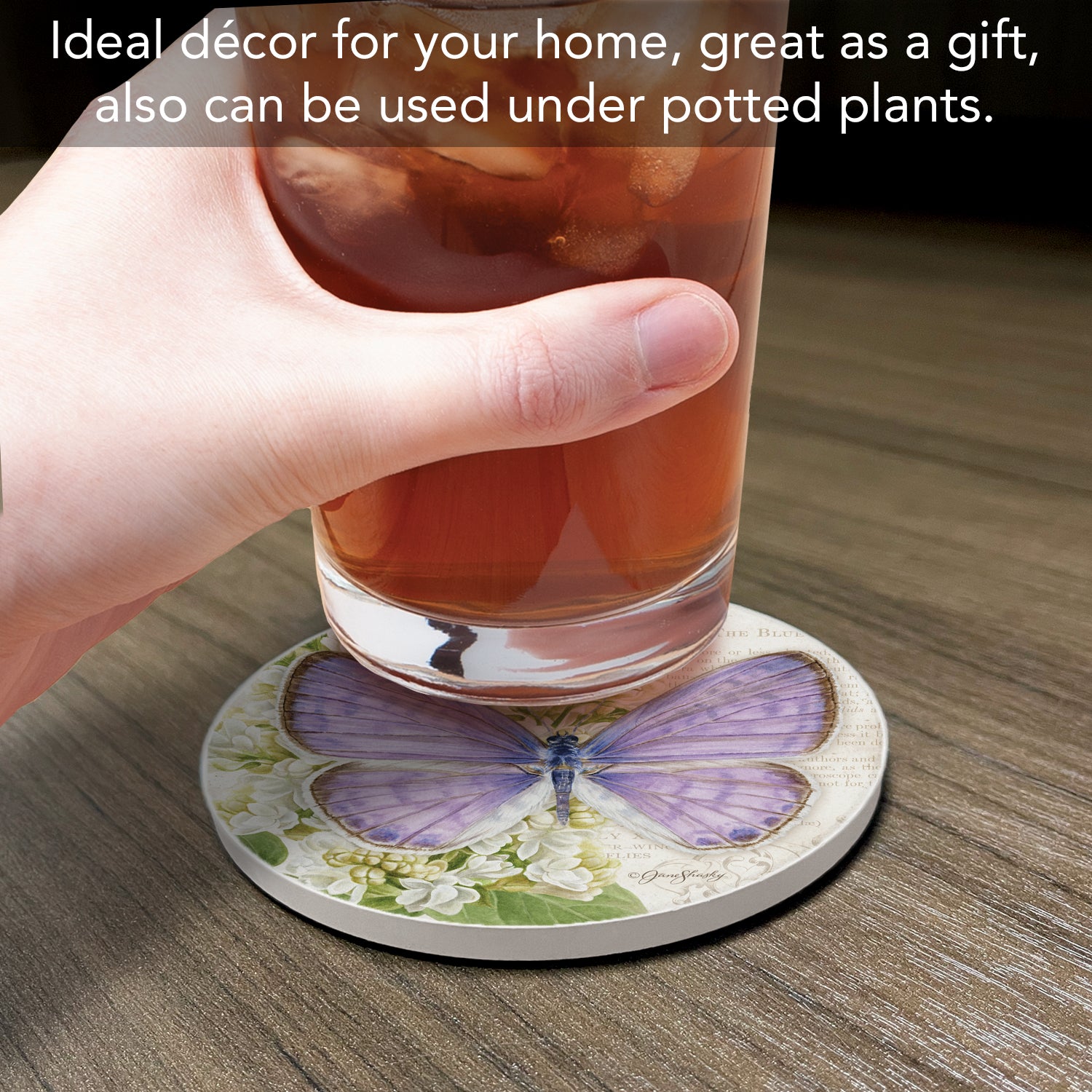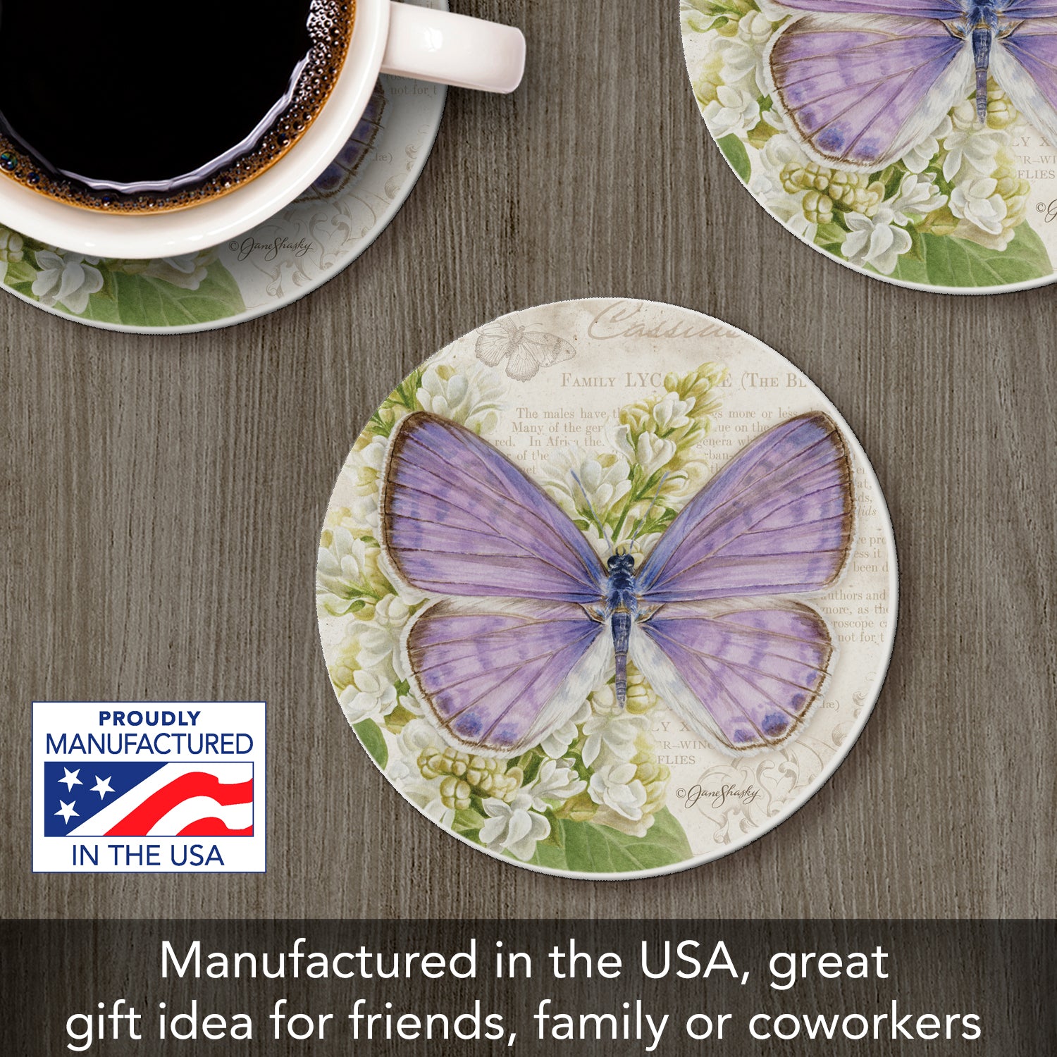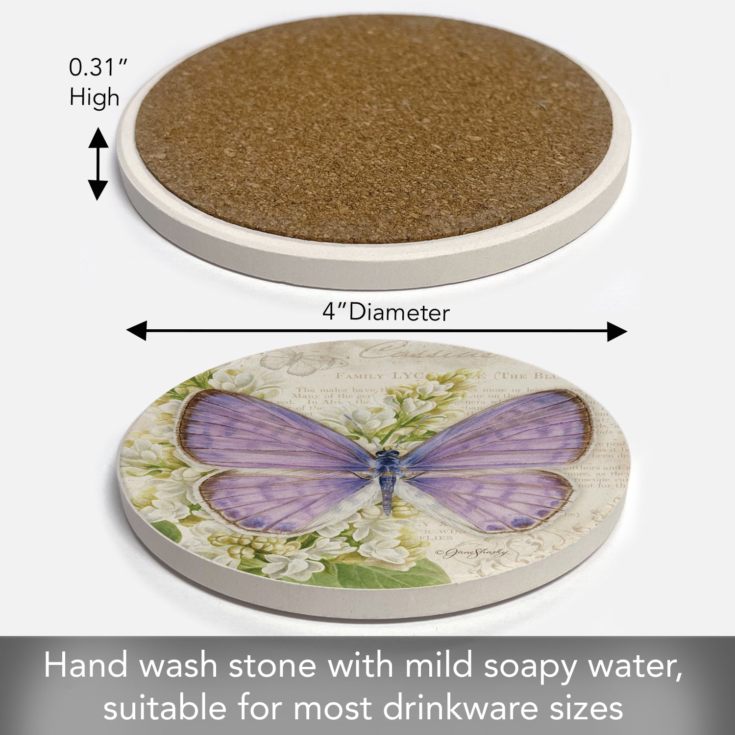 Thirstystone Cassius Blue Butterfly Single Round Stone Coaster 4" Diameter Create Your Own Collection