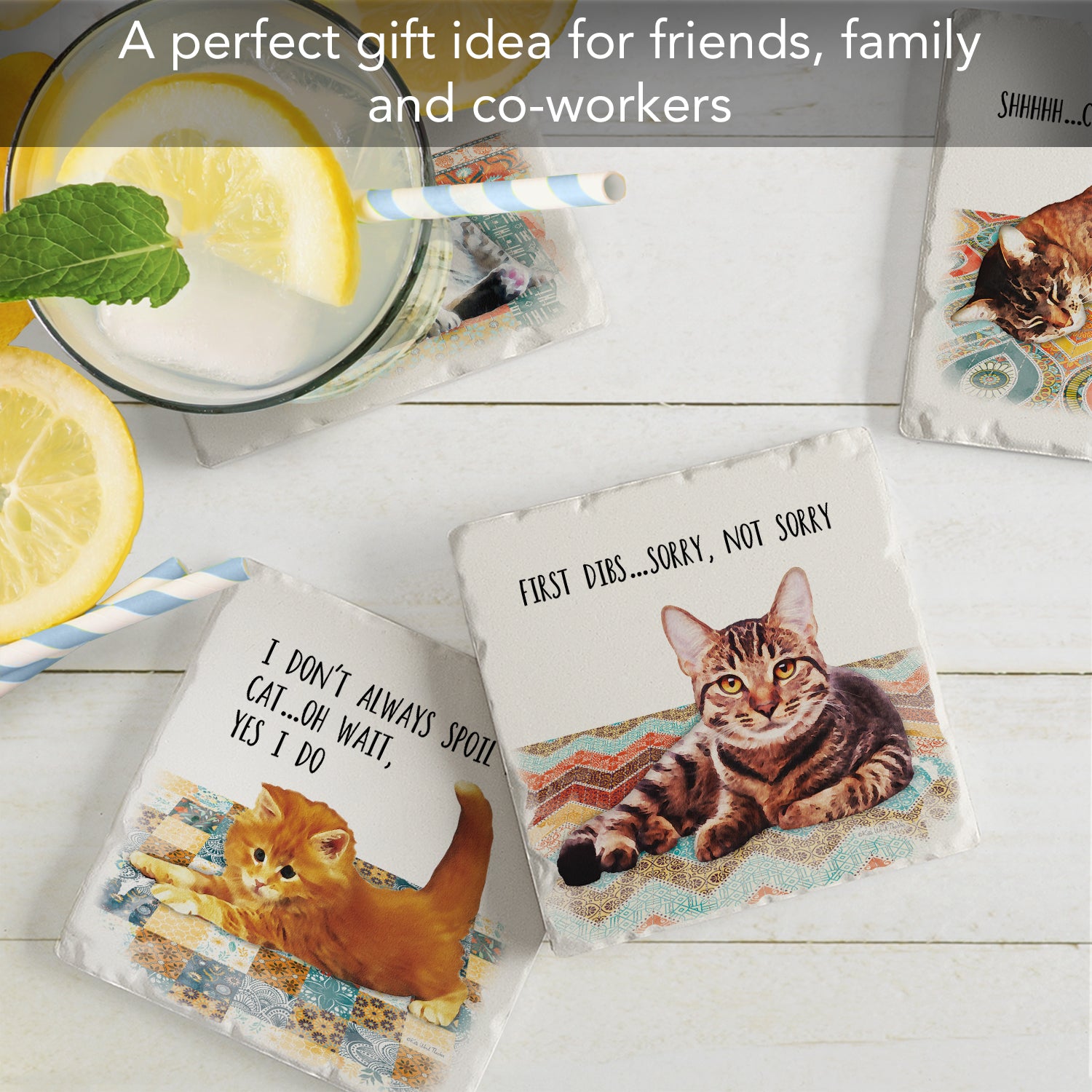 Thirstystone Cat Nappy 4-Pack Tumbled Tile Stone Coasters 4" Square