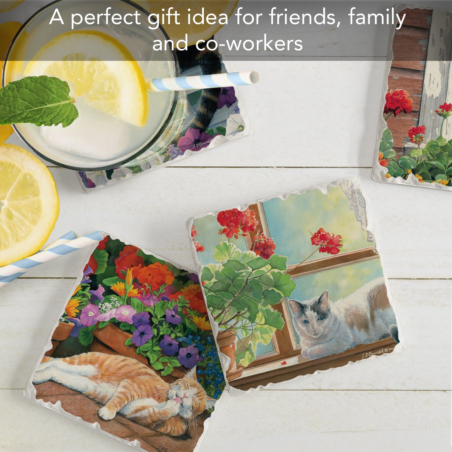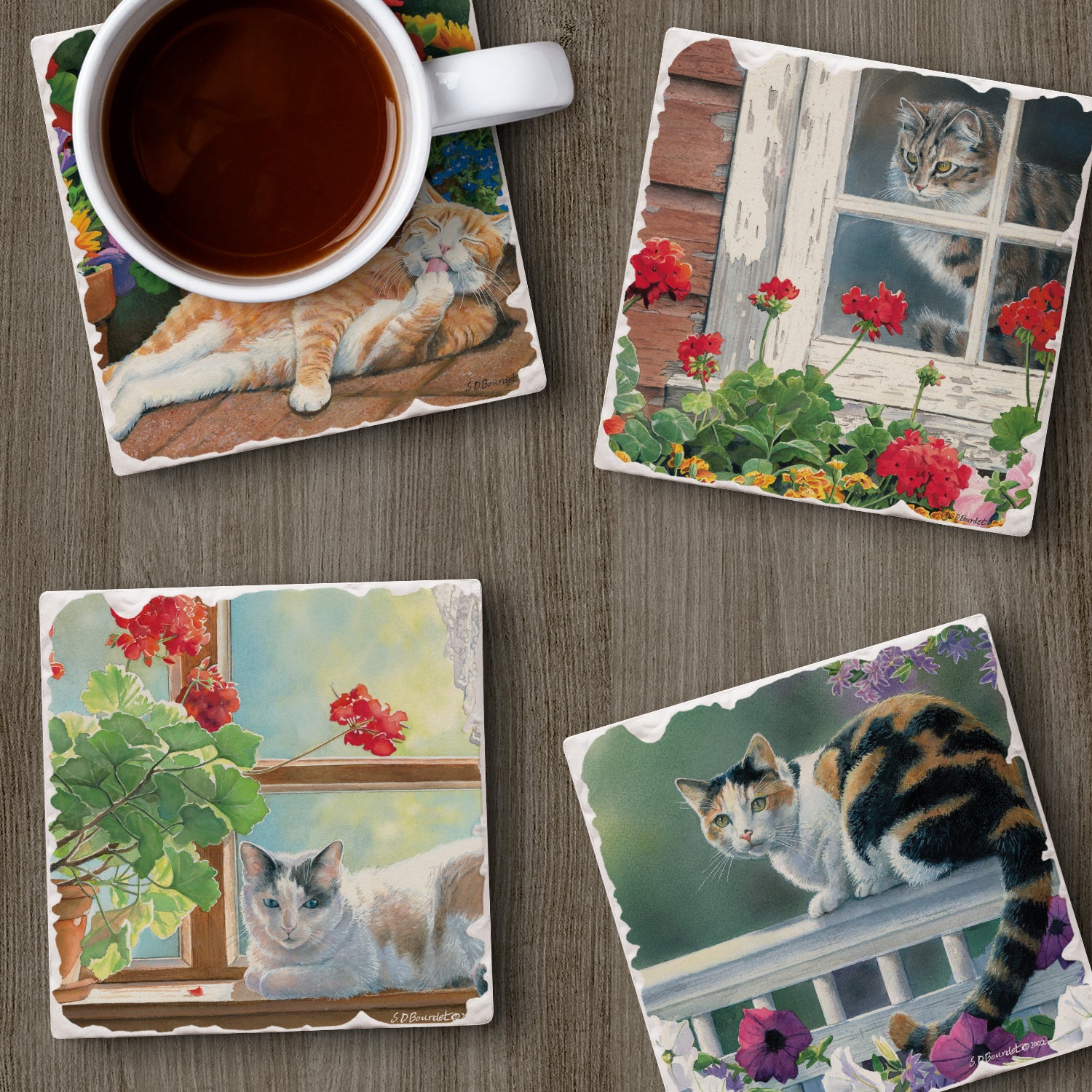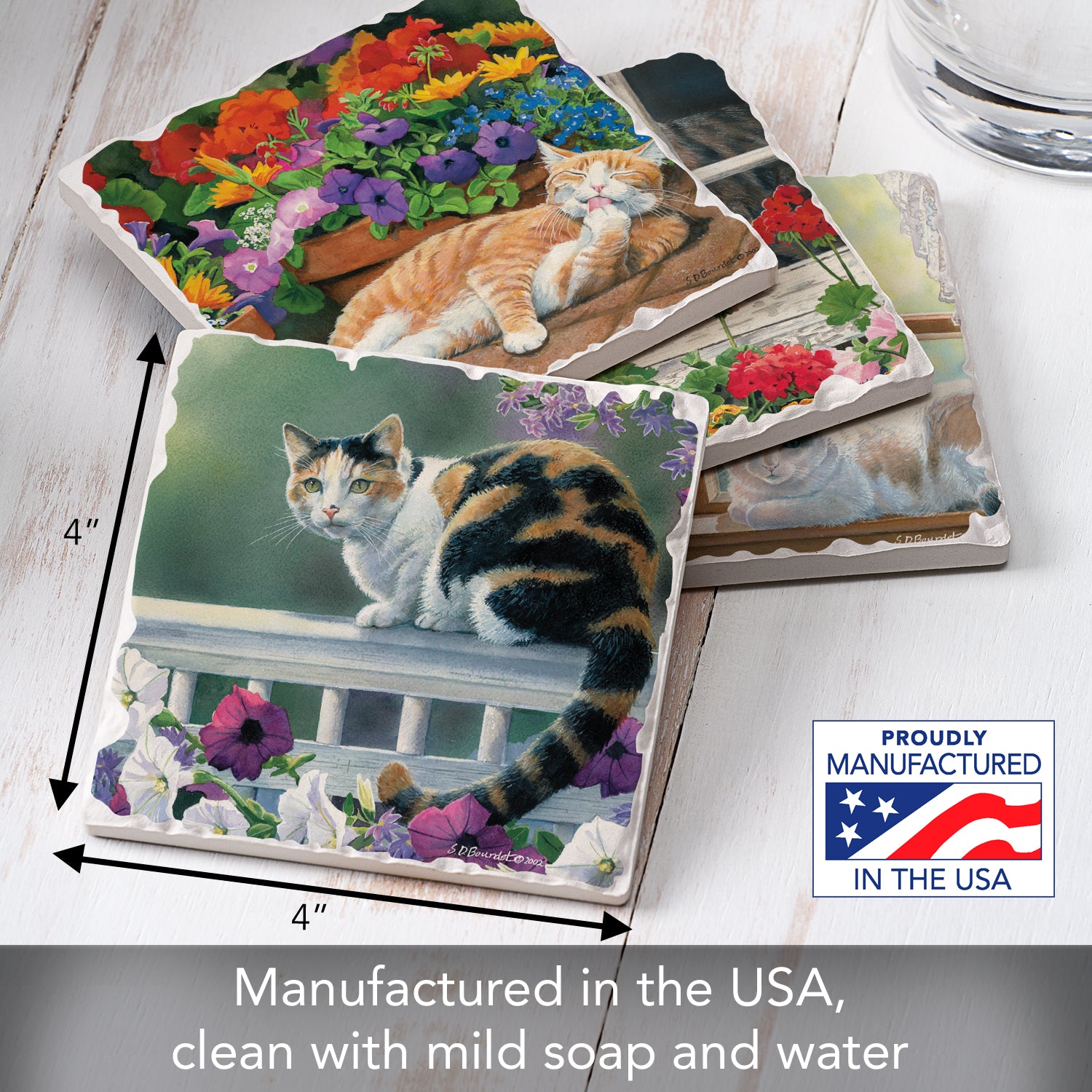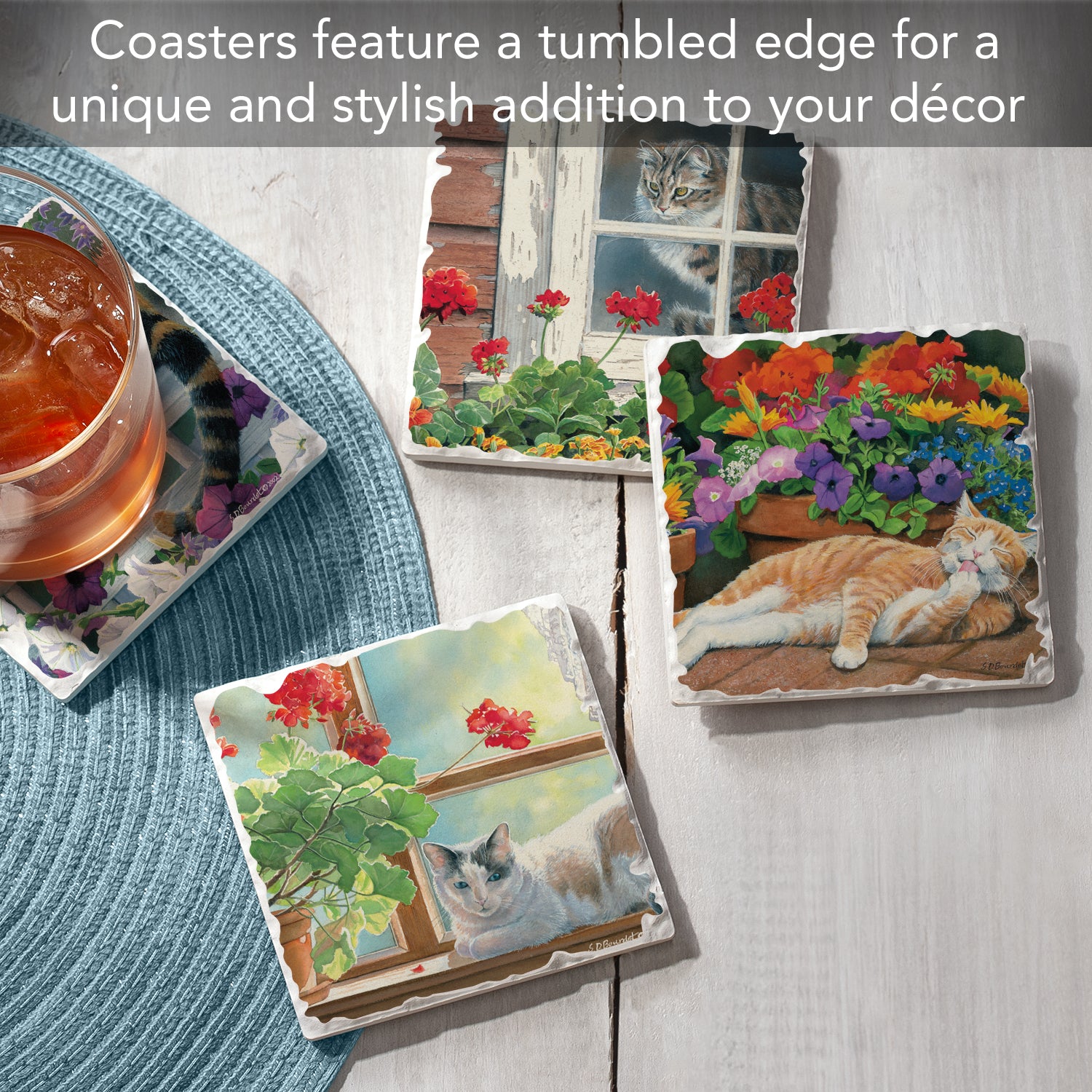 Thirstystone Cats Lazy Day 4-Pack Tumbled Tile Stone Coasters 4" Square