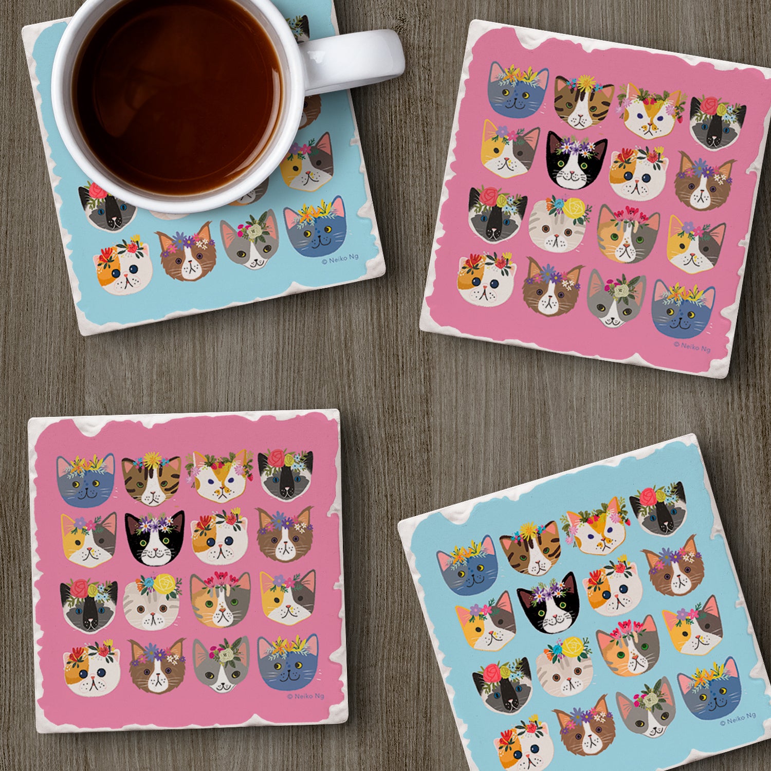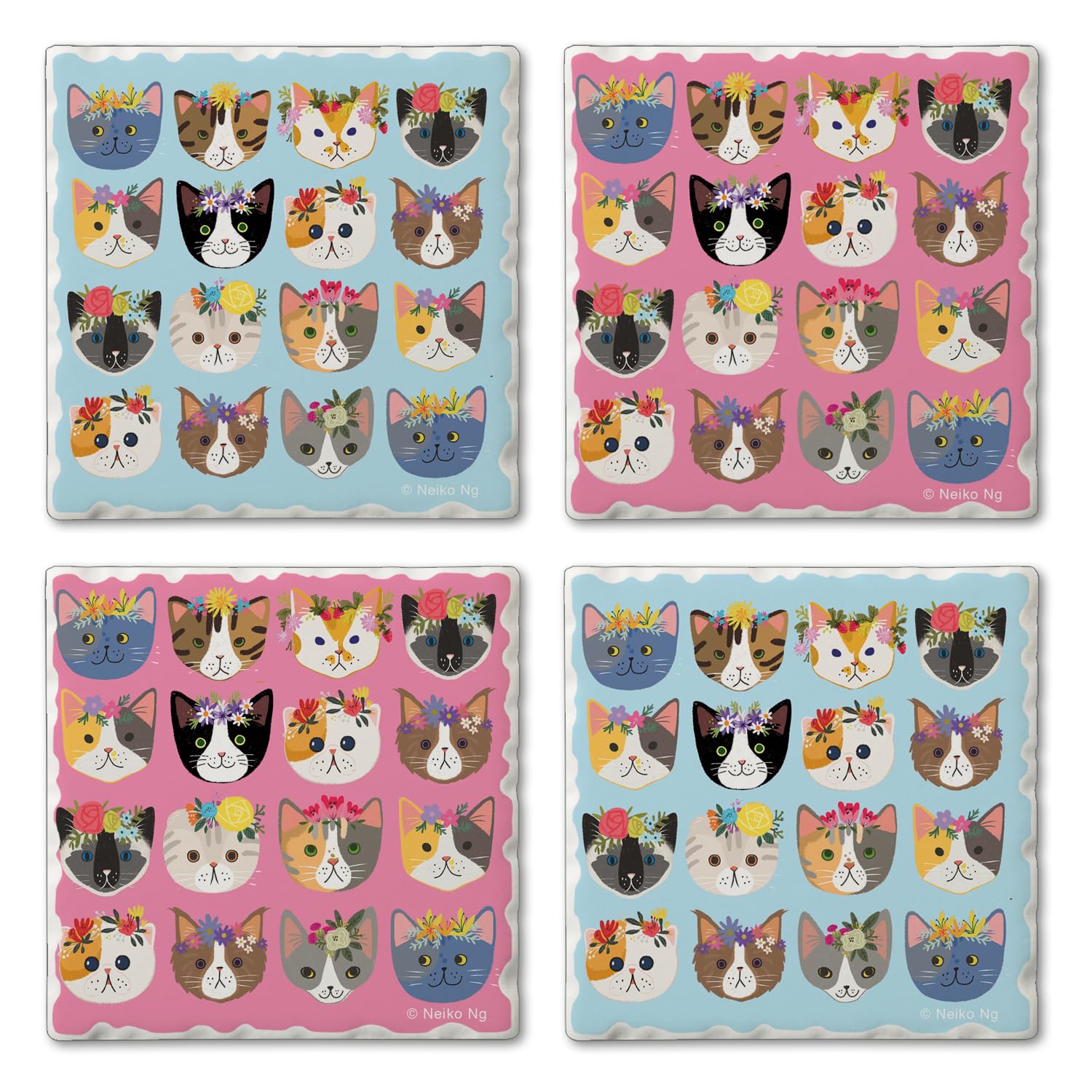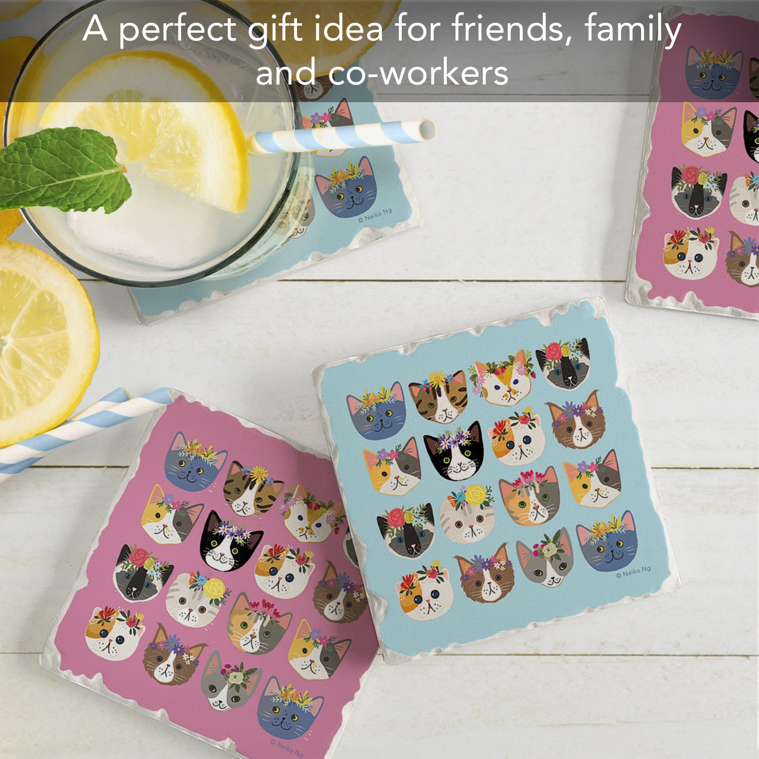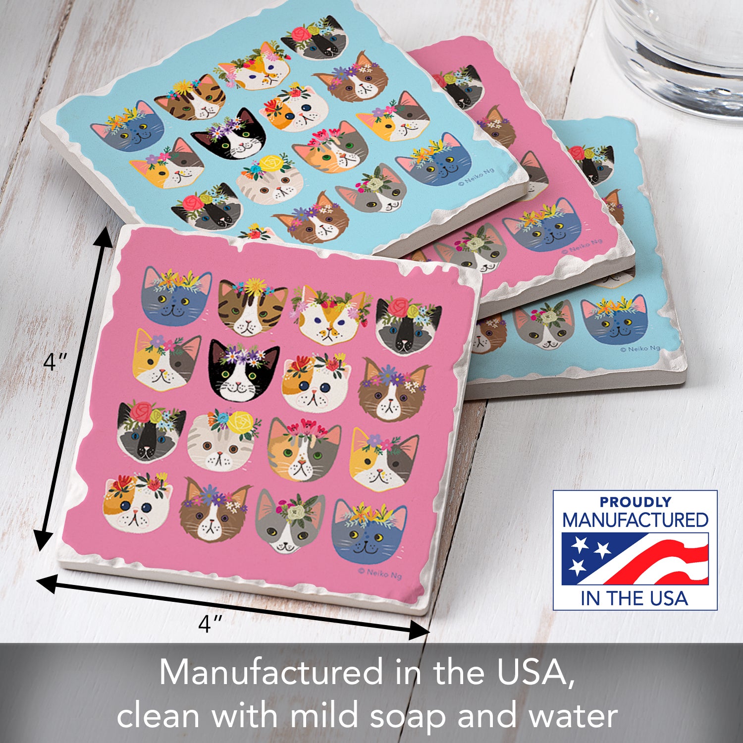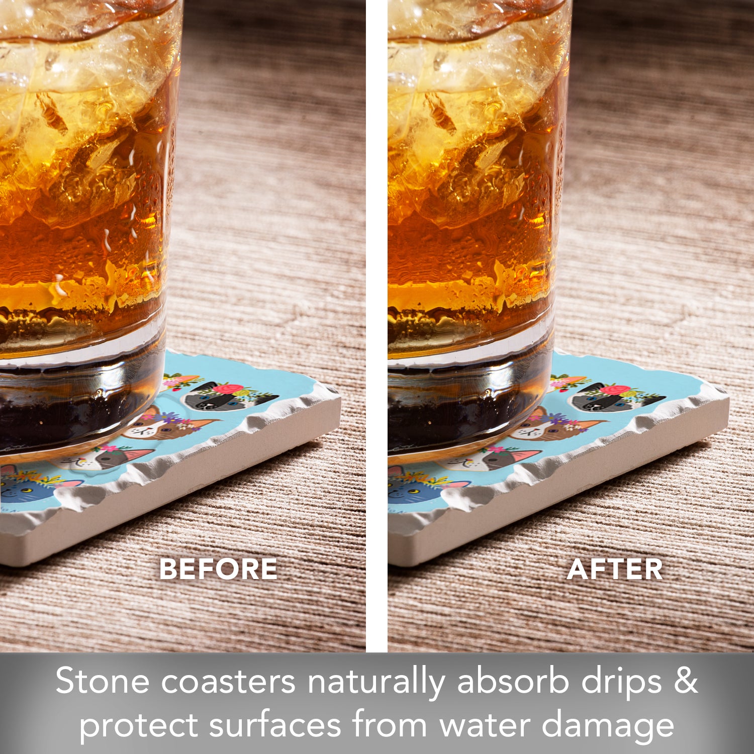 Thirstystone Cats with Crowns 4-Pack Tumbled Tile Stone Coasters 4" Square