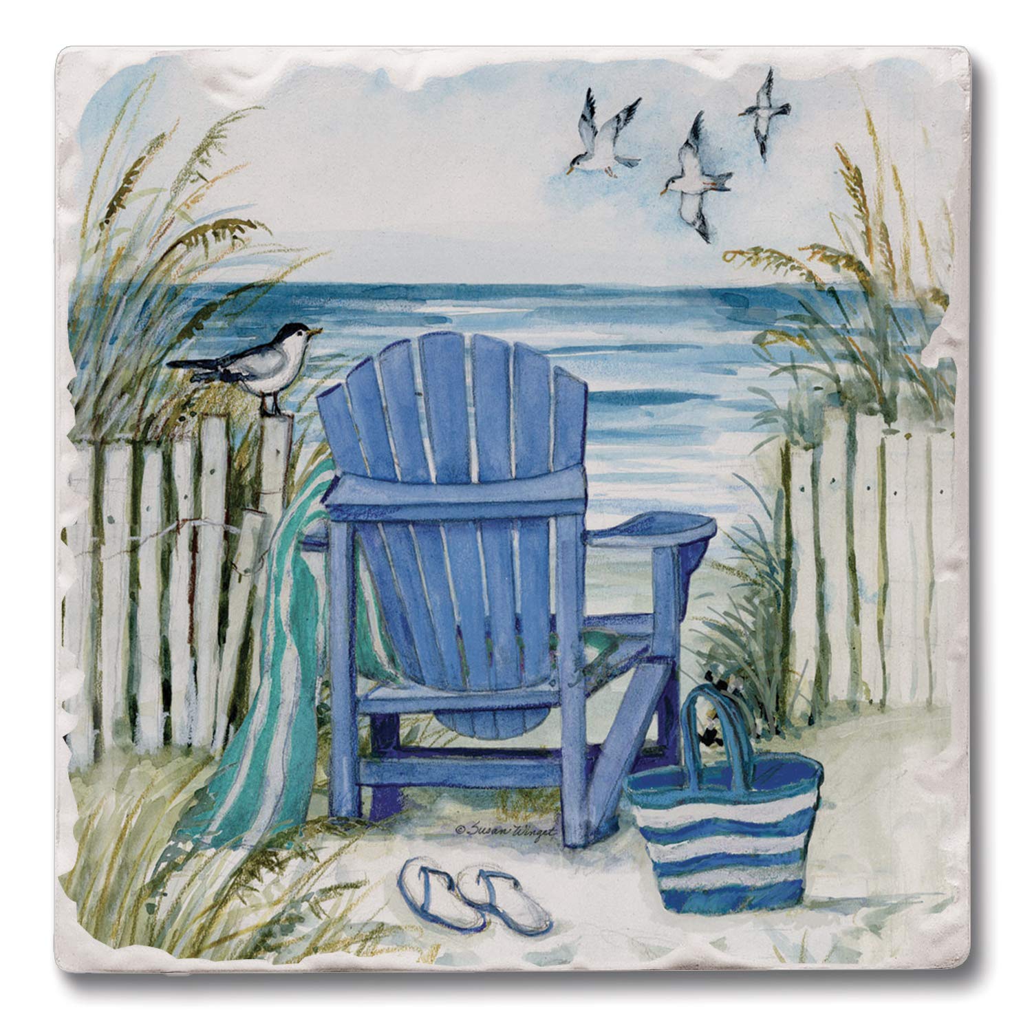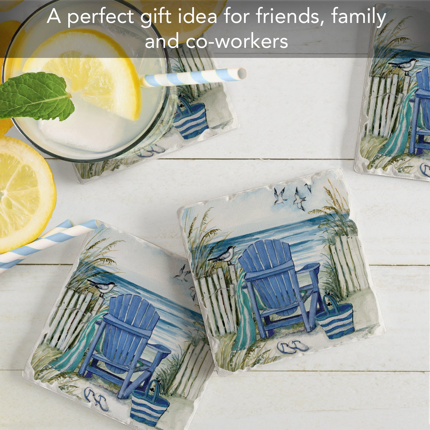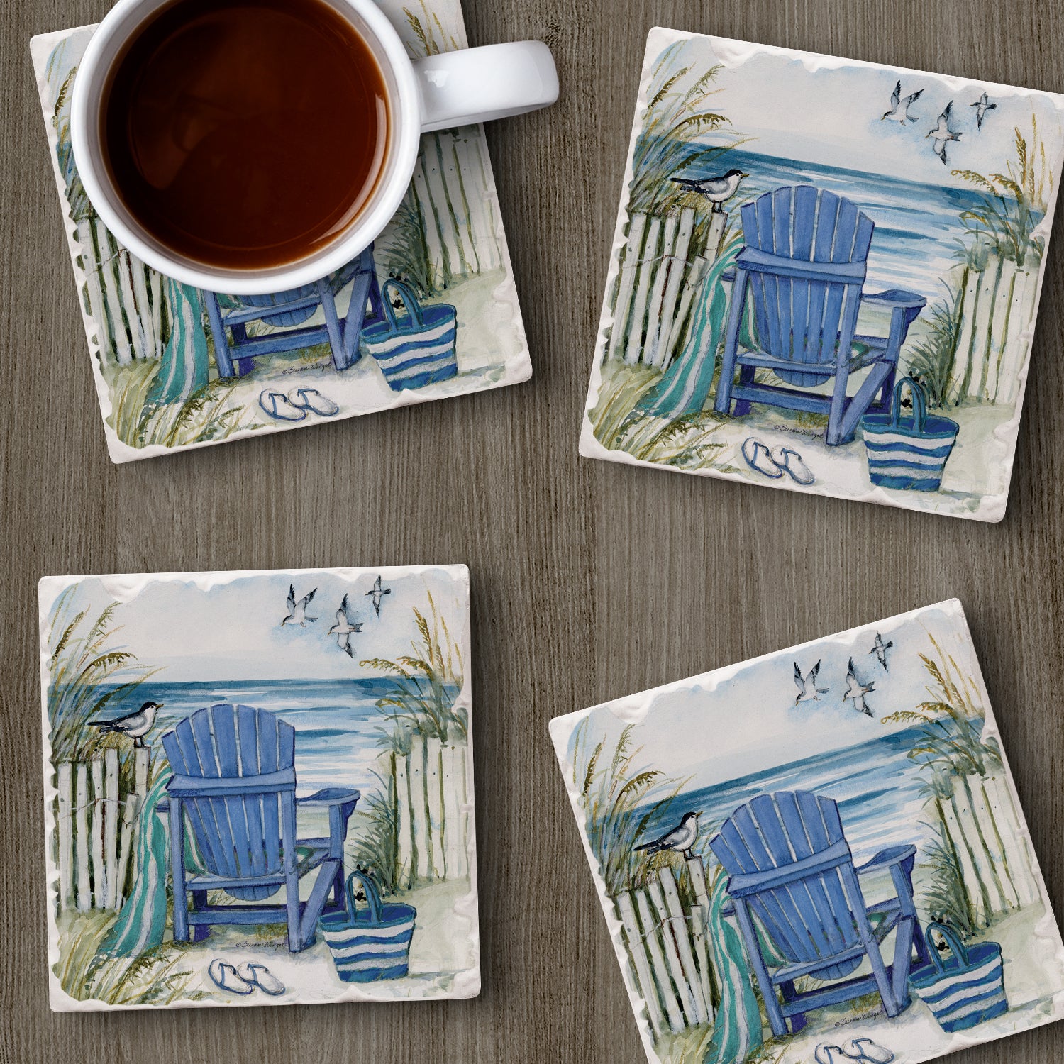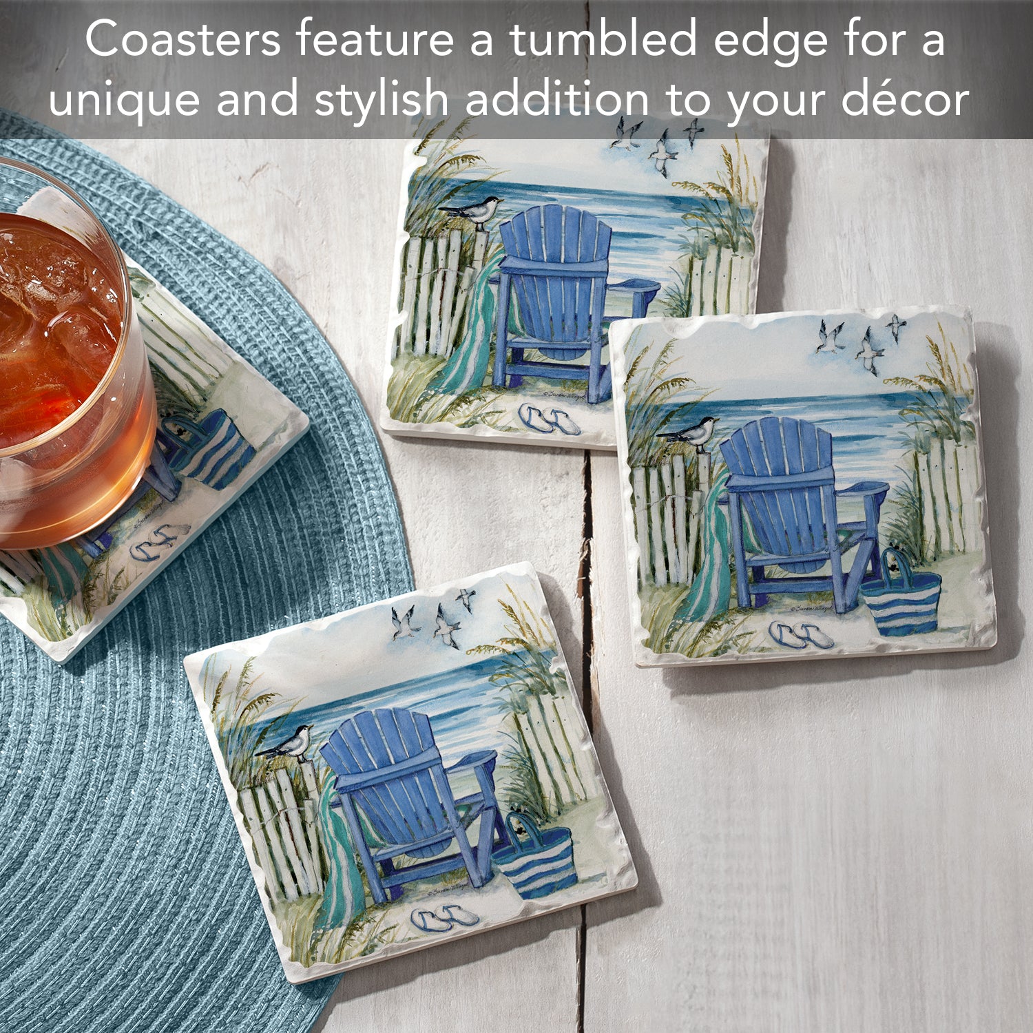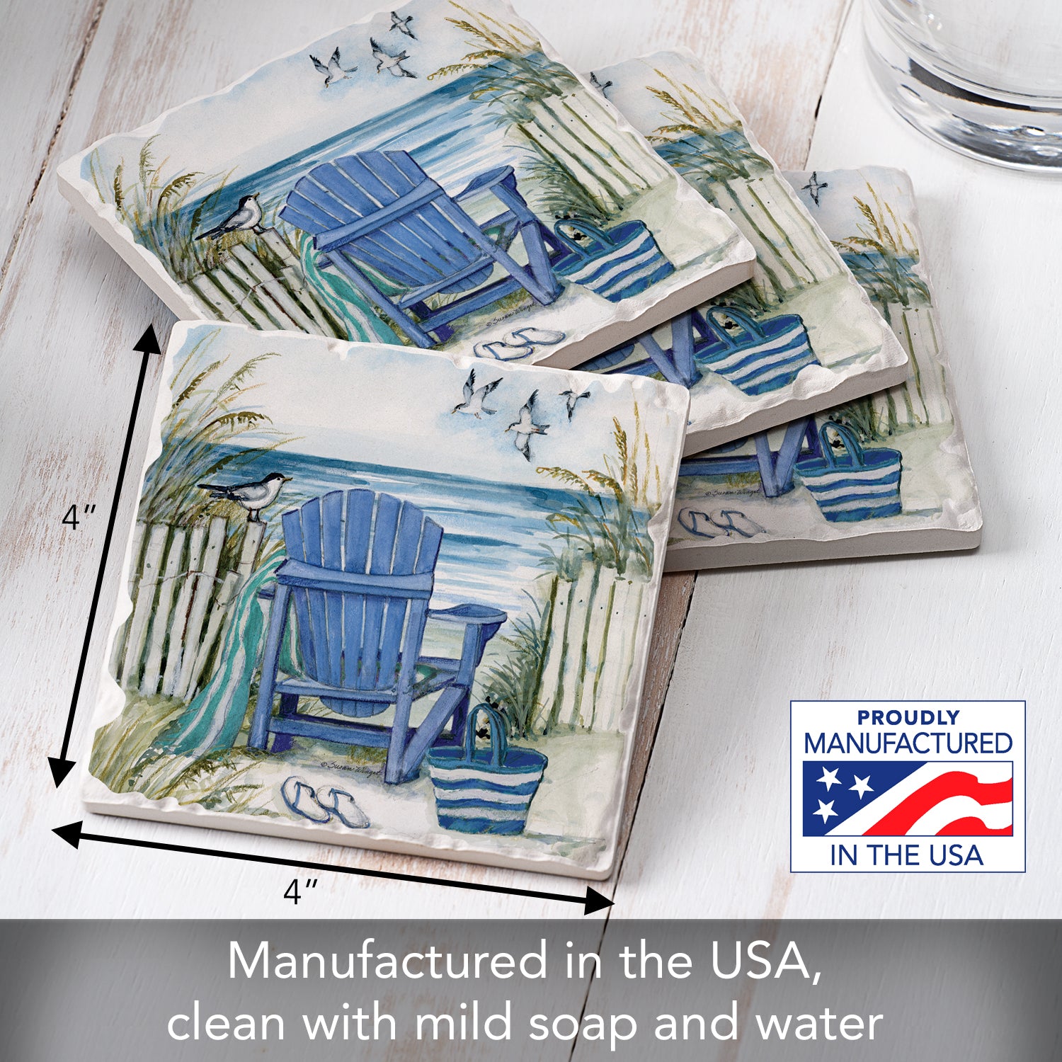 Thirstystone Chairs by The Sea 4-Pack Tumbled Tile Stone Coasters 4" Square Manufactured in the USA