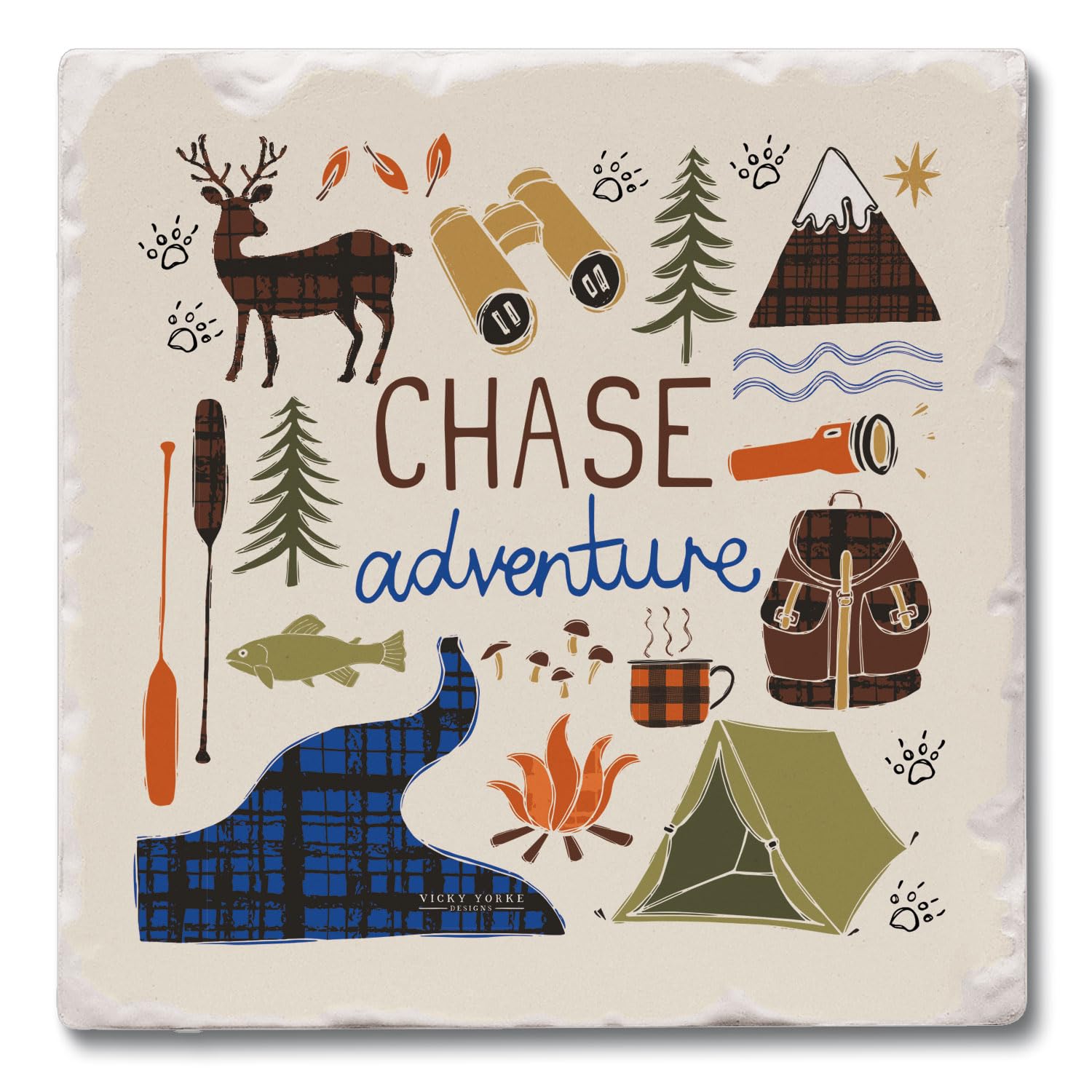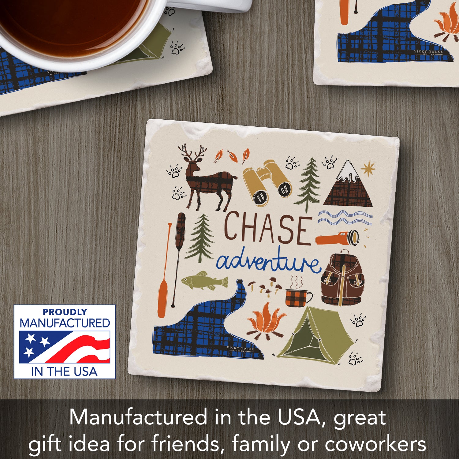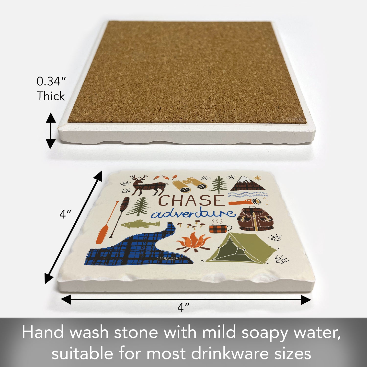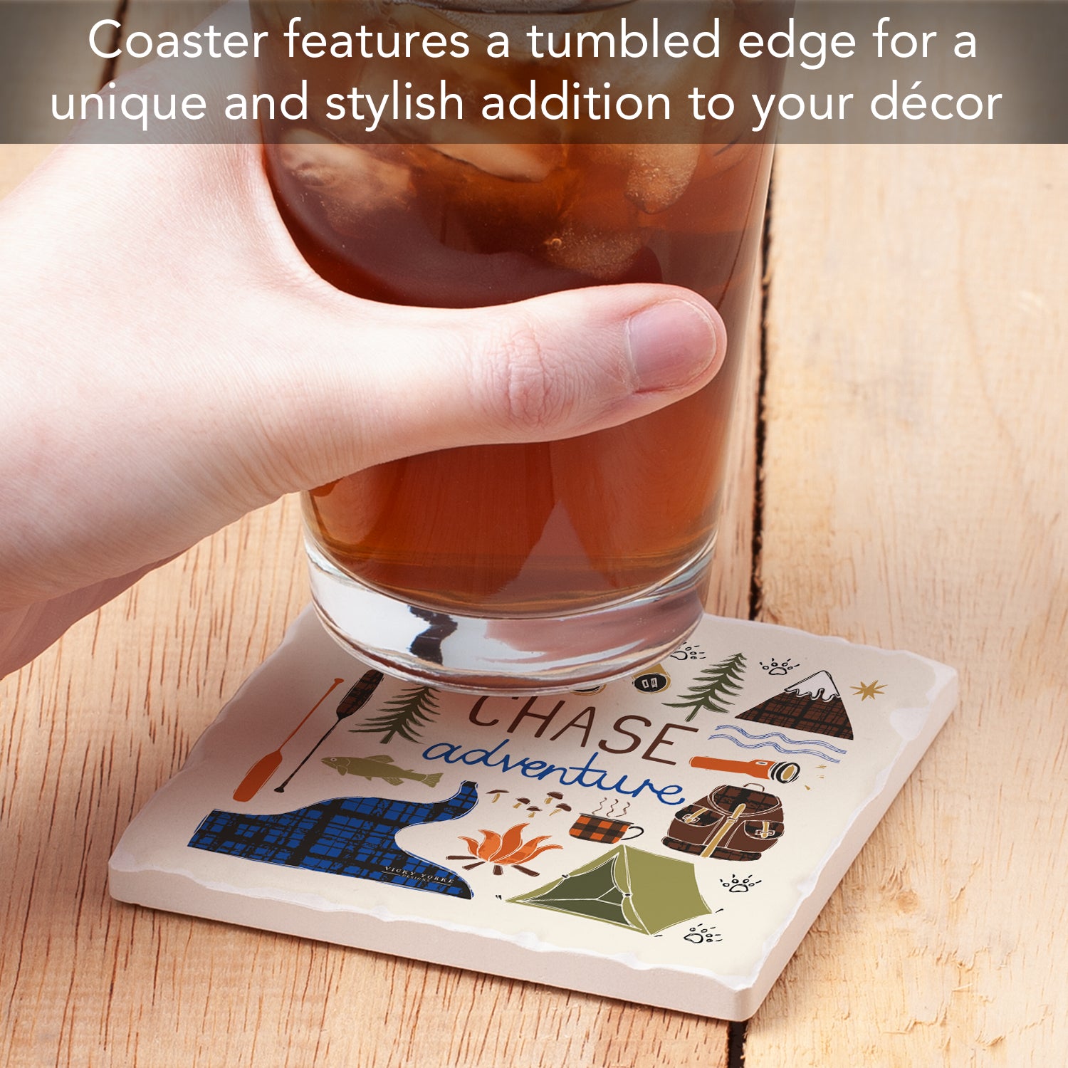 Thirstystone Chase Adventure Single Tumbled Tile Stone Coaster with Protective Cork Backing Manufactured in The USA 4" Square, Artistic, Easily Wipes Clean