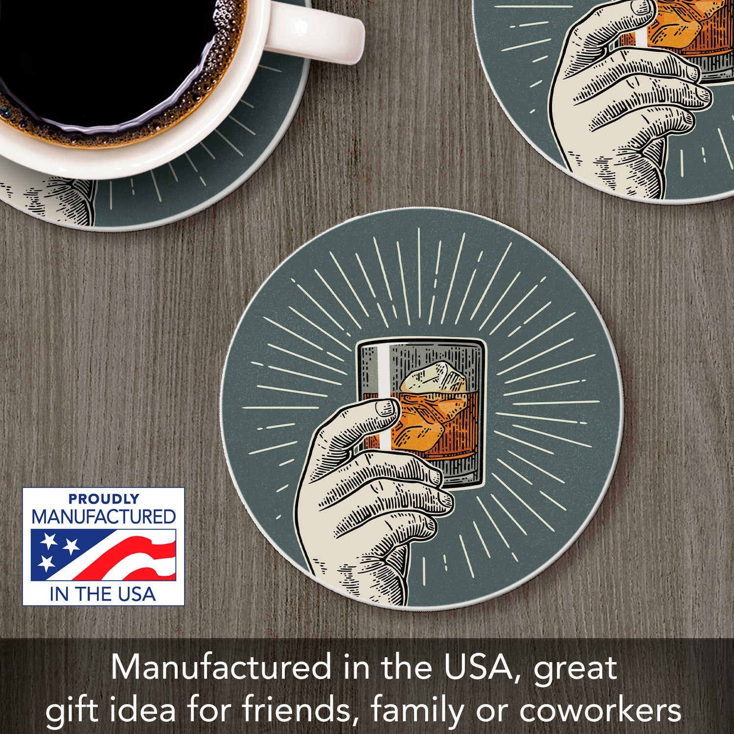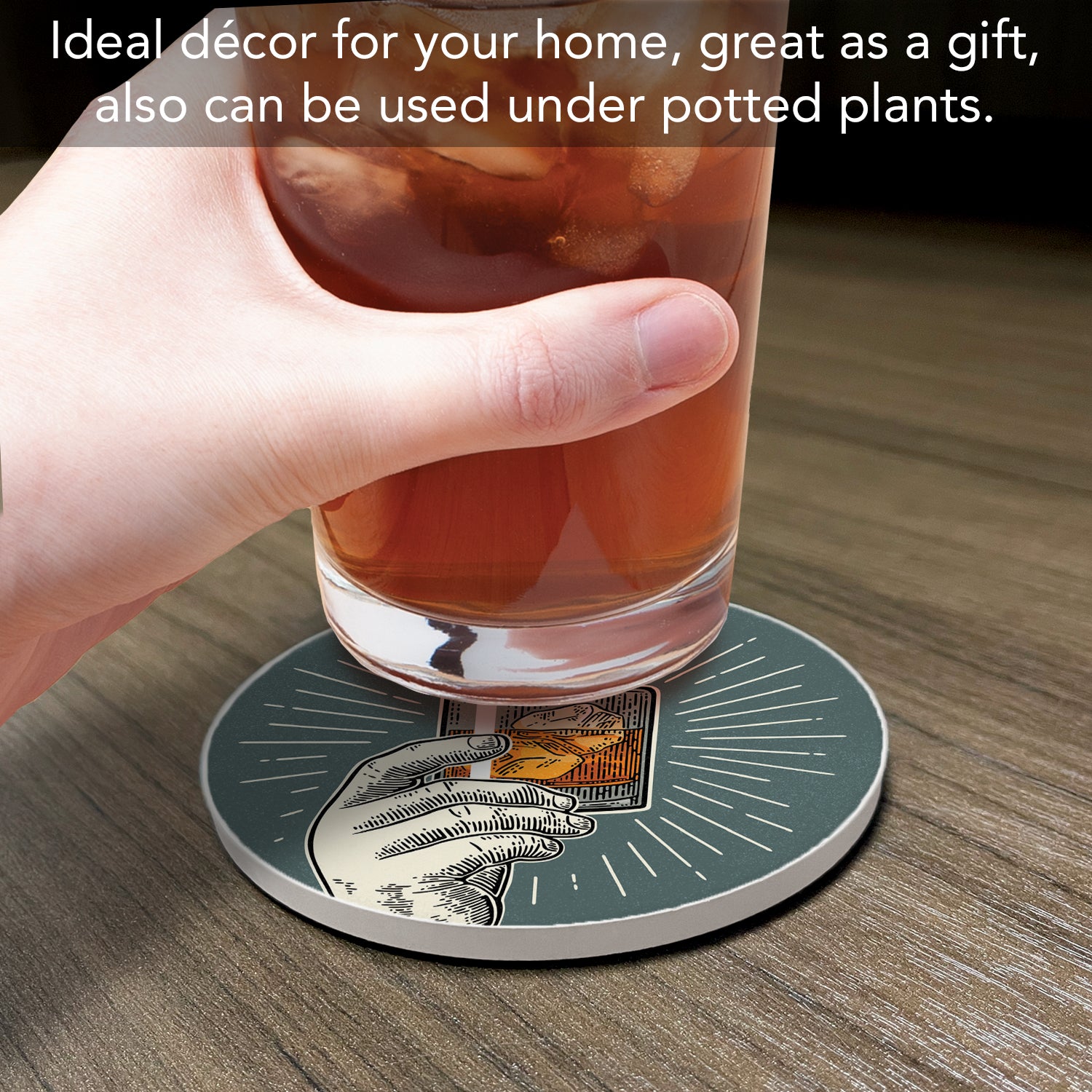 FUNCTIONAL ART- Beautiful artistic design allows the Coaster to remain displayed even when not in use. Each Coaster measures 4” x 4” x .31”. Sized to fit larger Mugs & Glasses.