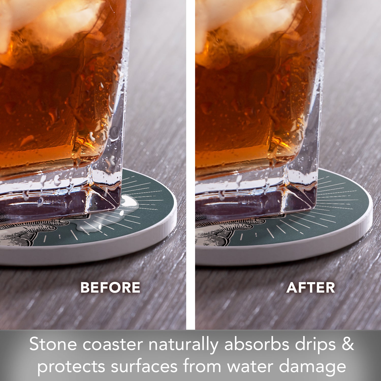 ABSORBENT STONE-Coaster is constructed from absorbent stone to absorb excess condensation from beverages. This is a 1 Coaster Pack to allow you to choose from our other coordinating Coaster Designs and complete your own personal set.
