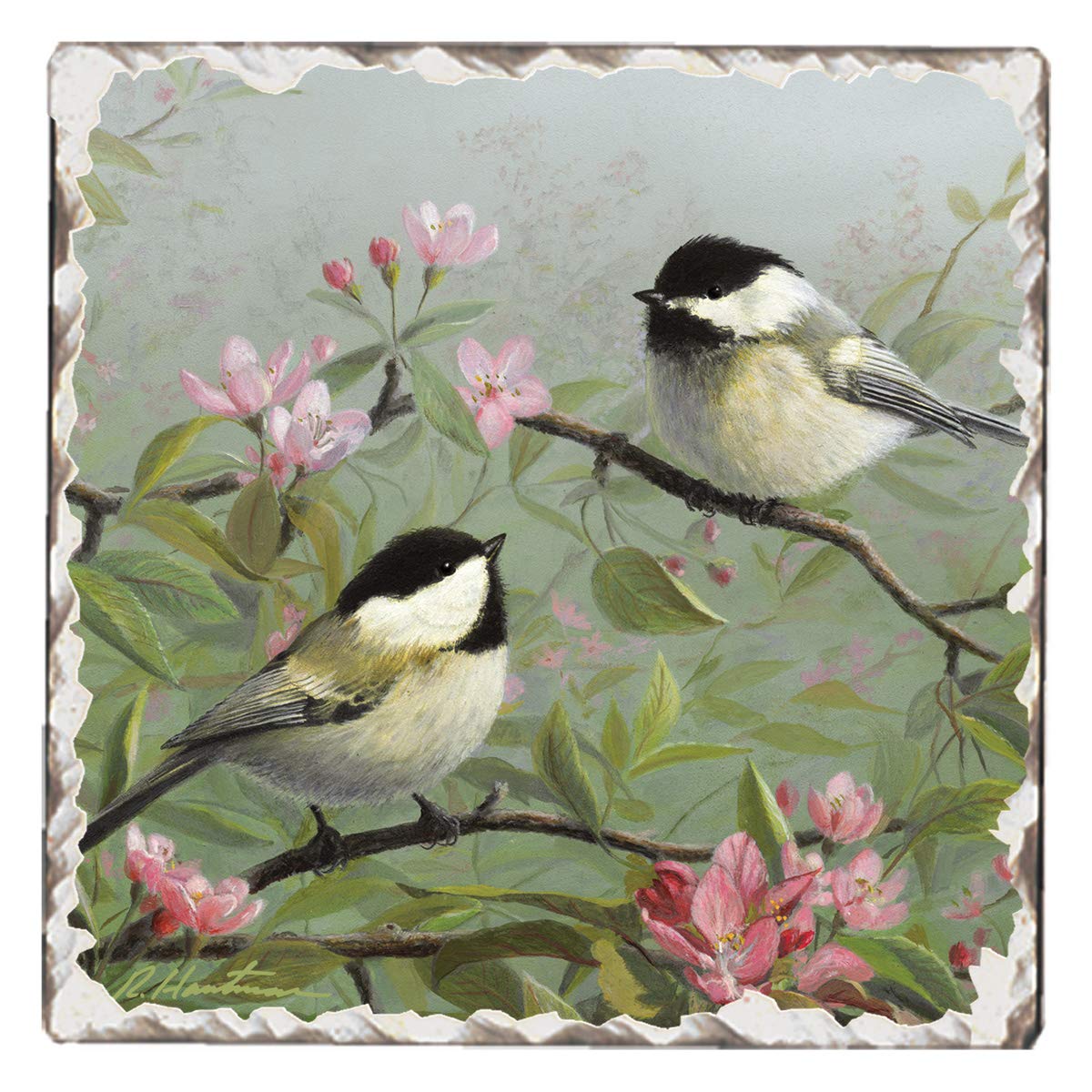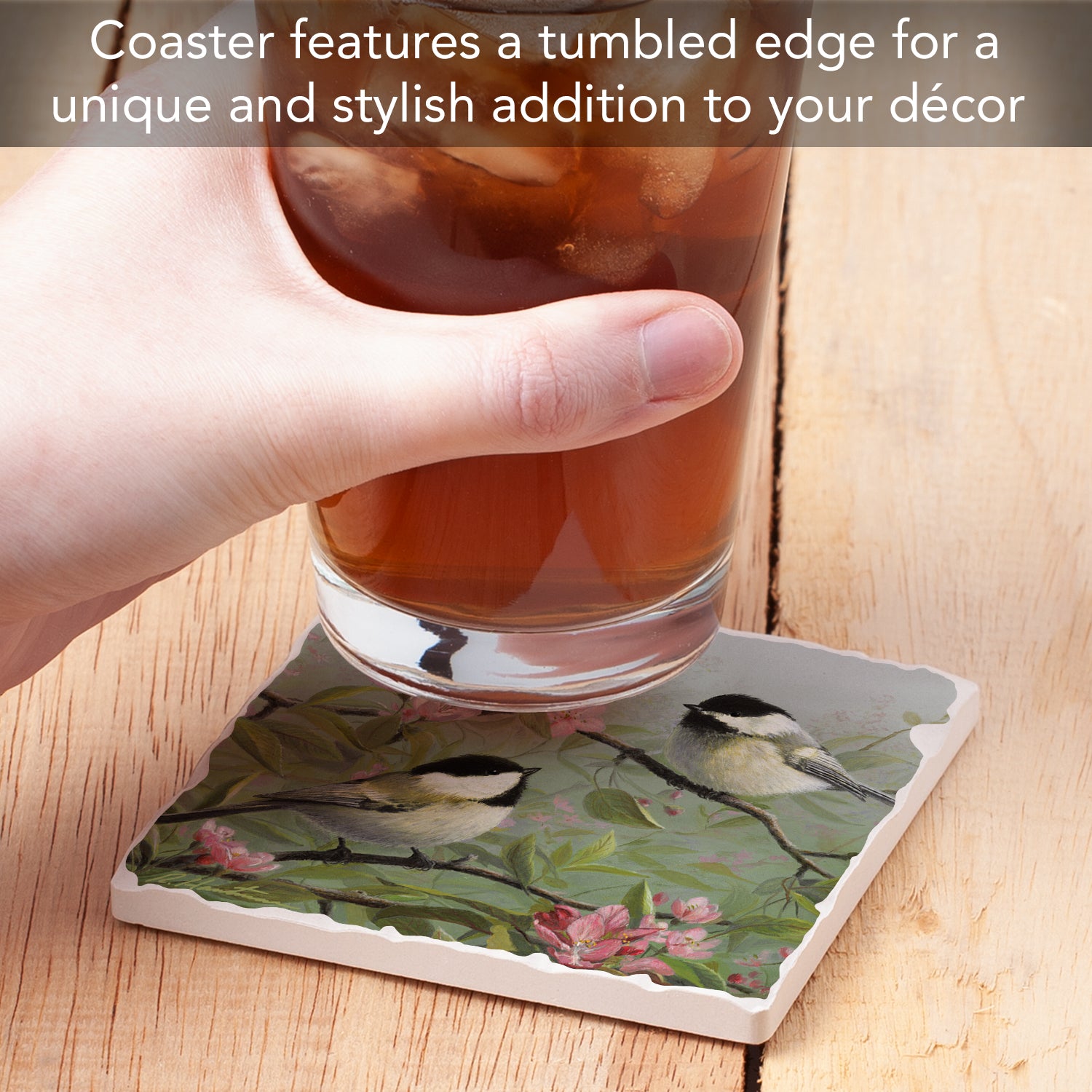 Thirstystone Chickadees on Branch Single Tumbled Tile Stone Coaster with Protective Cork Backing Manufactured in The USA 4" Square, Artistic, Easily Wipes Clean