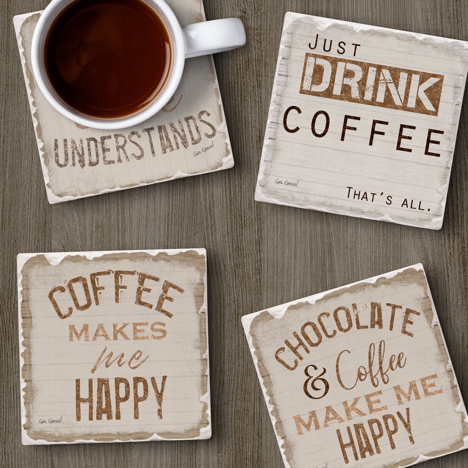 Thirstystone Chocolate & Coffee 4-Pack Tumbled Tile Stone Coasters 4" Square