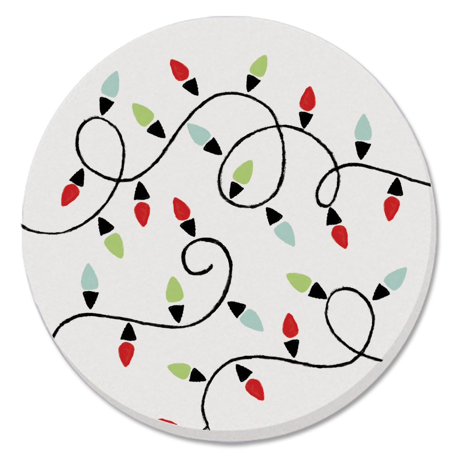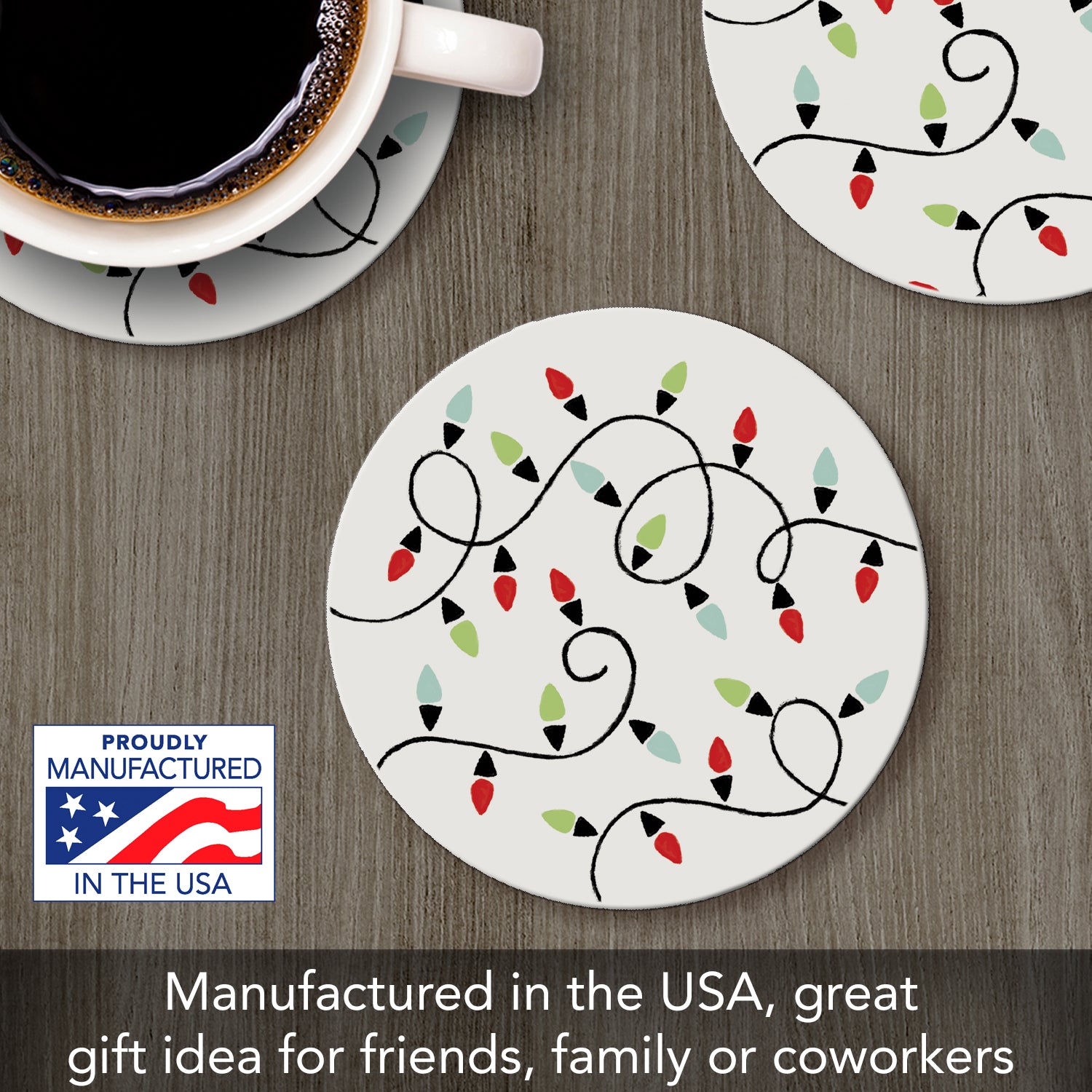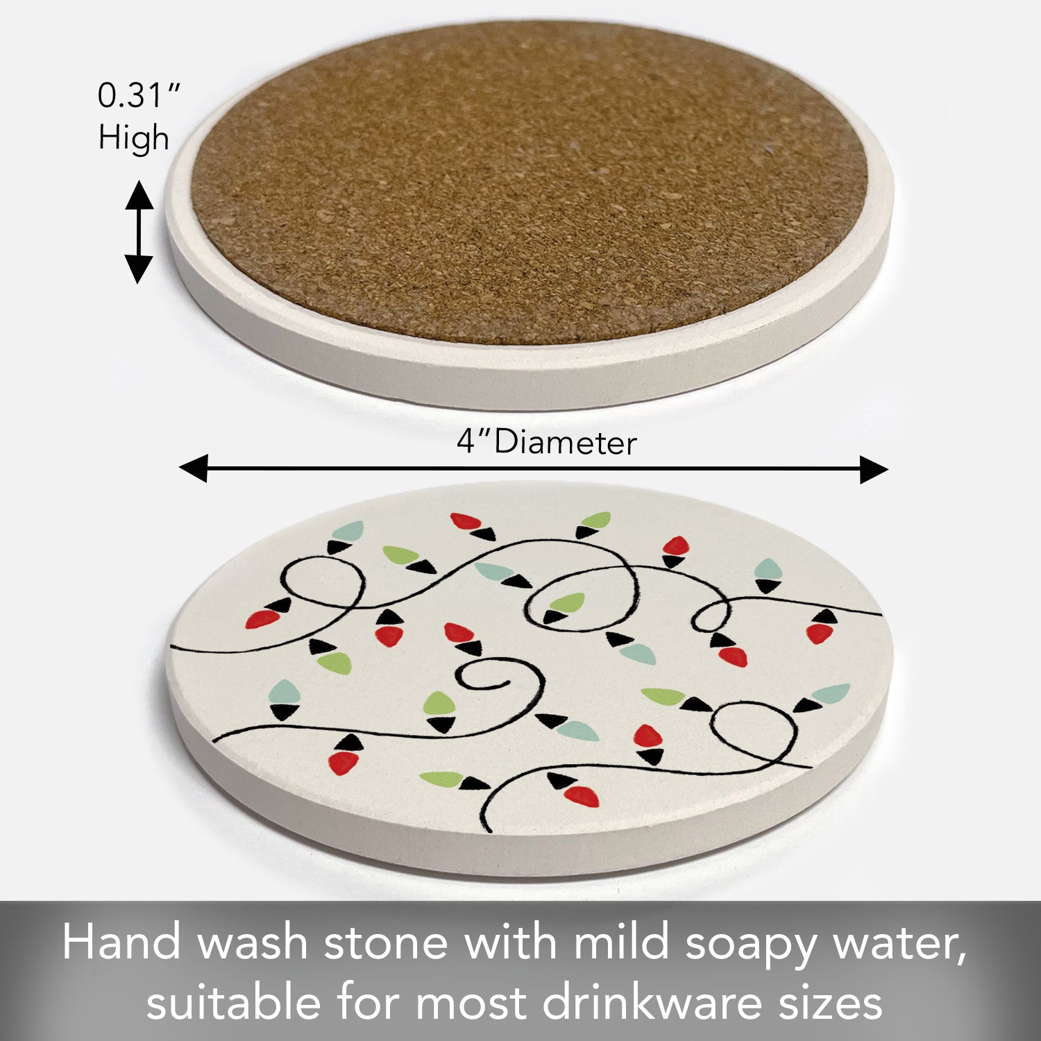 Thirstystone Christmas Lights Single Round Absorbent Stone Coaster with Protective Cork Backing Manufactured in The USA 4" Diameter